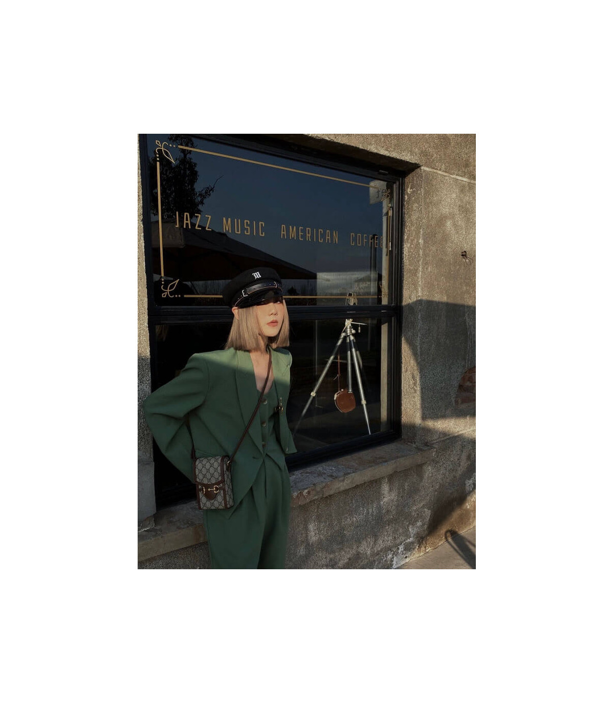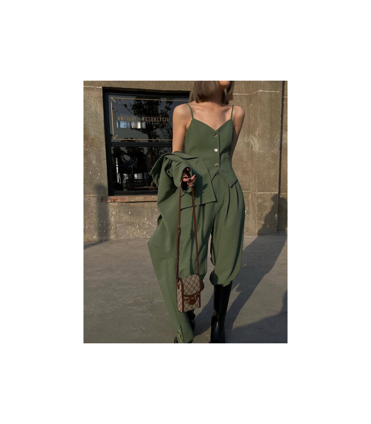 – Gold-toned hardware
