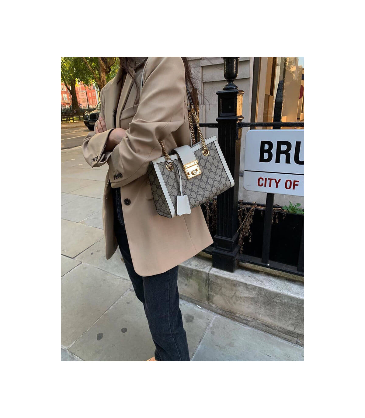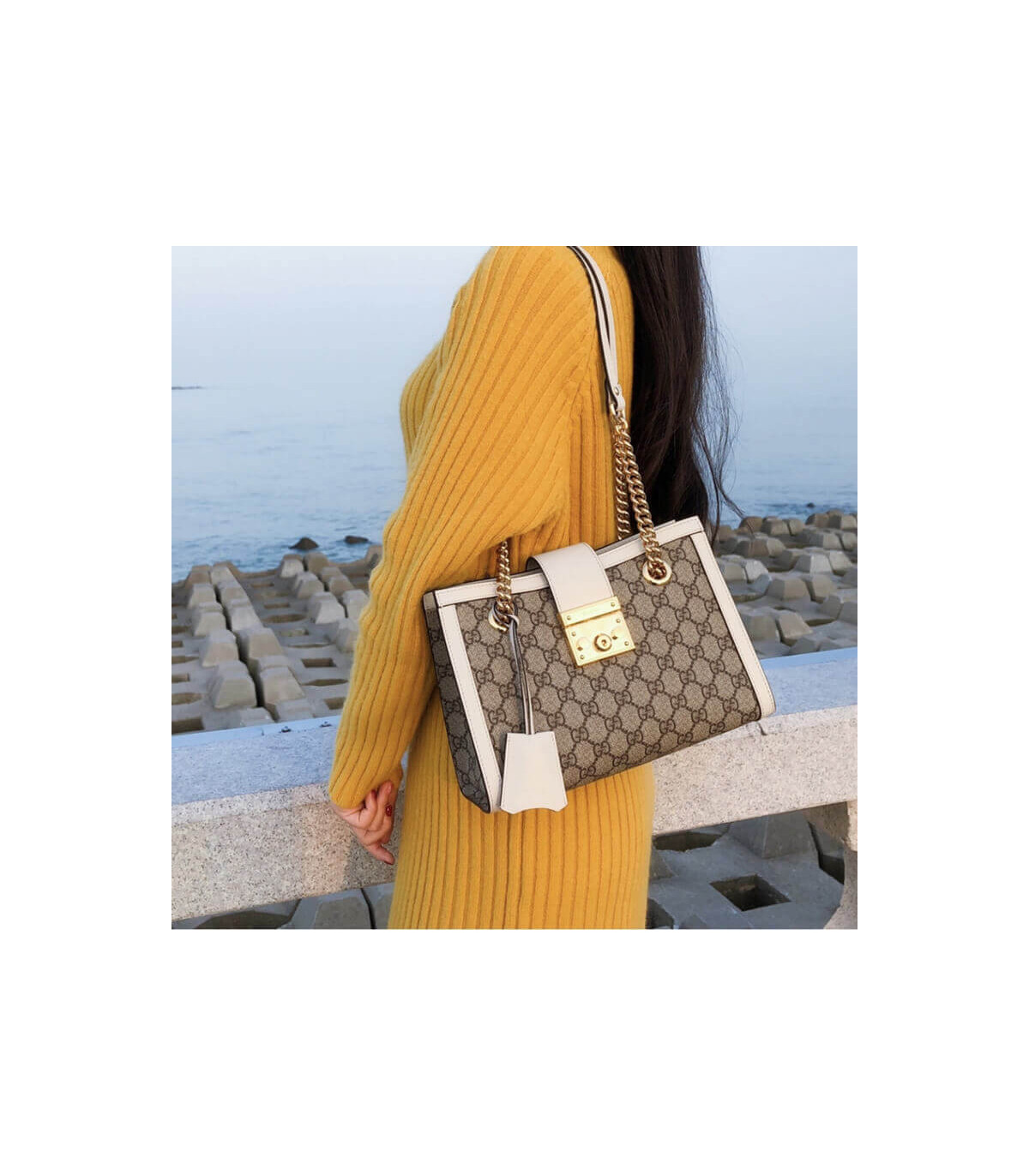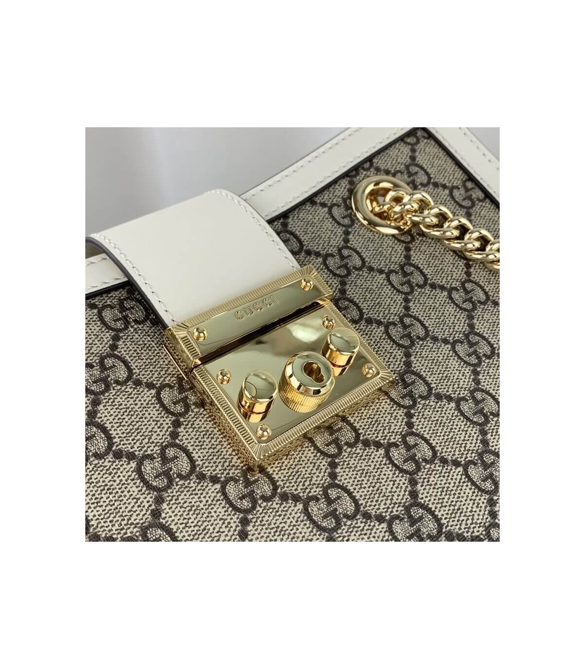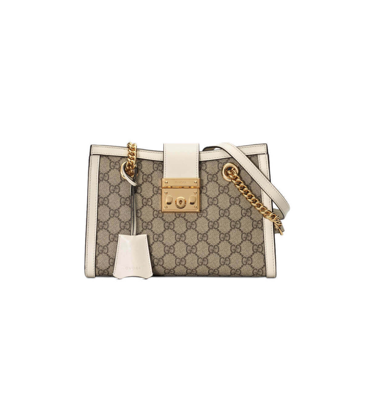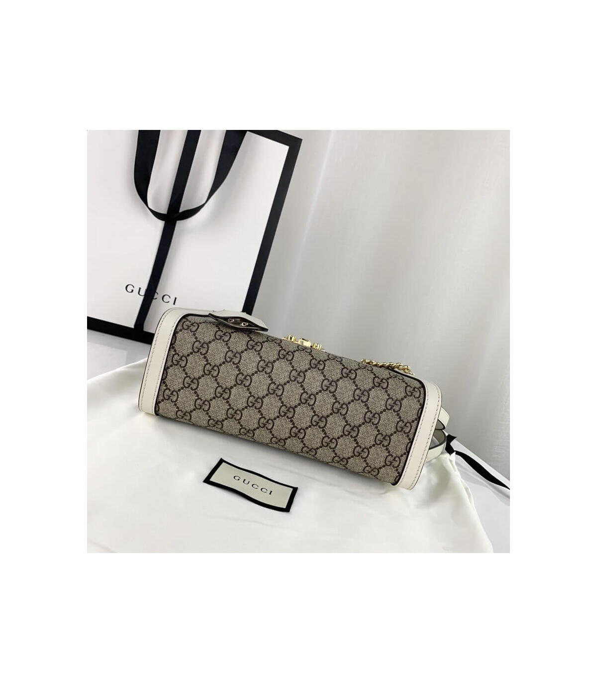 A structured shoulder bag in GG Supreme canvas with a strap that secures with a key lock closure pulled straight from the archives. The key is placed in a detachable leather key case.