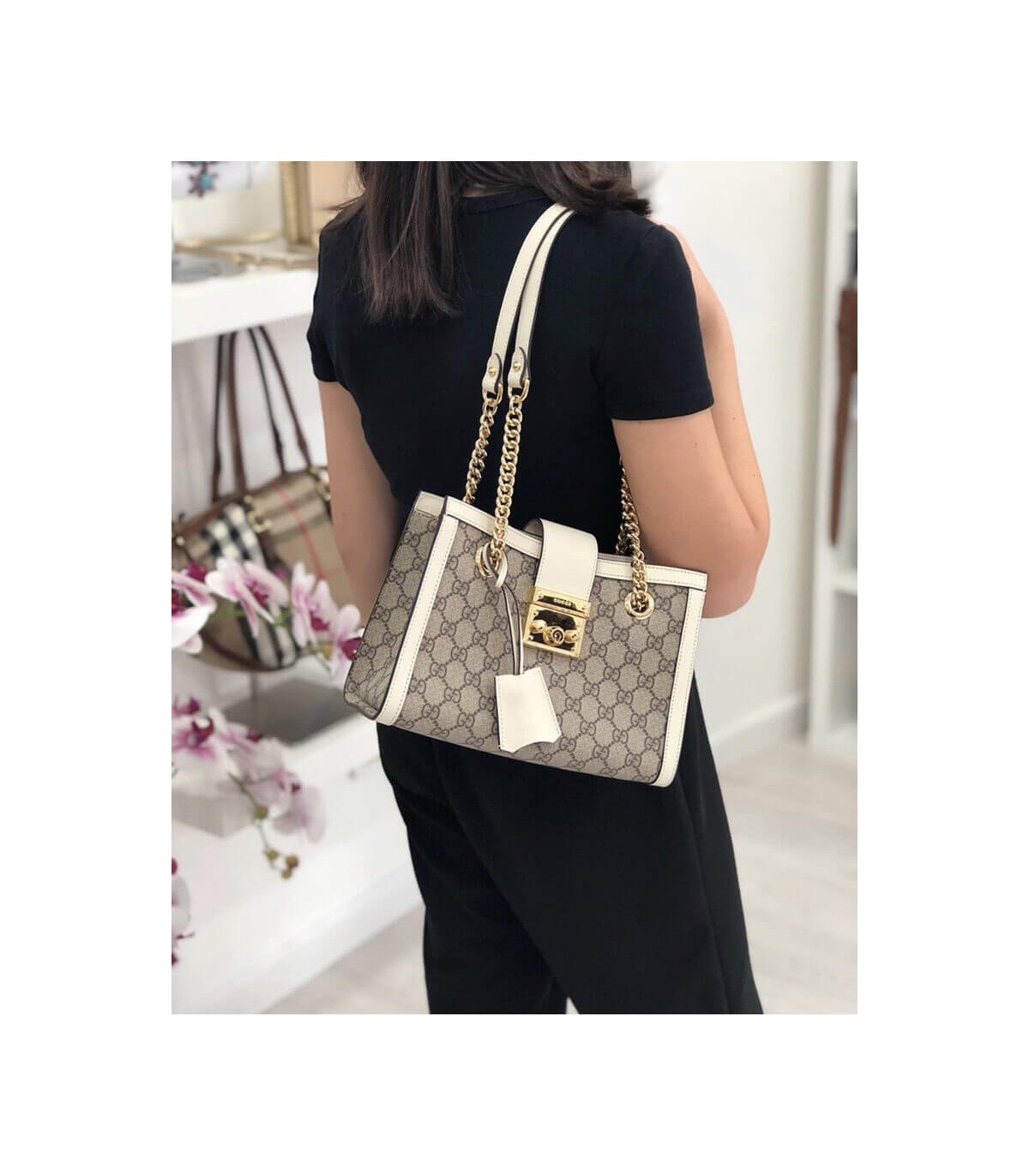 – Beige/ebony GG Supreme canvas, a material with low environmental impact, with white leather detail