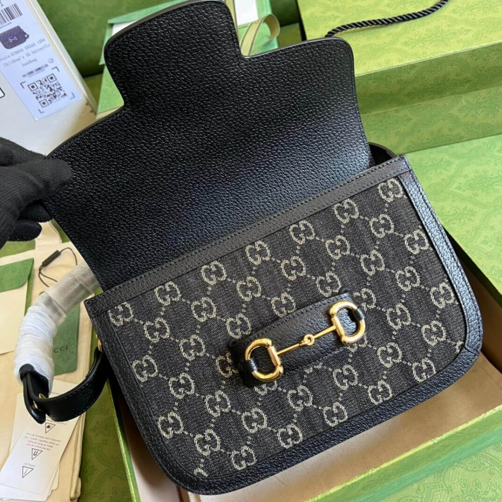 – Black and ivory GG denim jacquard