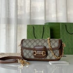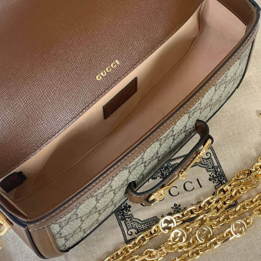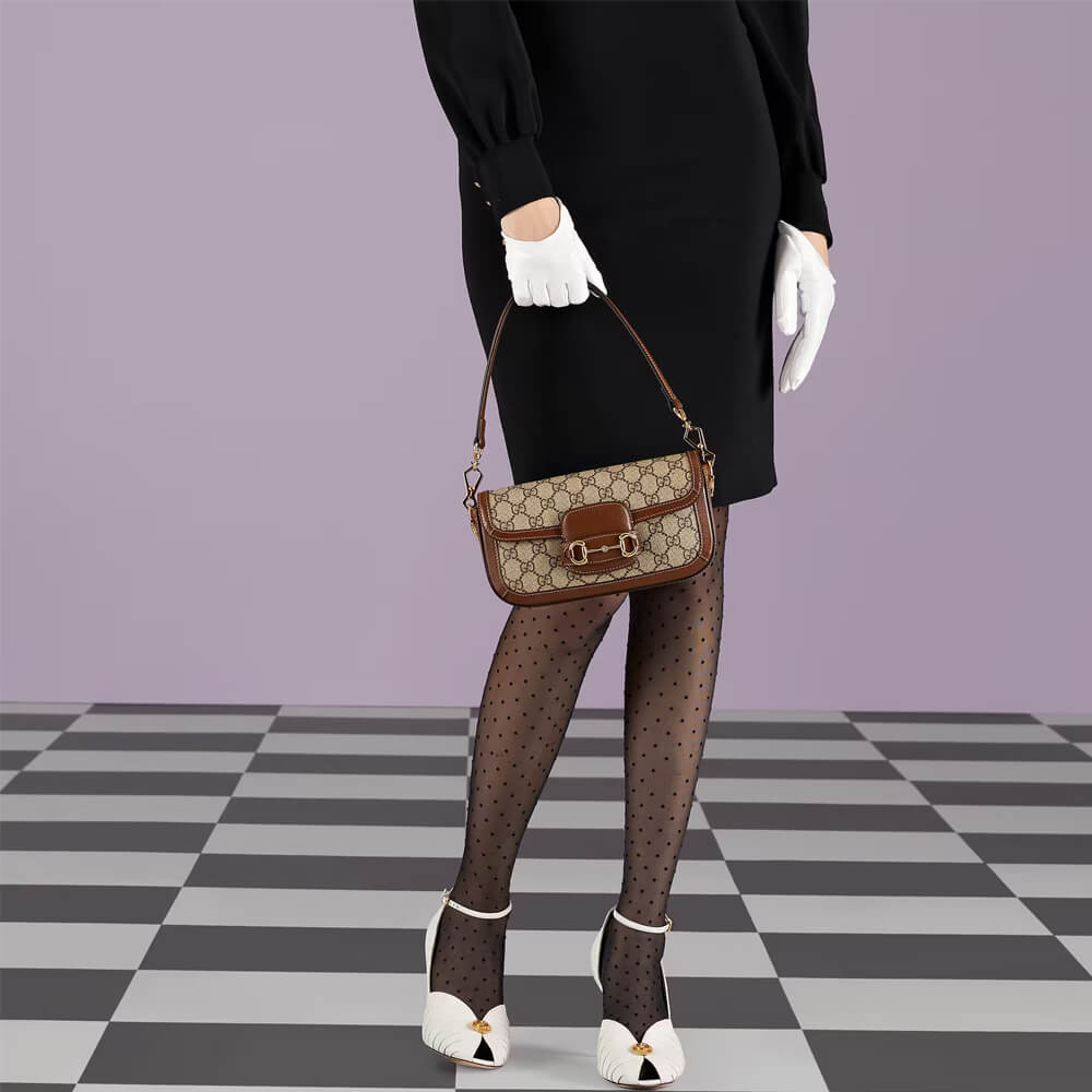 Inspired by archival designs, the Gucci Horsebit 1955 collection unifies the original details first introduced over six decades ago with a modern spirit, highlighting the Horsebit. Part of Gucci’s genetic code, the double ring and bar design has been established as one of the most distinctive elements among the House symbols borrowed from the equestrian world.