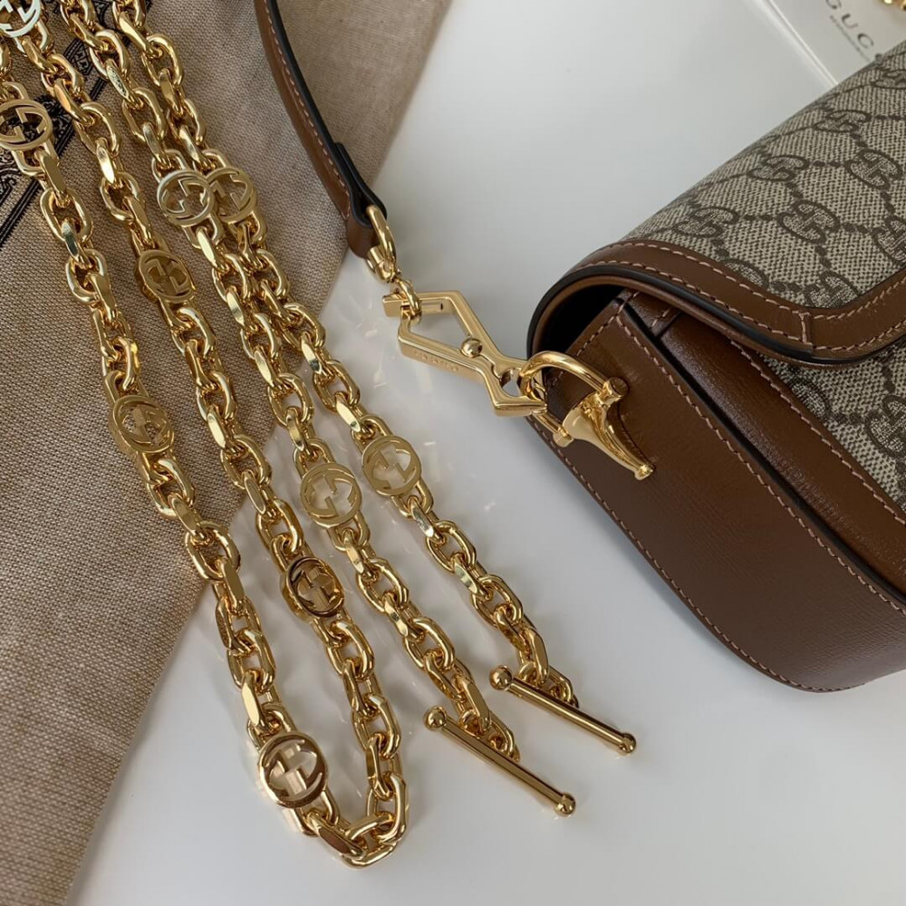– Detachable leather shoulder strap with 20cm drop and detachable chain shoulder strap with Interlocking G with 52cm drop