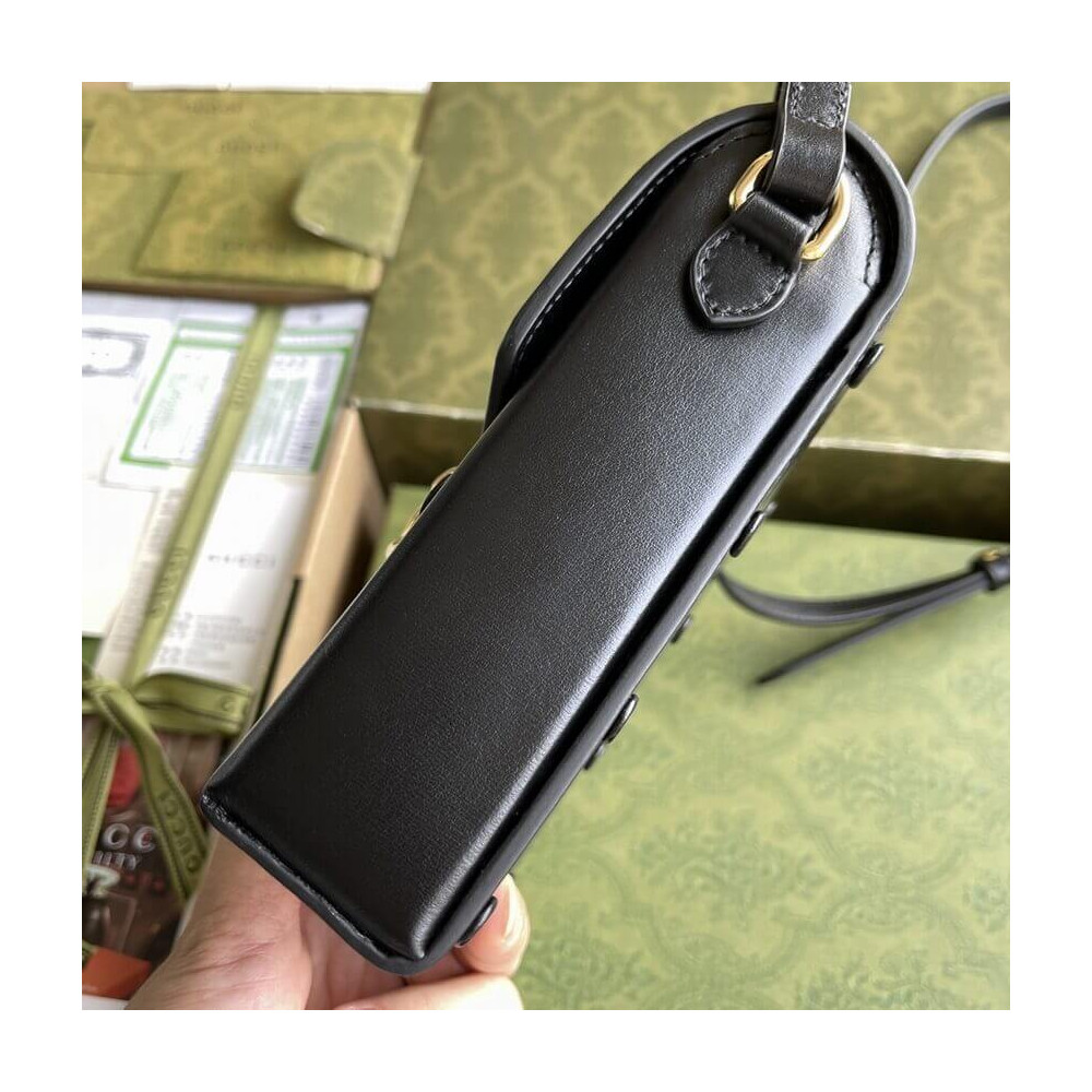 Presented in a petite rectangular shape, the Gucci Horsebit 1955 mini bag is introduced for Pre-Fall 2019 in brown leather. Inspired by archival designs, the accessory highlights the double ring and bar design that has been established as one of the most distinctive elements among the House symbols borrowed from the equestrian world.