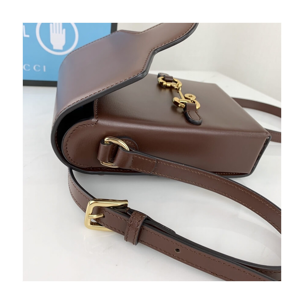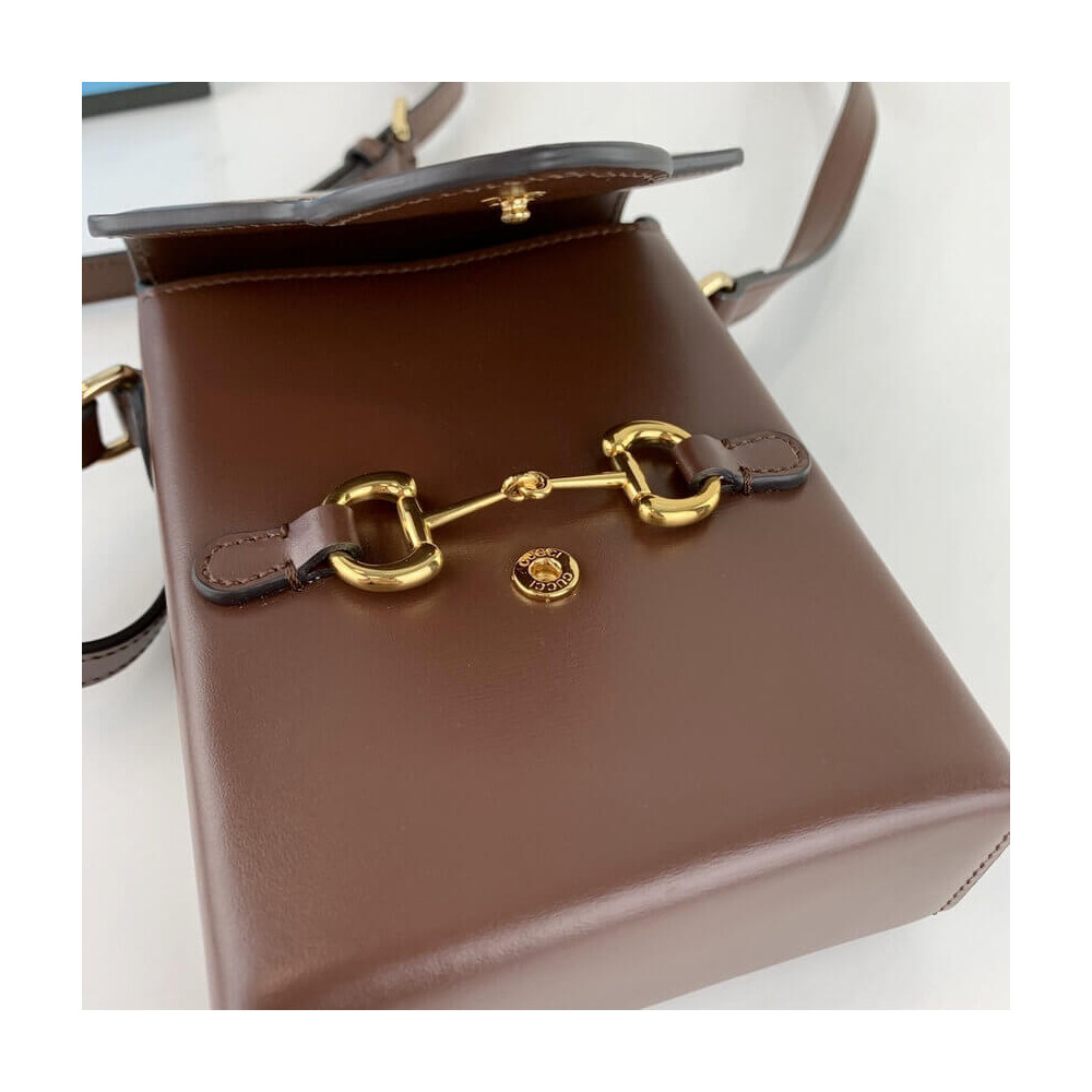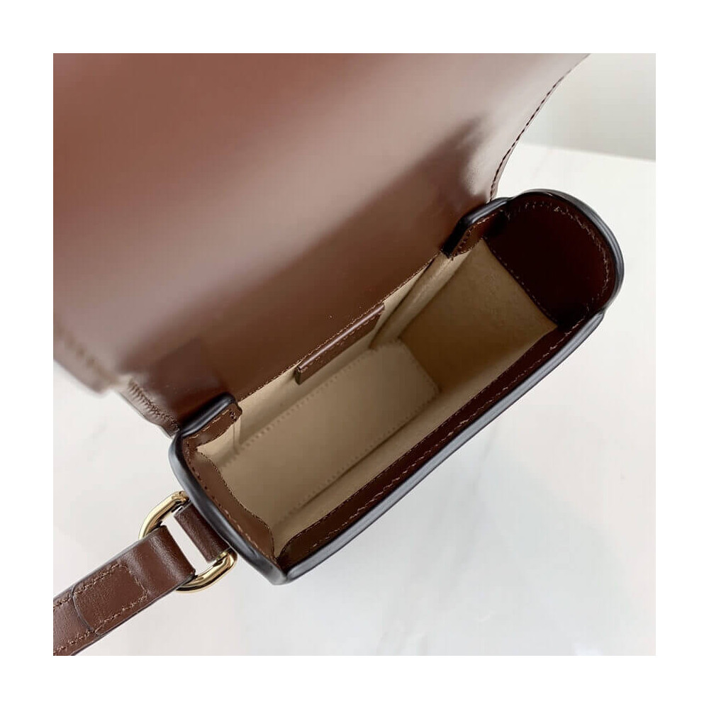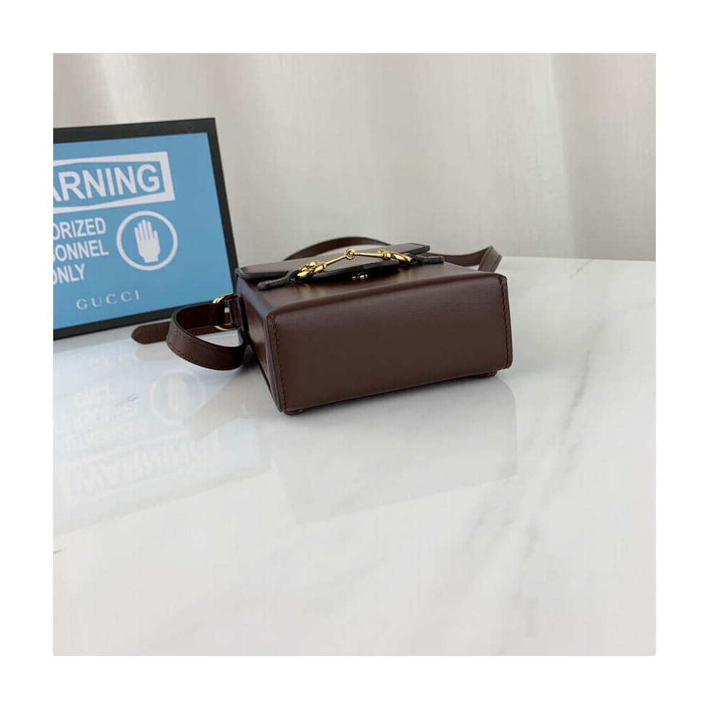 Presented in a petite rectangular shape, the Gucci Horsebit 1955 mini bag is introduced for Pre-Fall 2019 in brown leather. Inspired by archival designs, the accessory highlights the double ring and bar design that has been established as one of the most distinctive elements among the House symbols borrowed from the equestrian world.