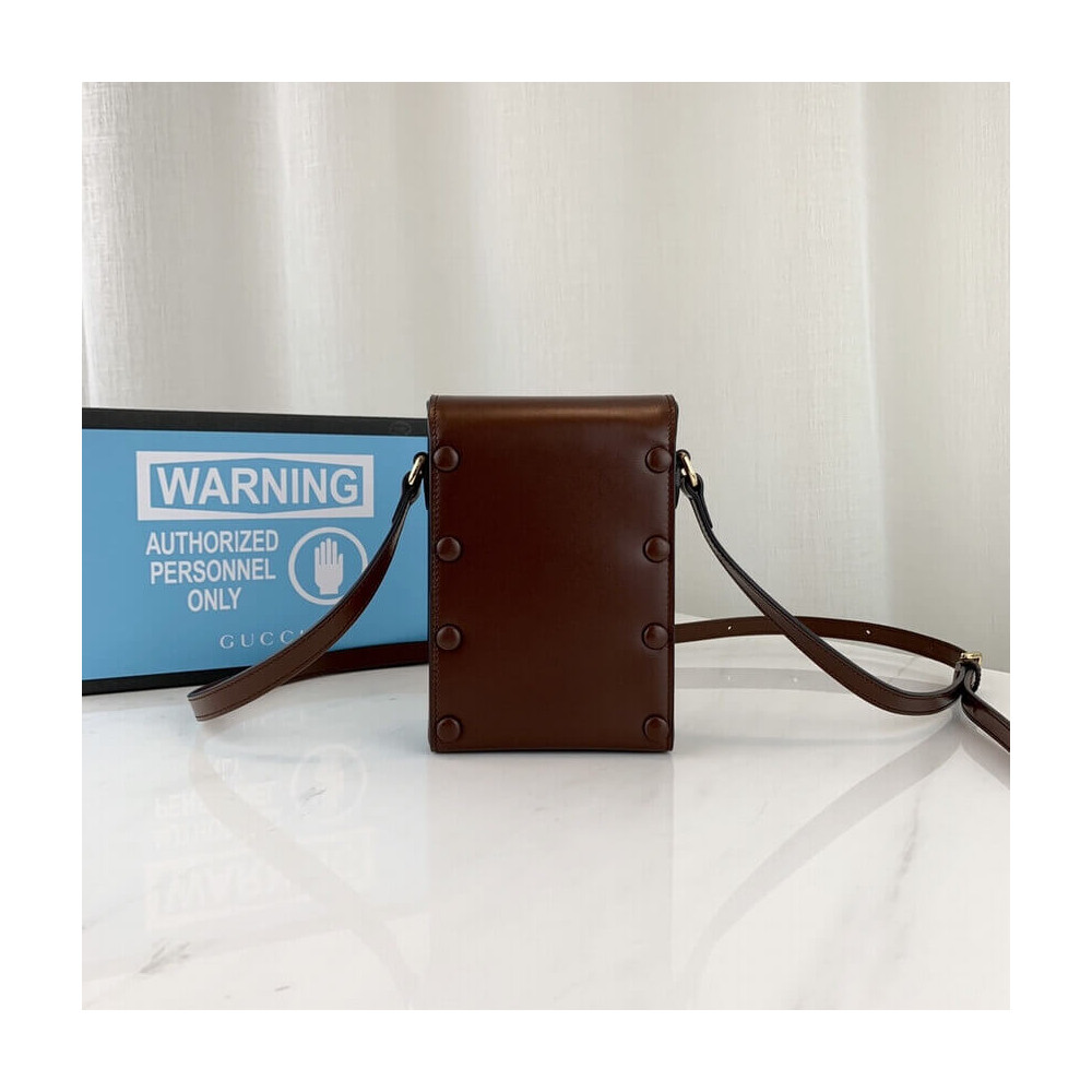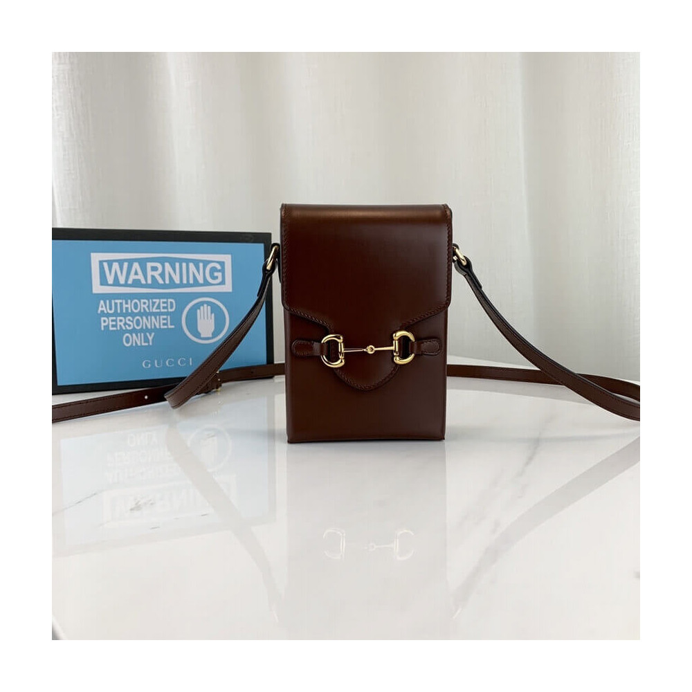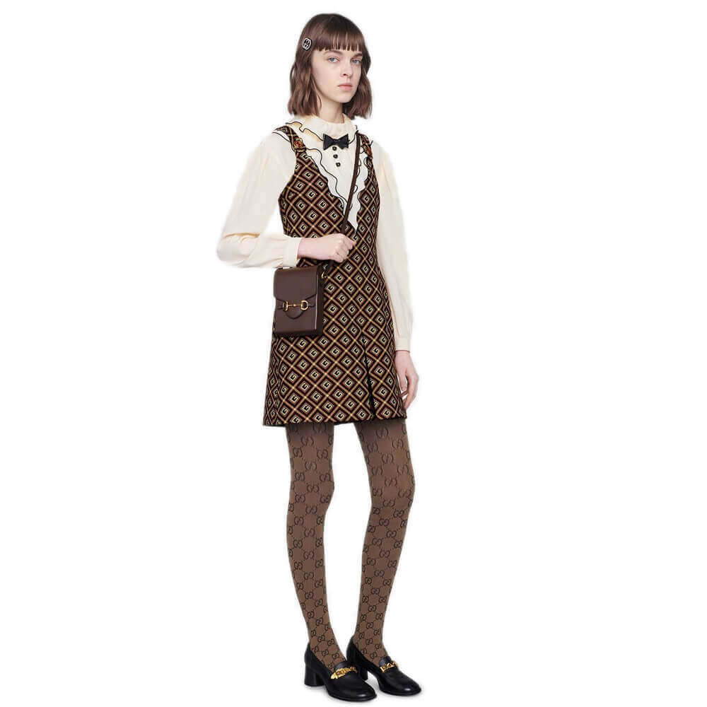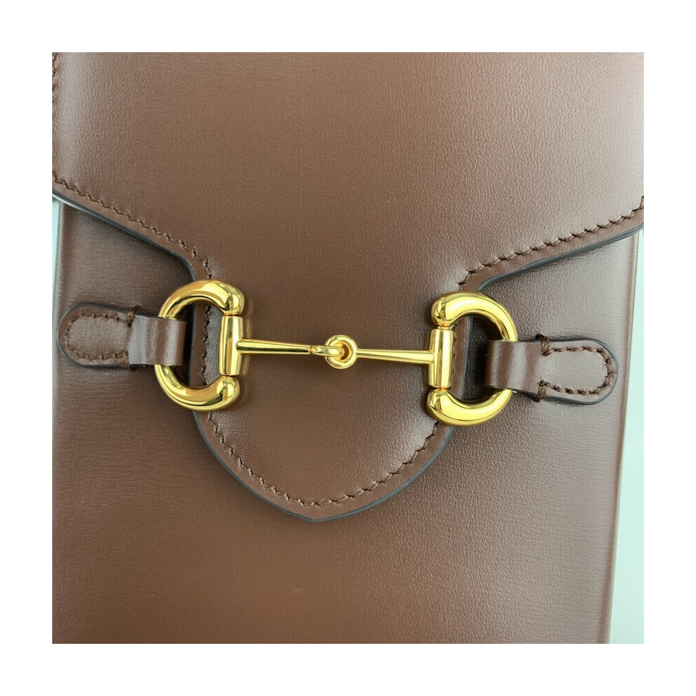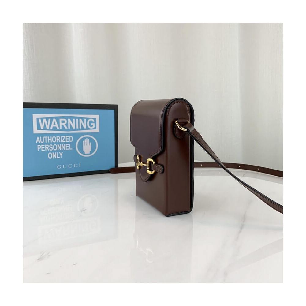 Presented in a petite rectangular shape, the Gucci Horsebit 1955 mini bag is introduced for Pre-Fall 2019 in brown leather. Inspired by archival designs, the accessory highlights the double ring and bar design that has been established as one of the most distinctive elements among the House symbols borrowed from the equestrian world.