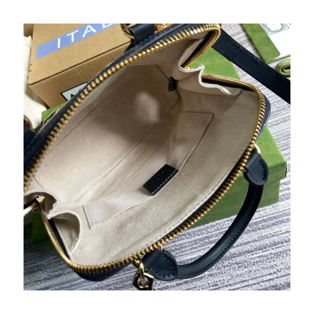 The Horsebit has become synonymous with the brand. Tracing back to Gucci’s equestrian roots, the double ring and bar design is a piece of the House’s heritage. Inspired by archival designs, the Gucci Horsebit 1955 unifies original details first introduced over six decades ago with a modern spirit. For Epilogue, the line is enriched with a mini shoulder bag in light blue leather.