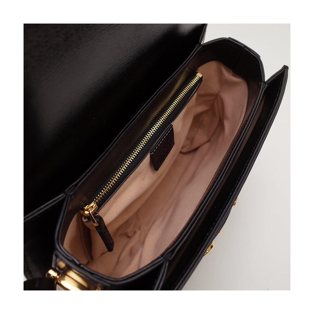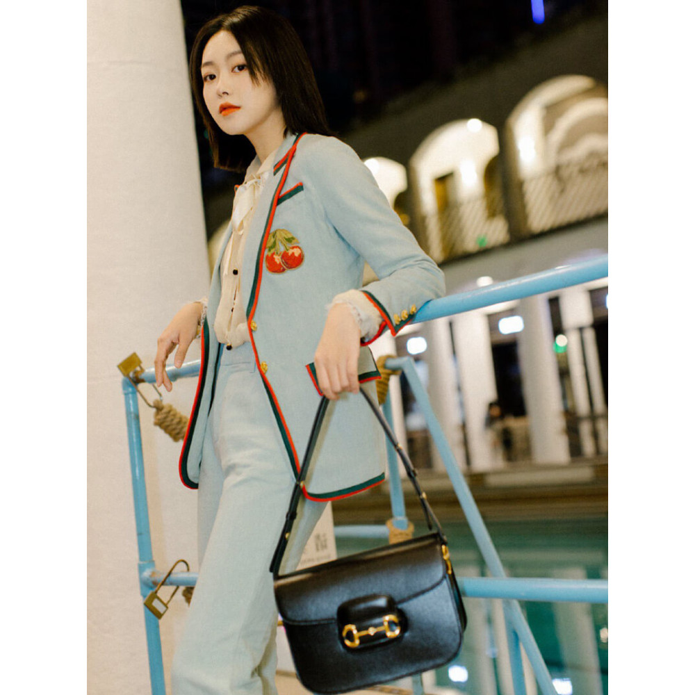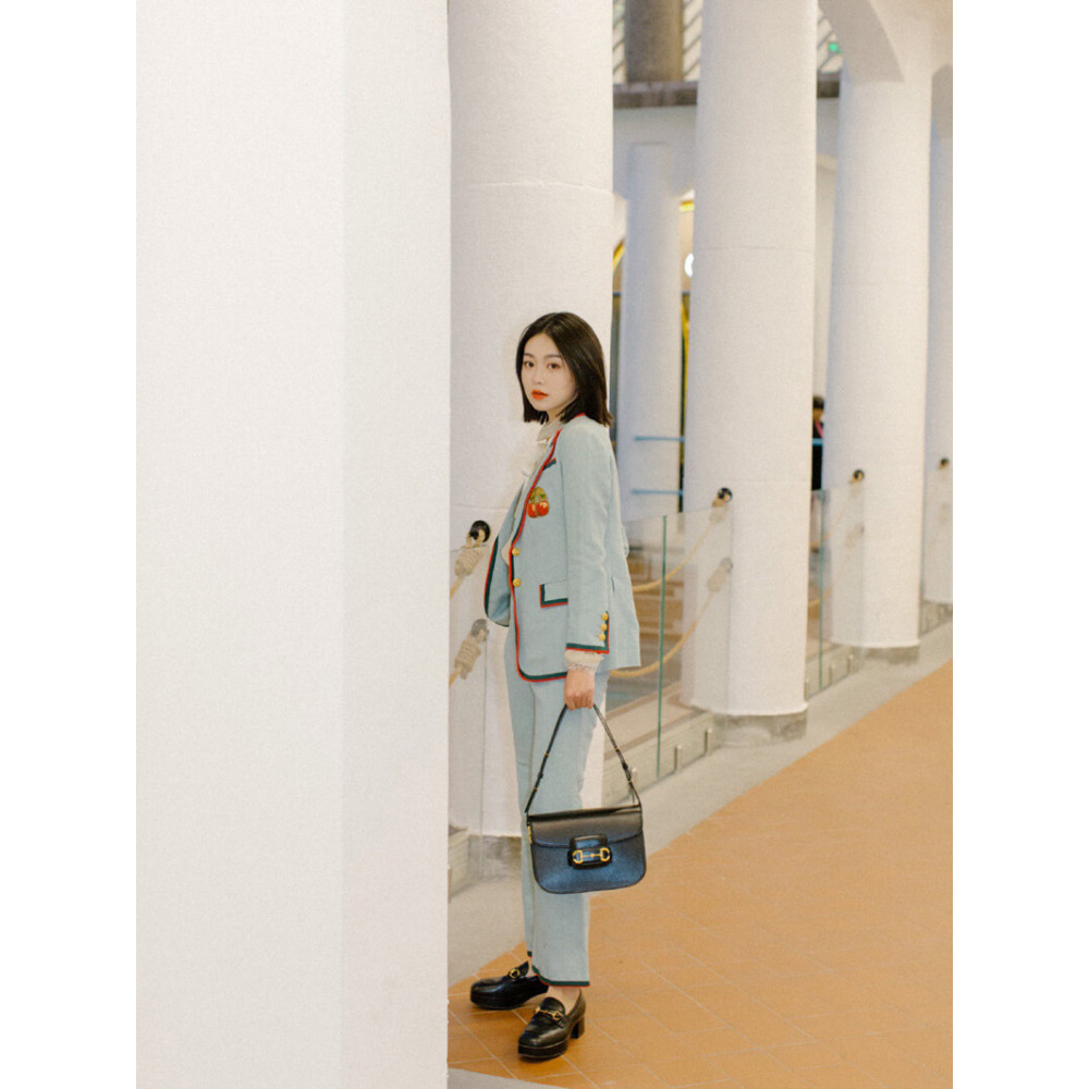 Introduced for Cruise 2020, the Gucci 1955 Horsebit bag is recreated from an archival design. With the same lines and forms first introduced over six decades ago, the accessory unifies the original details with a modern spirit, highlighting the Horsebit. Part of Gucci’s genetic code, the double ring and bar design has been established as one of the most distinctive elements among the House symbols borrowed from the equestrian world. Presented on a small flap shoulder bag, the hardware is paired with textured brown leather and completed with a special mechanism that adjusts the length of the shoulder strap so it can be carried on one shoulder or cross body.