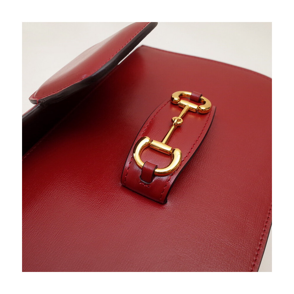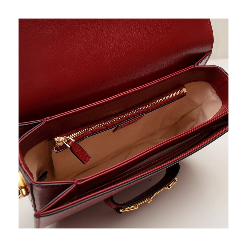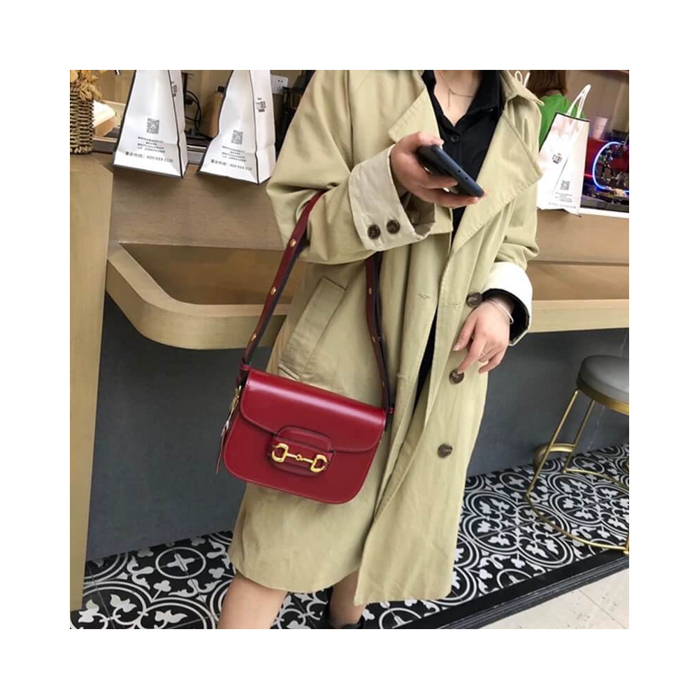 Introduced for Cruise 2020, the Gucci 1955 Horsebit bag is recreated from an archival design. With the same lines and forms first introduced over six decades ago, the accessory unifies the original details with a modern spirit, highlighting the Horsebit. Part of Gucci’s genetic code, the double ring and bar design has been established as one of the most distinctive elements among the House symbols borrowed from the equestrian world. Presented on a small flap shoulder bag, the hardware is paired with textured brown leather and completed with a special mechanism that adjusts the length of the shoulder strap so it can be carried on one shoulder or cross body.
