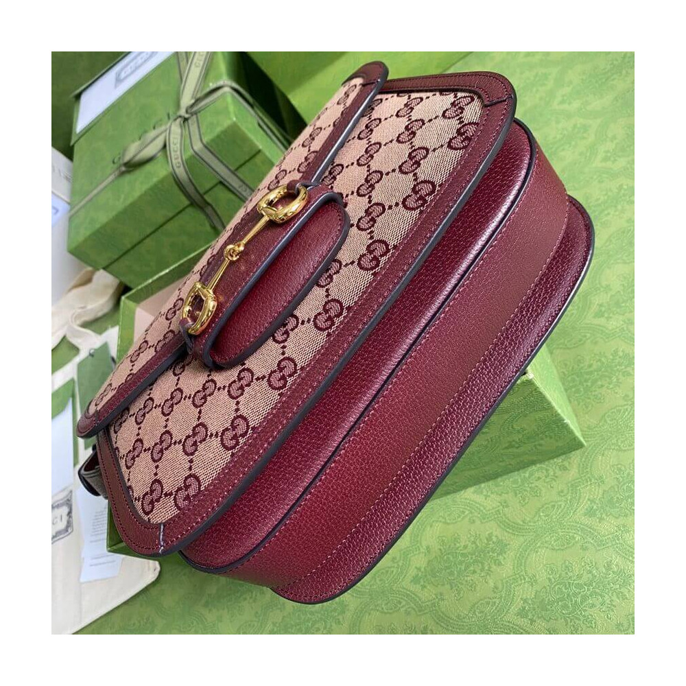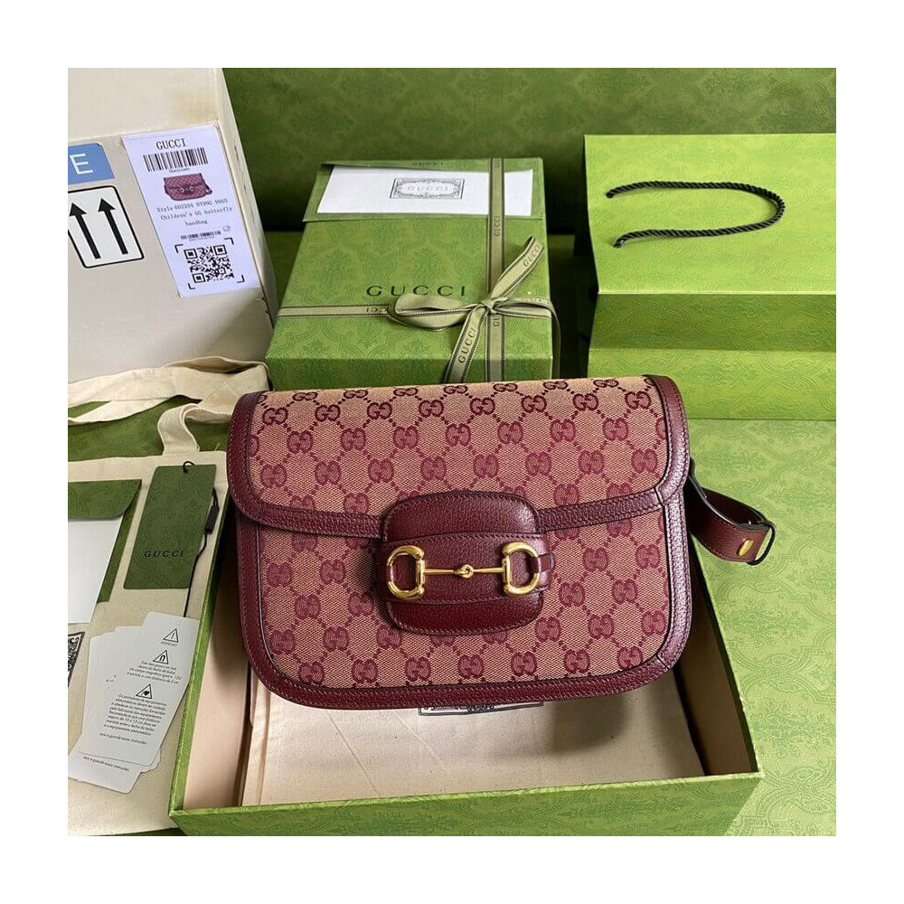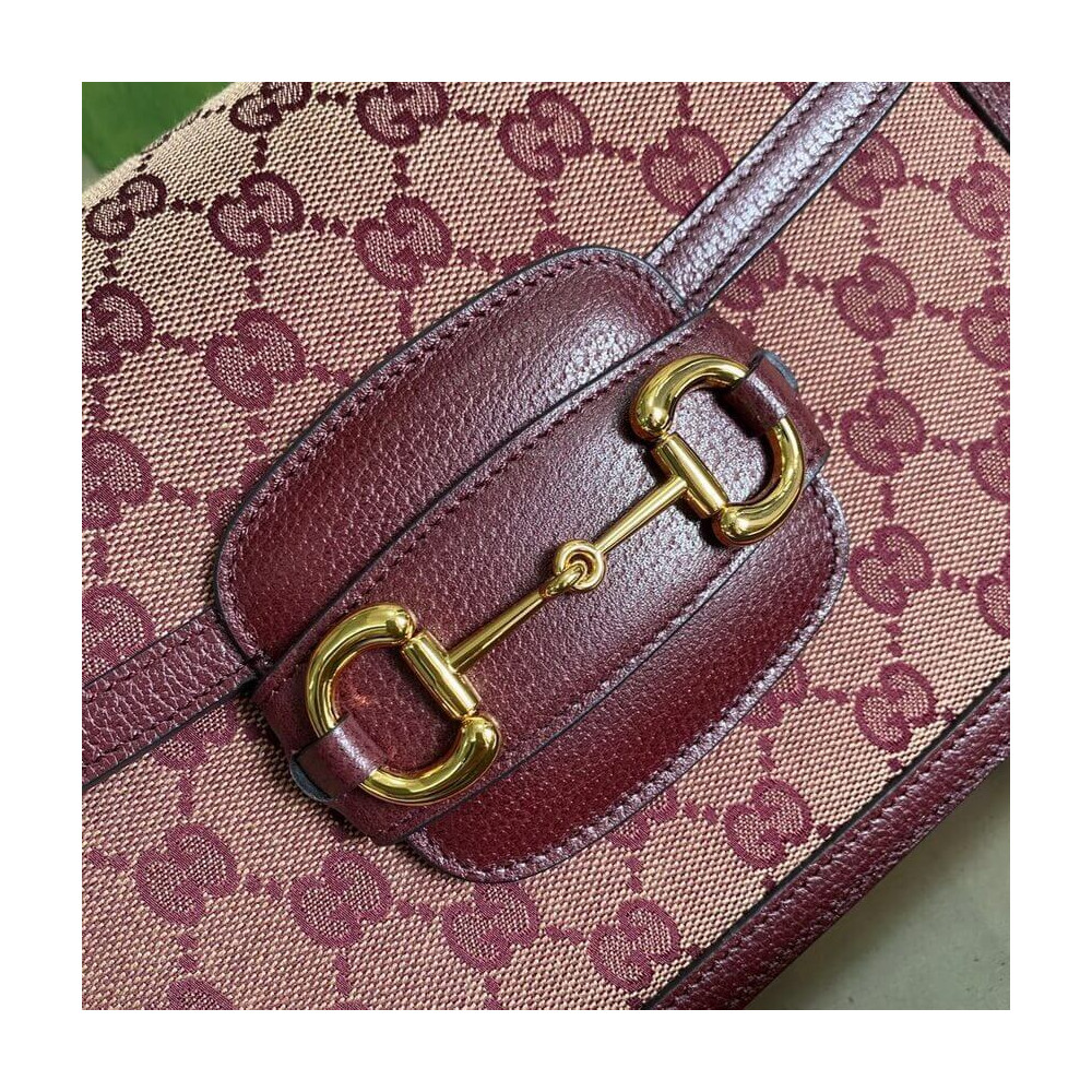 Recreated from an archival design, the Gucci Horsebit 1955 bag is introduced in beige and burgundy Original GG canvas. With the same lines and forms first introduced over six decades ago, the accessory unifies the original details with a modern spirit, highlighting the Horsebit. The small flap shoulder bag is completed with a special mechanism that adjusts the length of the shoulder strap so it can be carried on one shoulder or cross body.