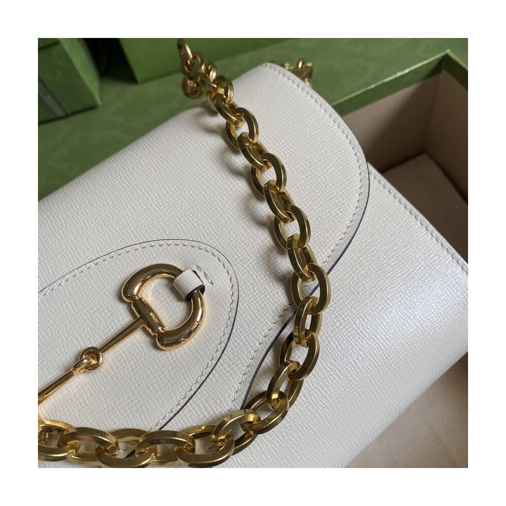 Embodying the notion of the versatility, the Gucci Horsebit 1955 is enriched with two detachable shoulder straps, one is crafted in emblematic green and red Web the other is in Gucci’s recognizable gold-toned chain design. The style is crafted from black leather and defined by the line’s signature Horsebit hardware.