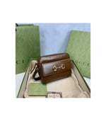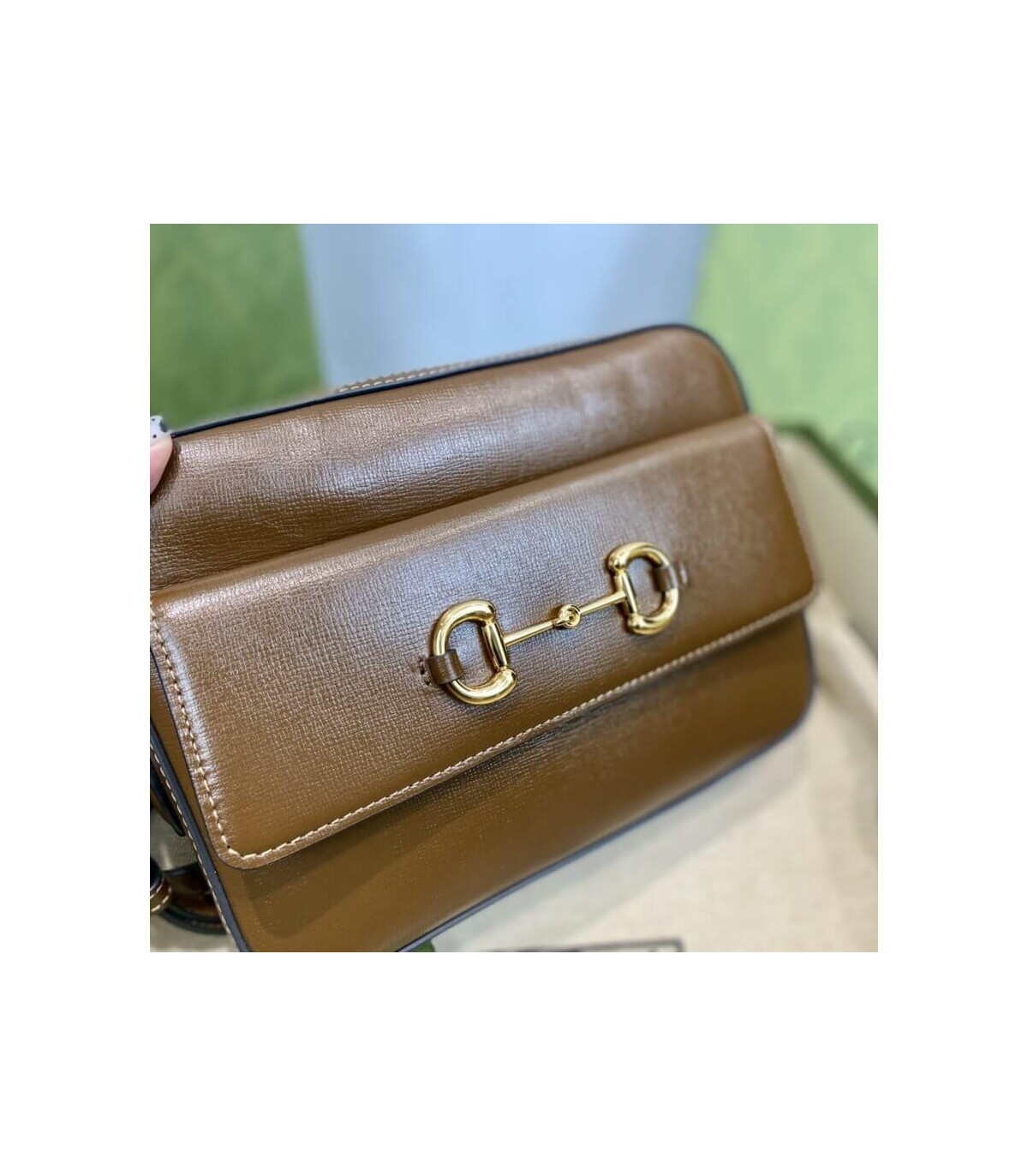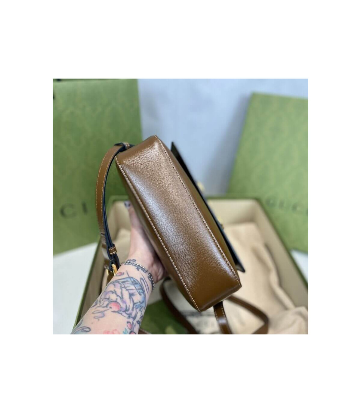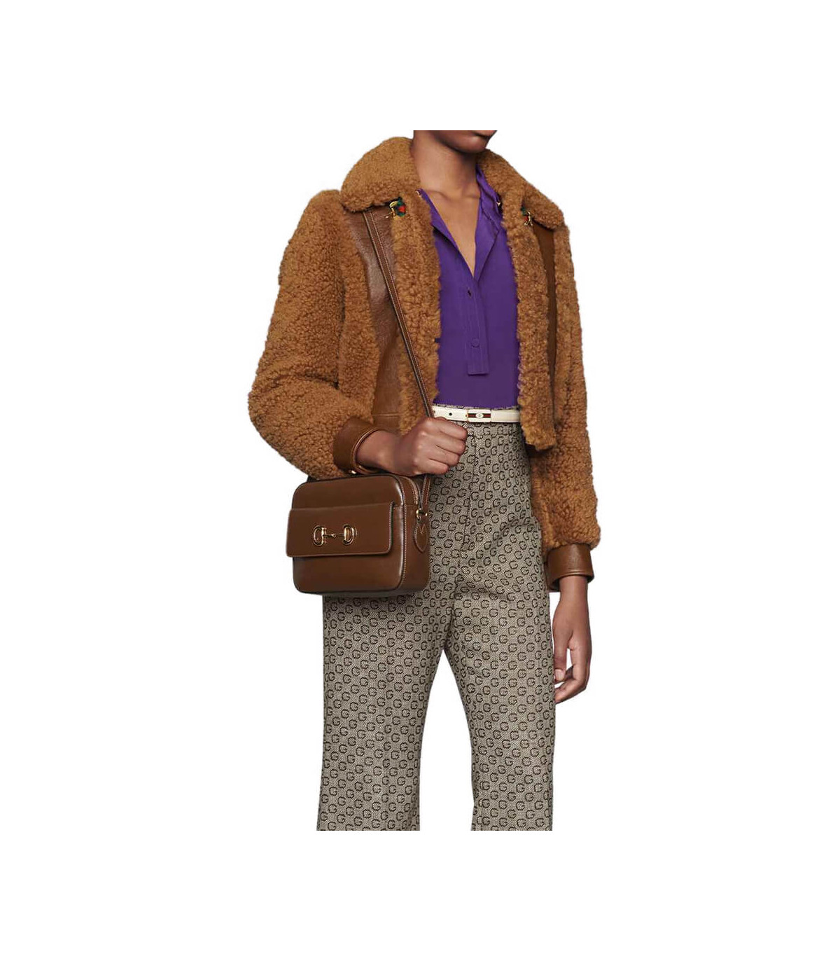 The Horsebit has become synonymous with the brand. Tracing back to Gucci’s equestrian roots, the double ring and bar design is a piece of the House’s heritage. The Epilogue collection’s Gucci Horsebit 1955 unifies this original details first introduced over six decades ago with a modern spirit in a small brown textured leather shoulder bag completed by a special mechanism that adjusts the length of the shoulder strap so it can be carried on one shoulder or cross body.