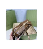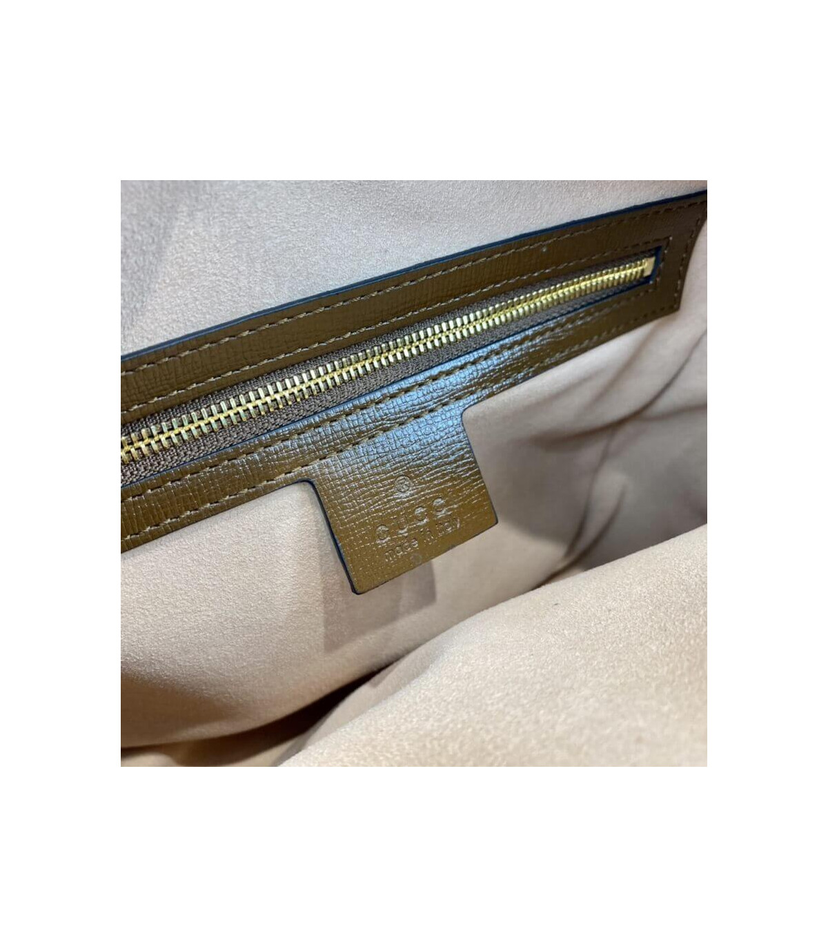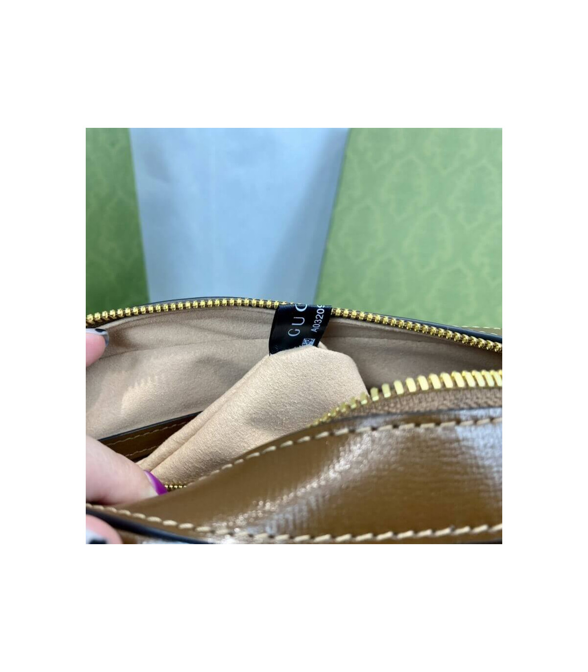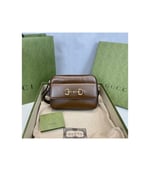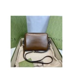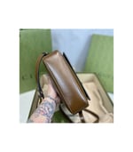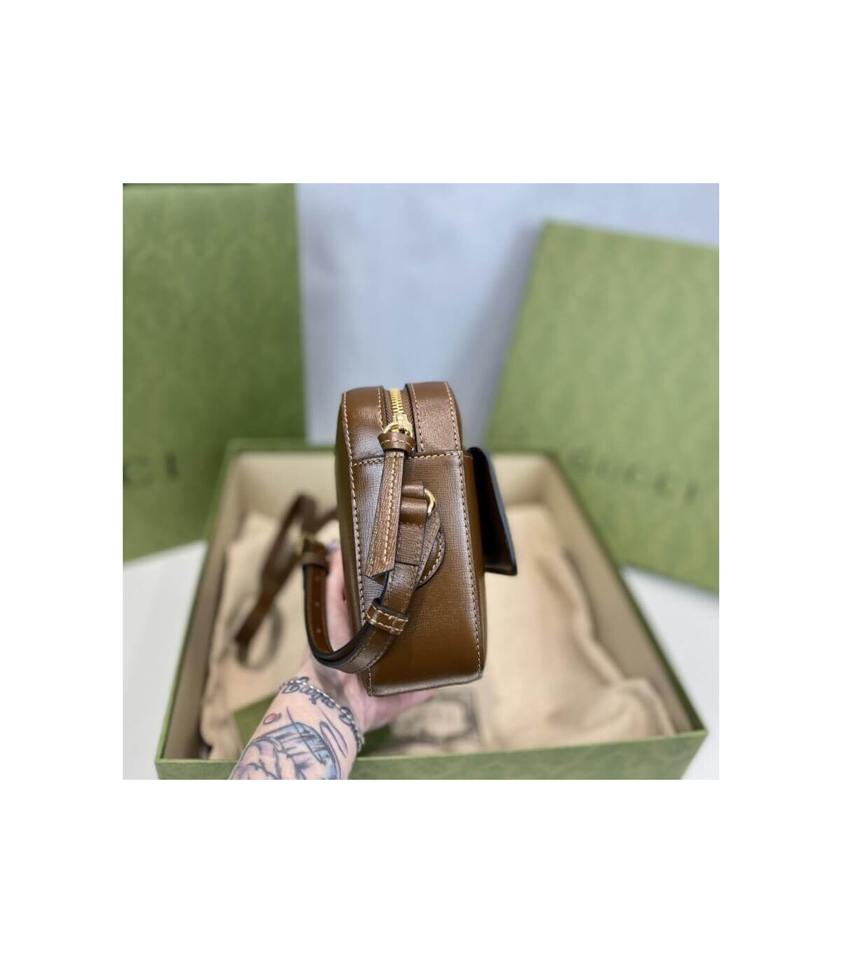 The Horsebit has become synonymous with the brand. Tracing back to Gucci’s equestrian roots, the double ring and bar design is a piece of the House’s heritage. The Epilogue collection’s Gucci Horsebit 1955 unifies this original details first introduced over six decades ago with a modern spirit in a small brown textured leather shoulder bag completed by a special mechanism that adjusts the length of the shoulder strap so it can be carried on one shoulder or cross body.