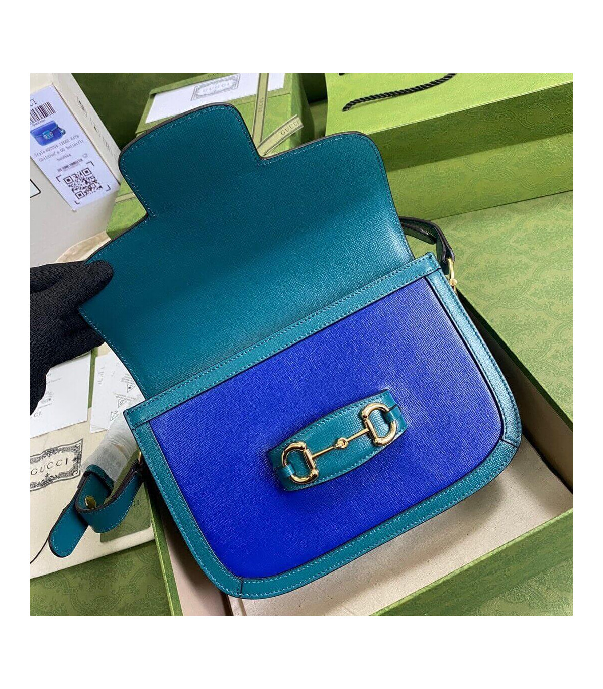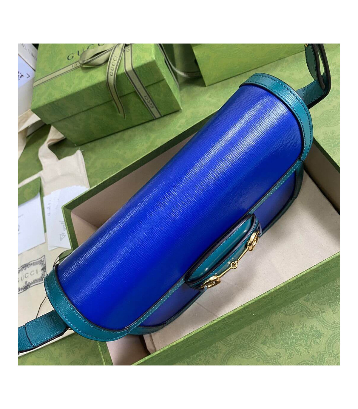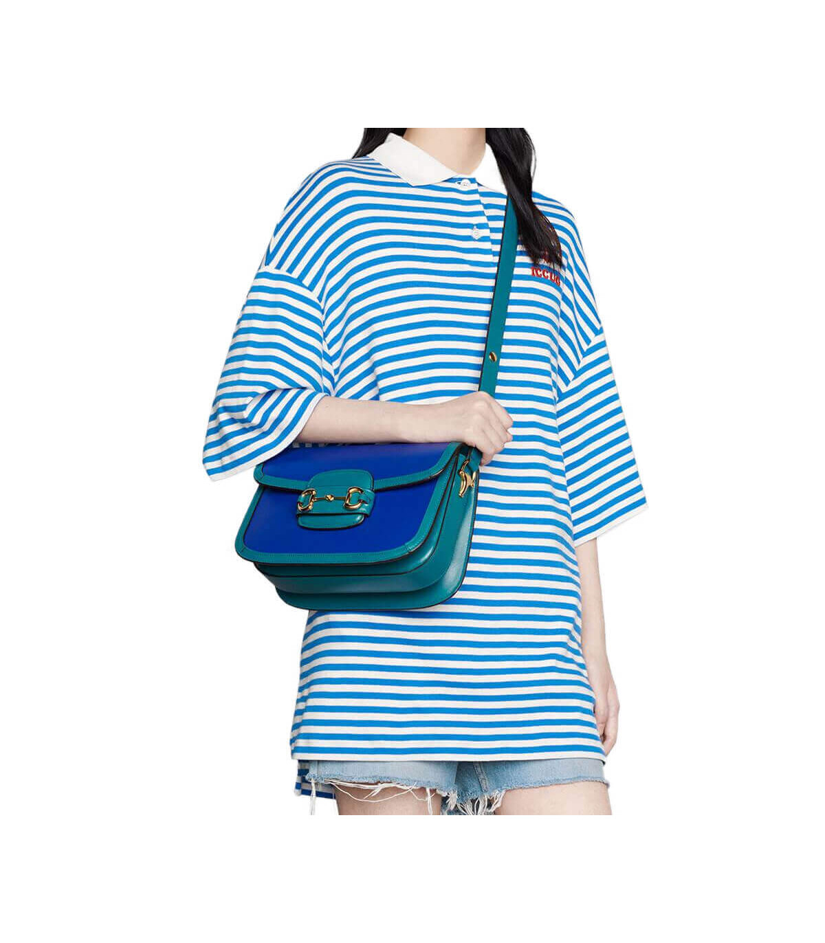 A part of the House’s Beloved lines, the Gucci Horsebit 1955’s signature namesake hardware is complemented by ruby toned leather with a pastel pink trim. Jewel tones appear throughout the Ouverture collection, linking the lines dear to the Hose with precious stones and gems.