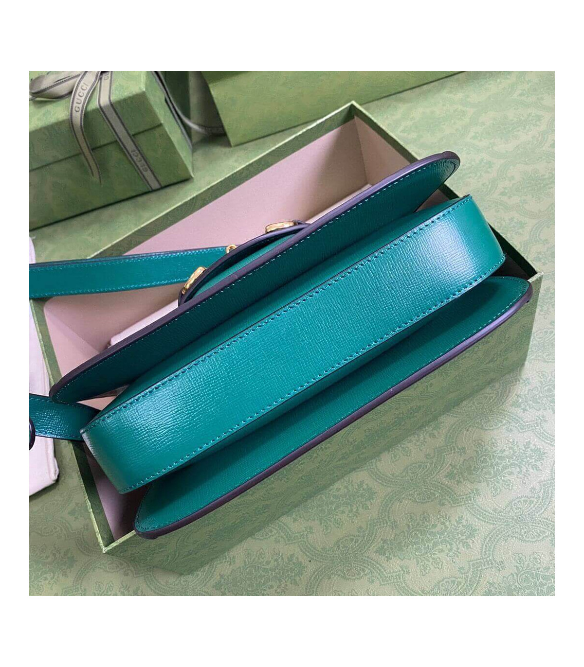 Gucci Horsebit 1955 Small Shoulder Bag Blue and Green Leather
