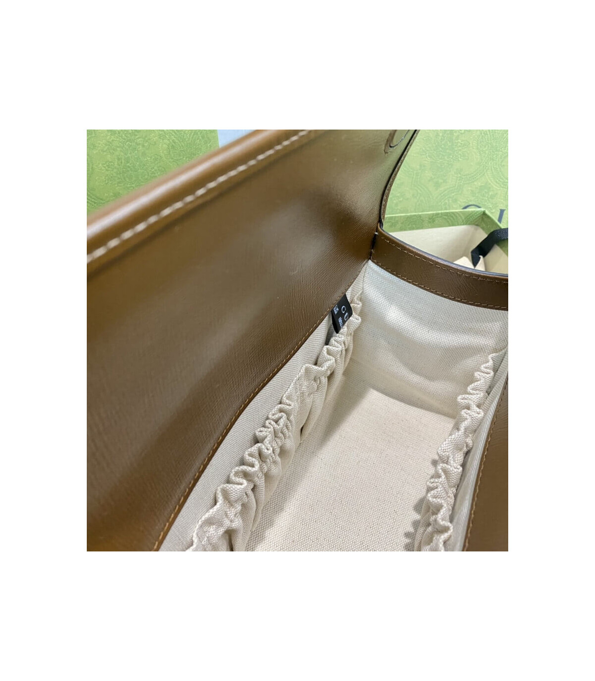 – Brown textured leather trim with a vintage effect