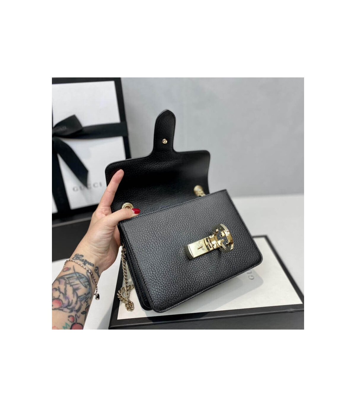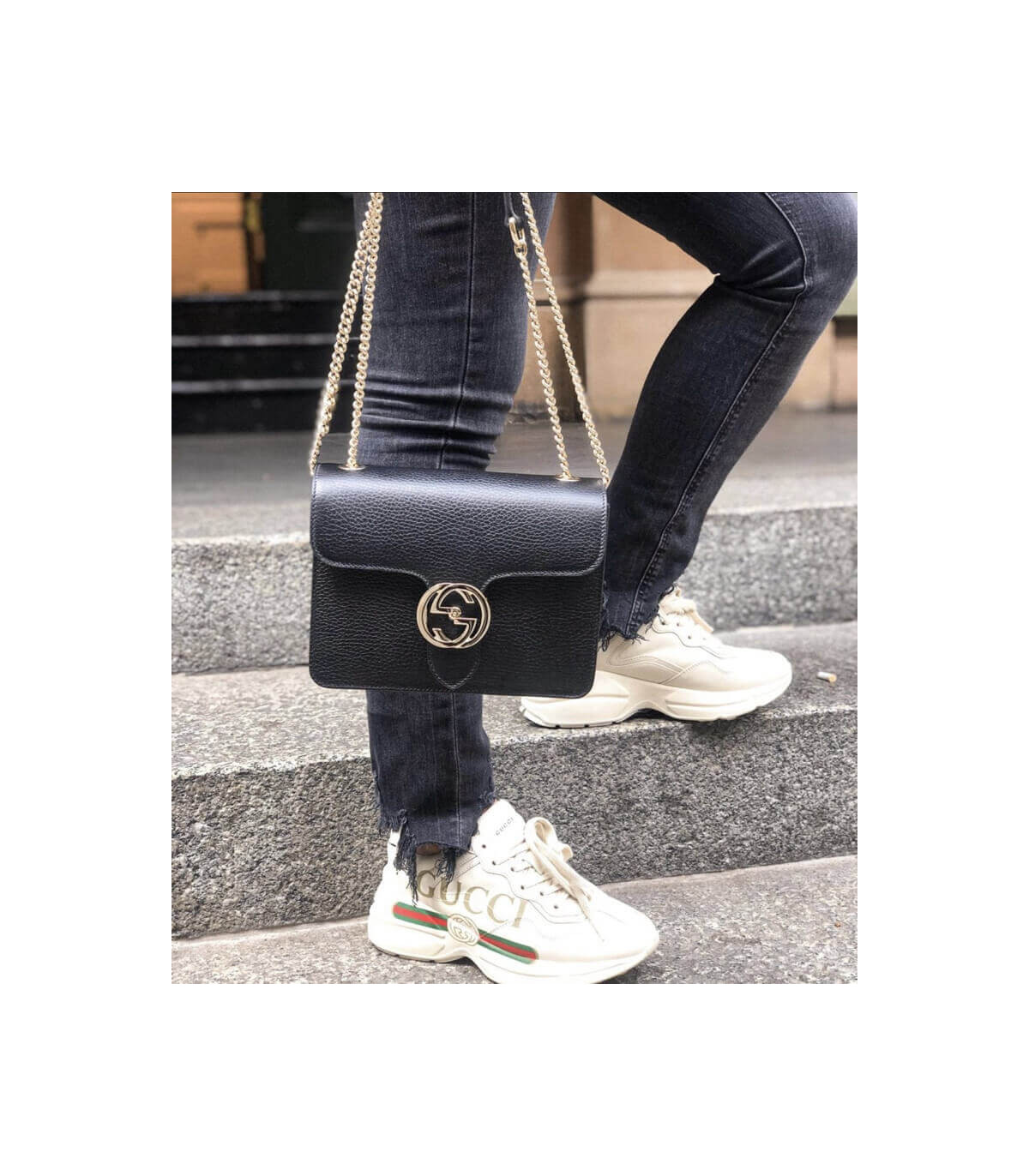 Gucci Interlocking G Chain Crossbody – Black Leather | 1:1 Rep