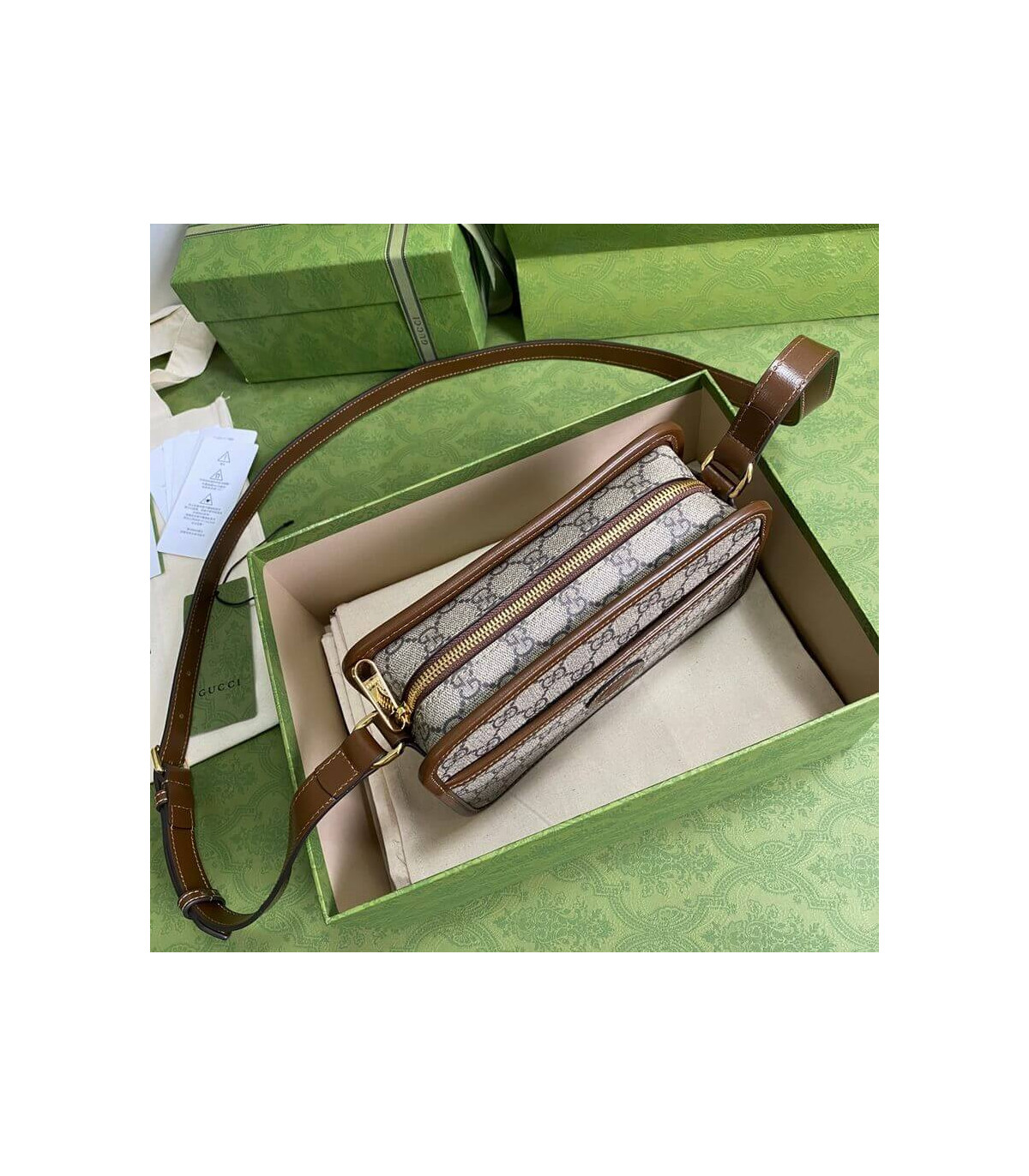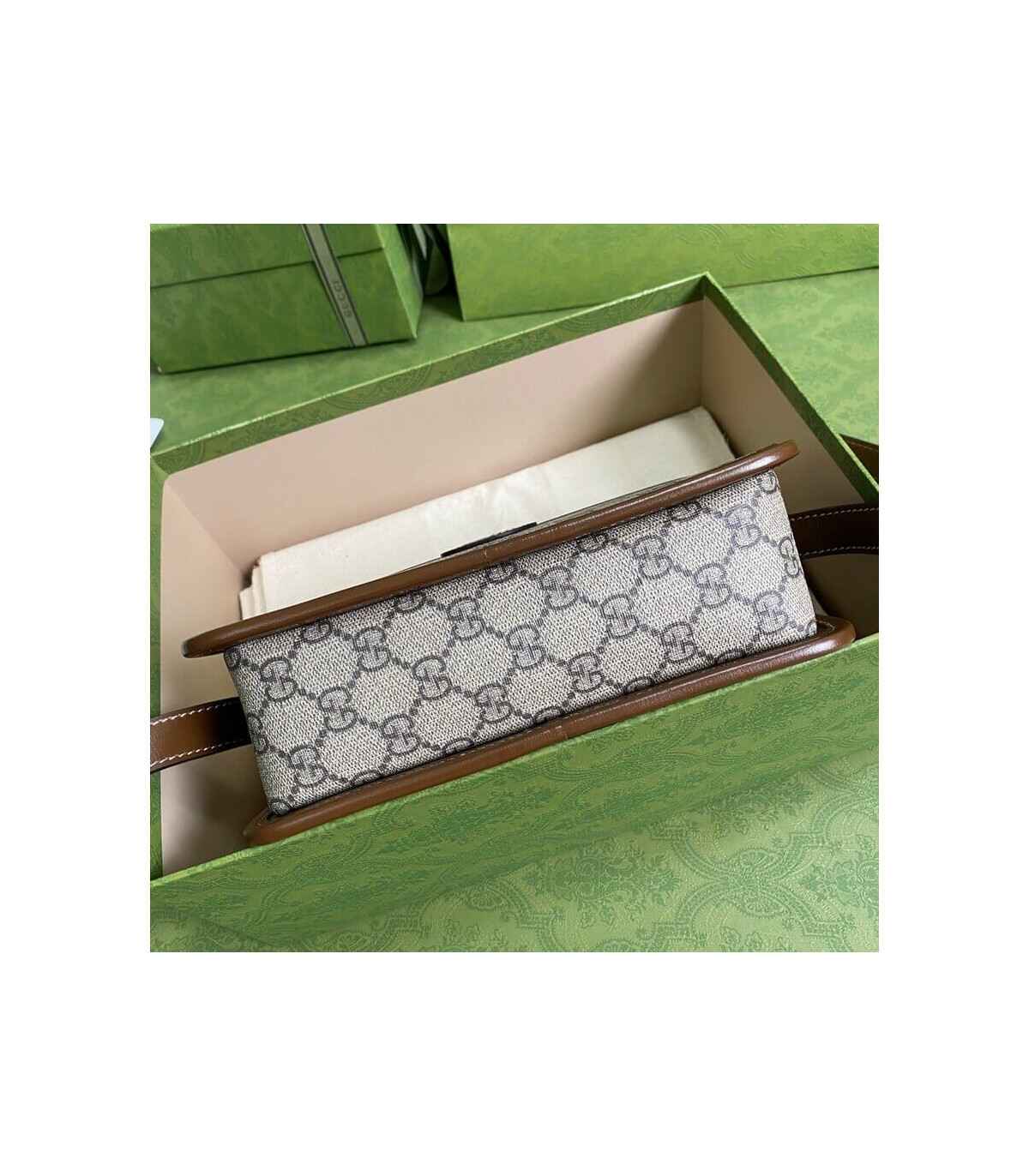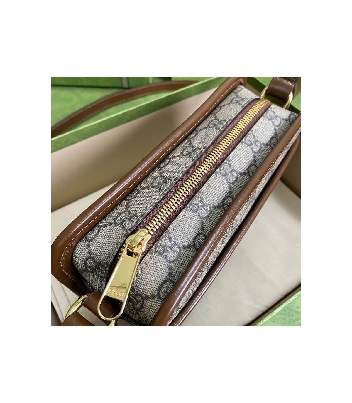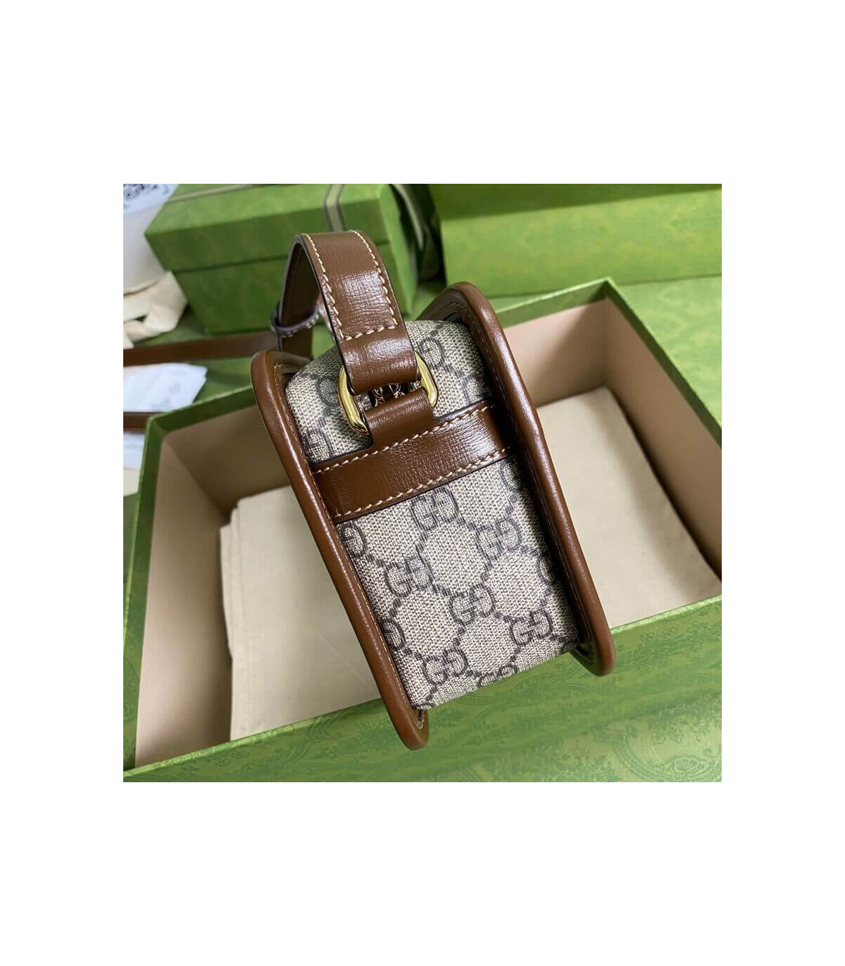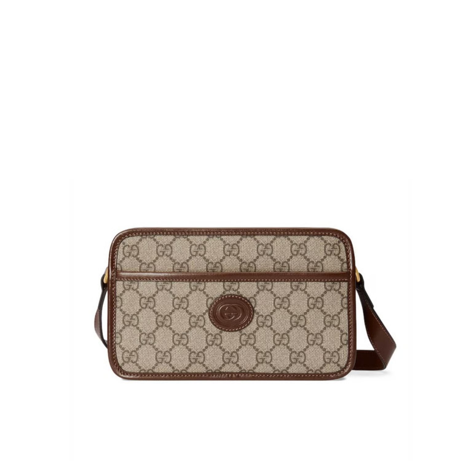 Crafted in GG Supreme canvas with brown leather trim, this vintage-inspired mini bag features a leather Interlocking G patch and a compact silhouette with smart compartments.
