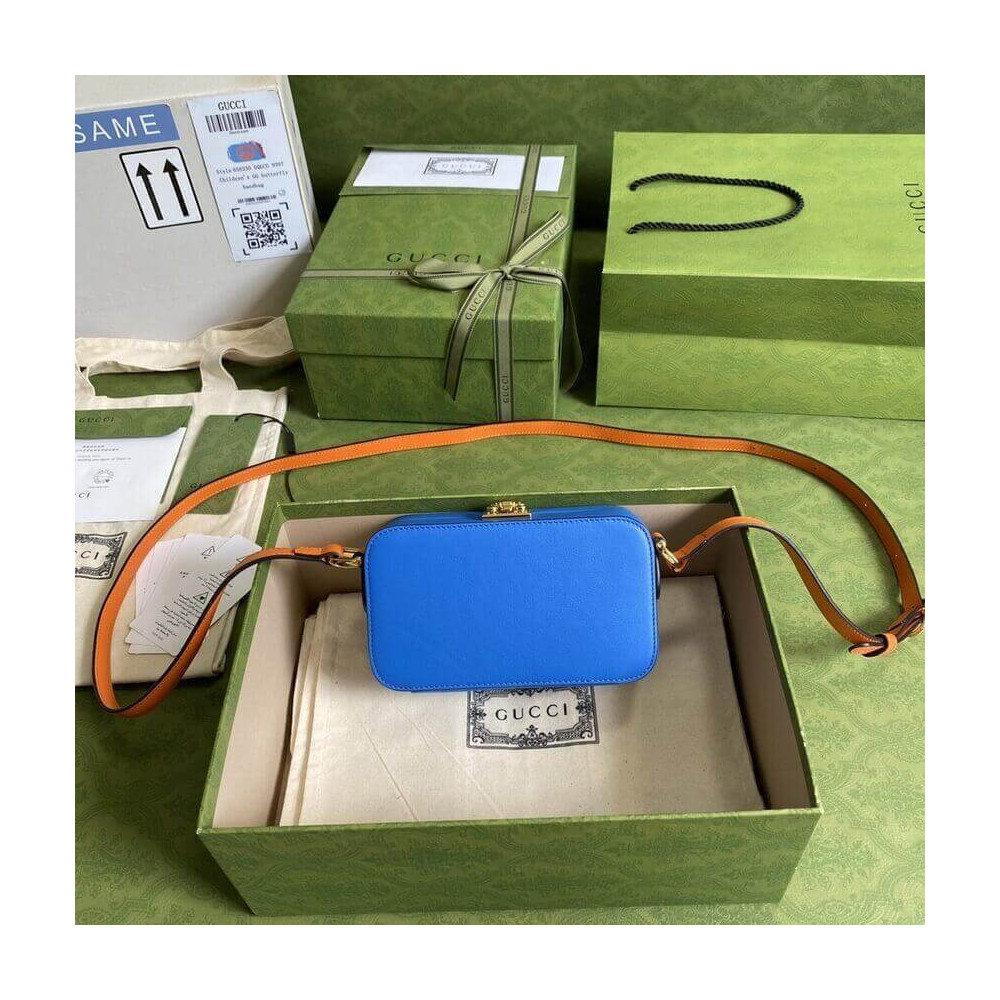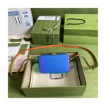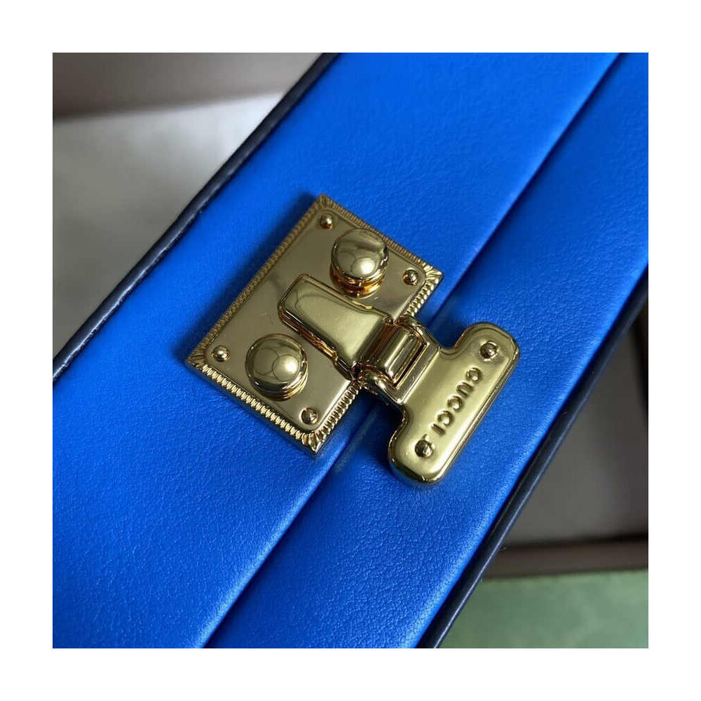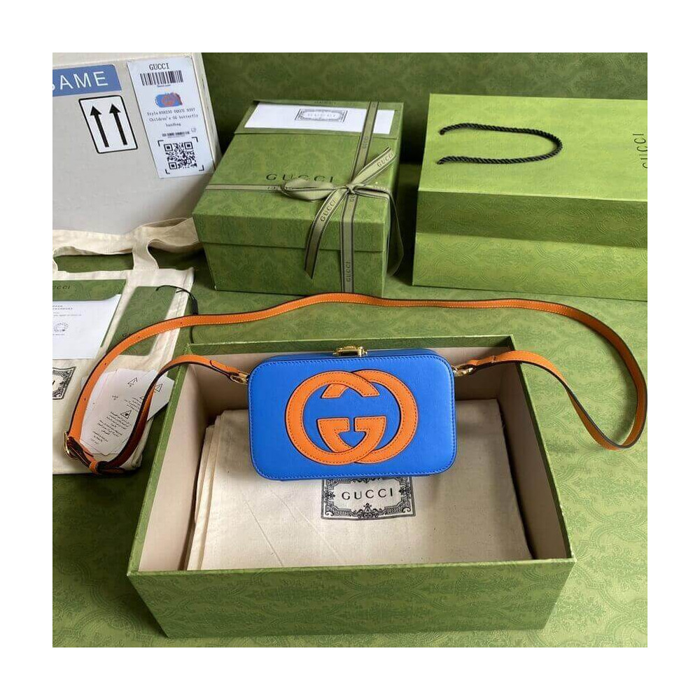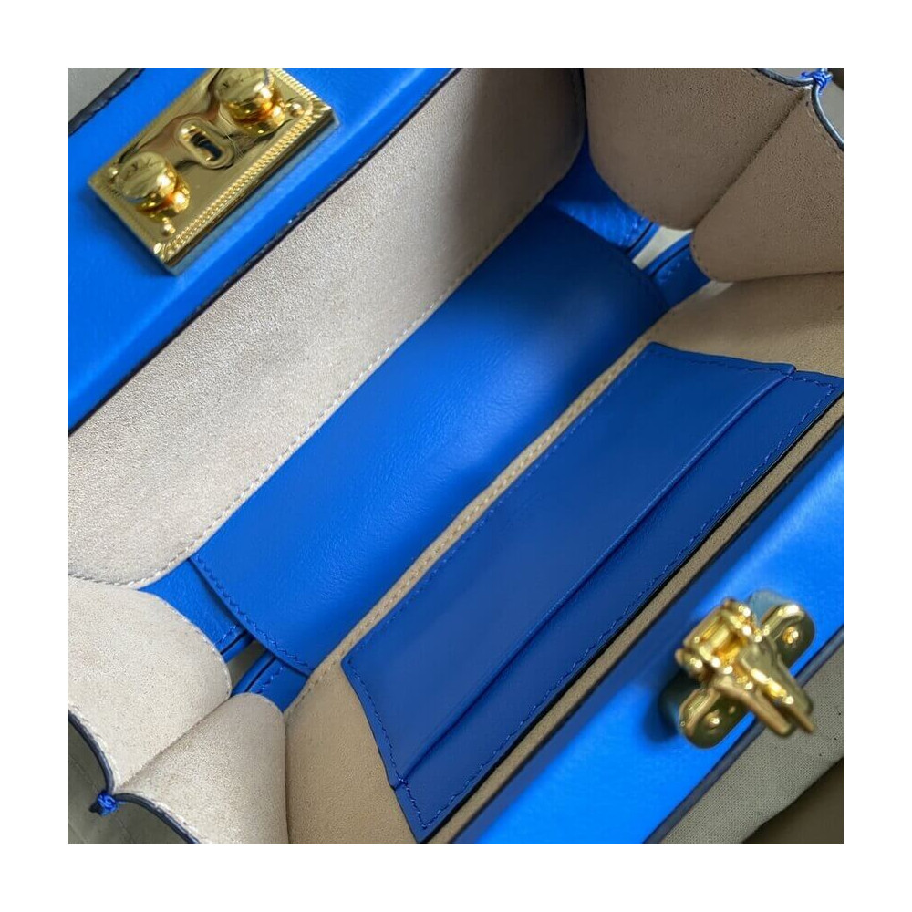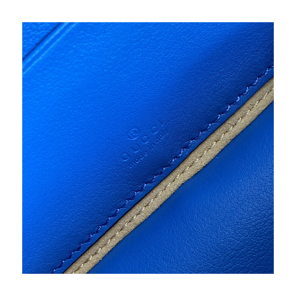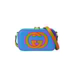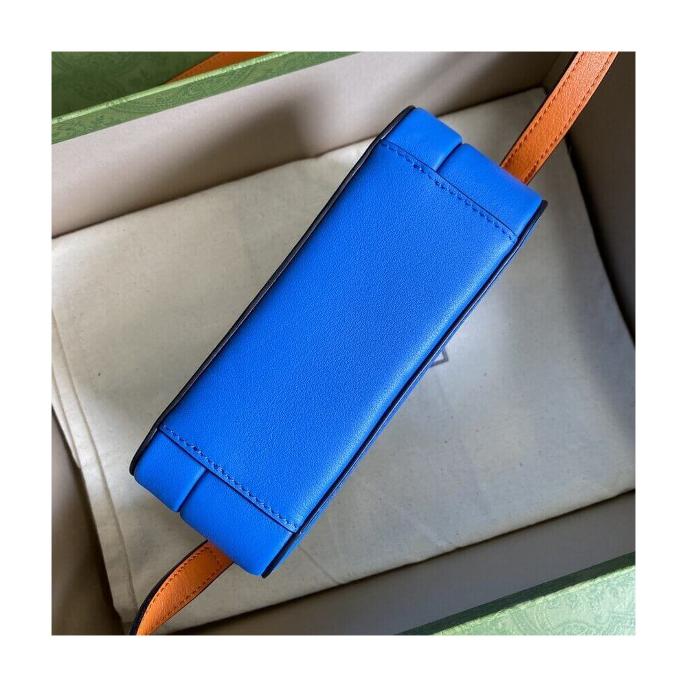 Pop colours add a contemporary touch to the Interlocking G. An archival code inspired by the initials of the Founder of the House, the symbol evolves each season, celebrating different chapter’s of Gucci’s history. The mini bag is completed by an adjustable shoulder strap.