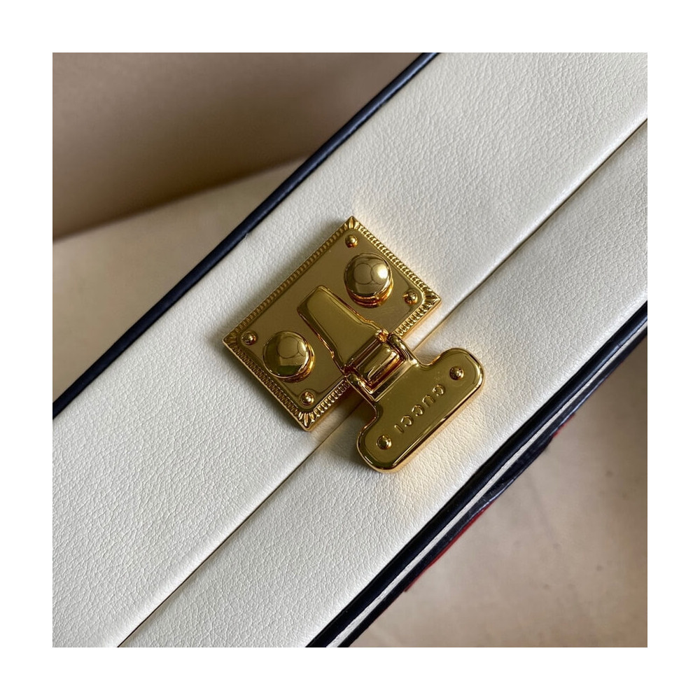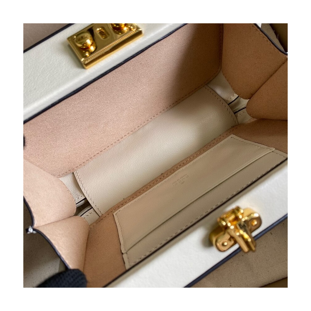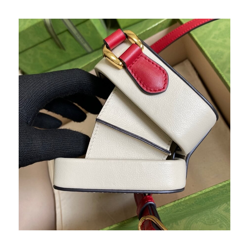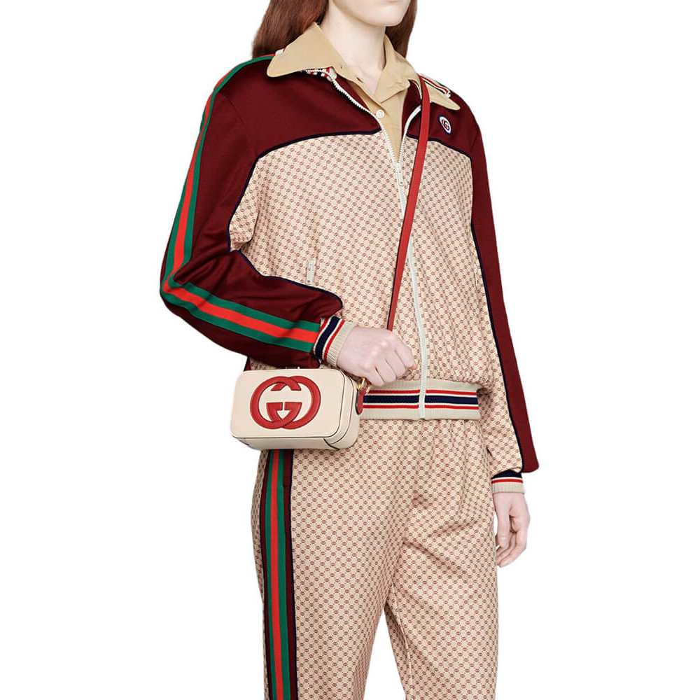 Pop colours add a contemporary touch to the Interlocking G. An archival code inspired by the initials of the Founder of the House, the symbol evolves each season, celebrating different chapter’s of Gucci’s history. The mini bag is completed by an adjustable shoulder strap.