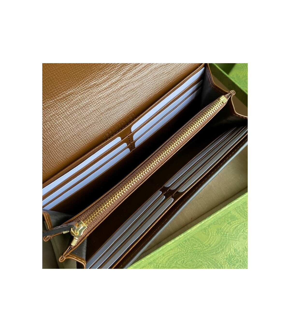 Interior: 12 card slots, 2 bill compartments, 2 compartments, 1 zip coin pocket