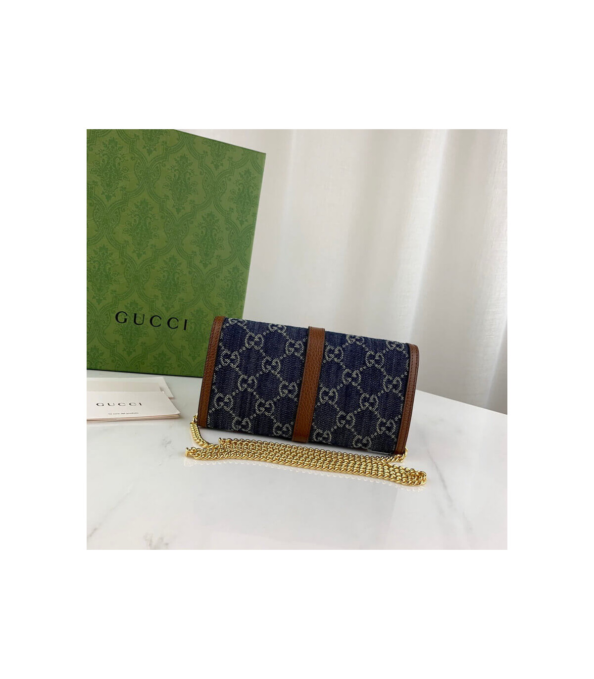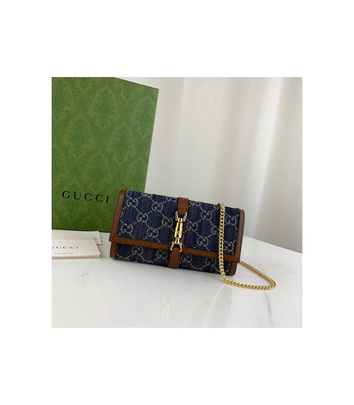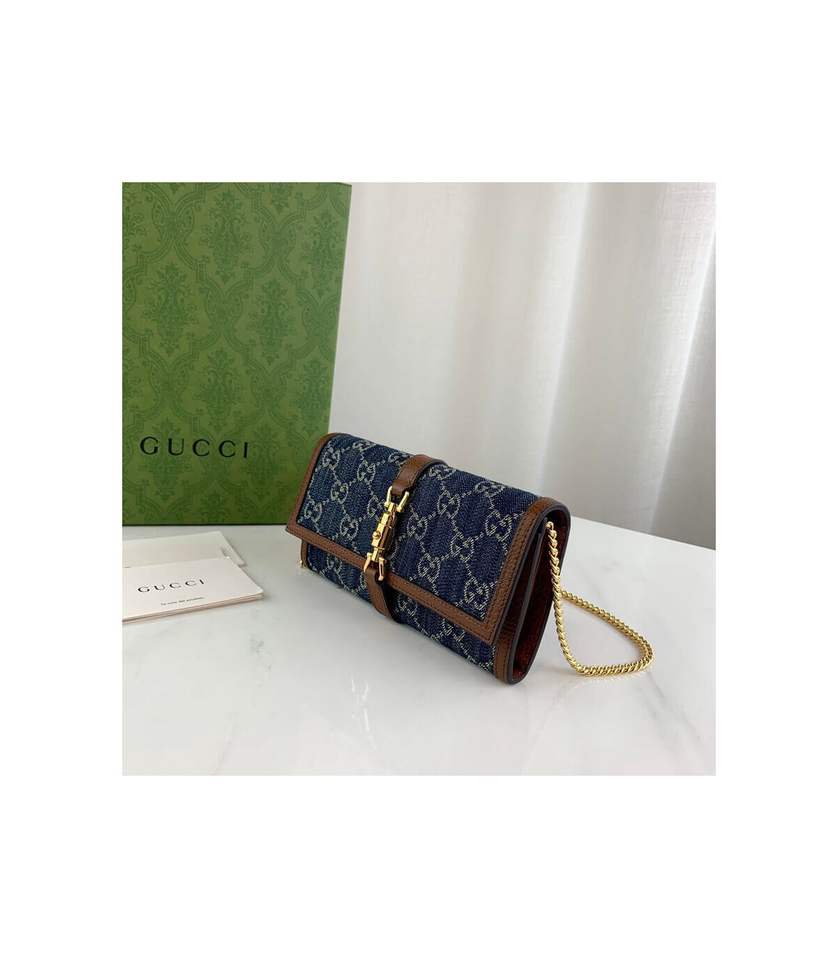 Gucci Jackie 1961 Chain Wallet – Blue GG Denim | 1:1 Rep