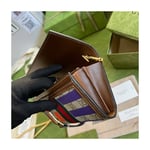 Inspired by jockey uniforms and paddock traditions, this Jackie 1961 chain wallet features a vibrant geometric print over beige/ebony GG Supreme canvas. Enhanced with brown leather trim and gold-toned piston hardware, it transitions seamlessly from wallet to mini bag thanks to the detachable chain strap.
