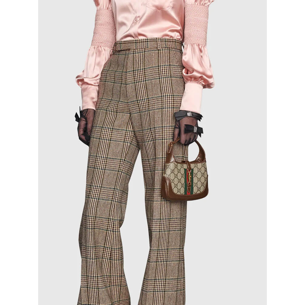 A timeless icon reimagined, the Jackie 1961 mini shoulder bag is crafted from beige/ebony GG Supreme canvas with brown leather trim and green-red Web detail. Featuring a signature gold-toned piston closure and detachable shoulder strap, this compact piece offers multiple ways to wear—from top handle to crossbody.