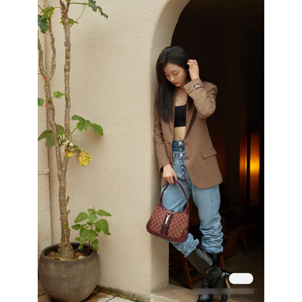 Gucci Jackie 1961 Small Shoulder Bag – Burgundy GG Canvas | 1:1 Rep