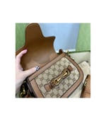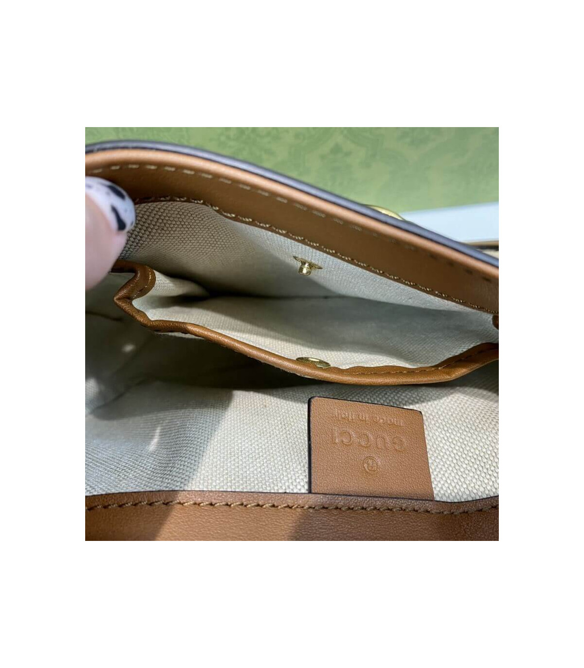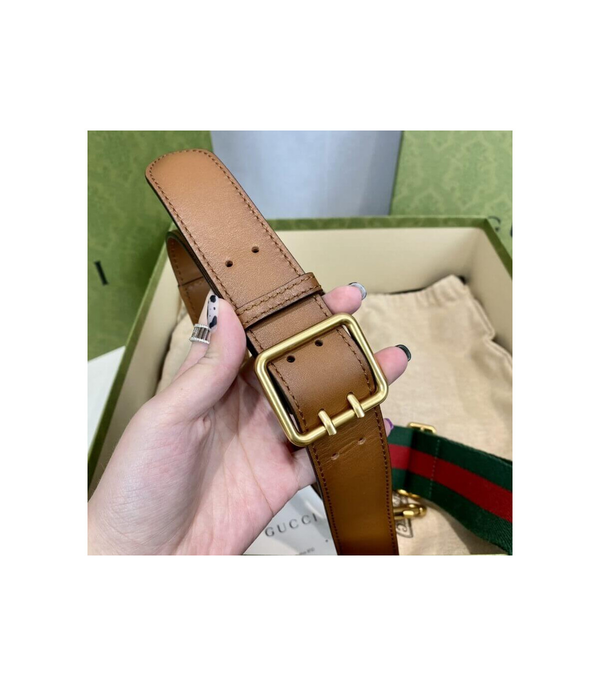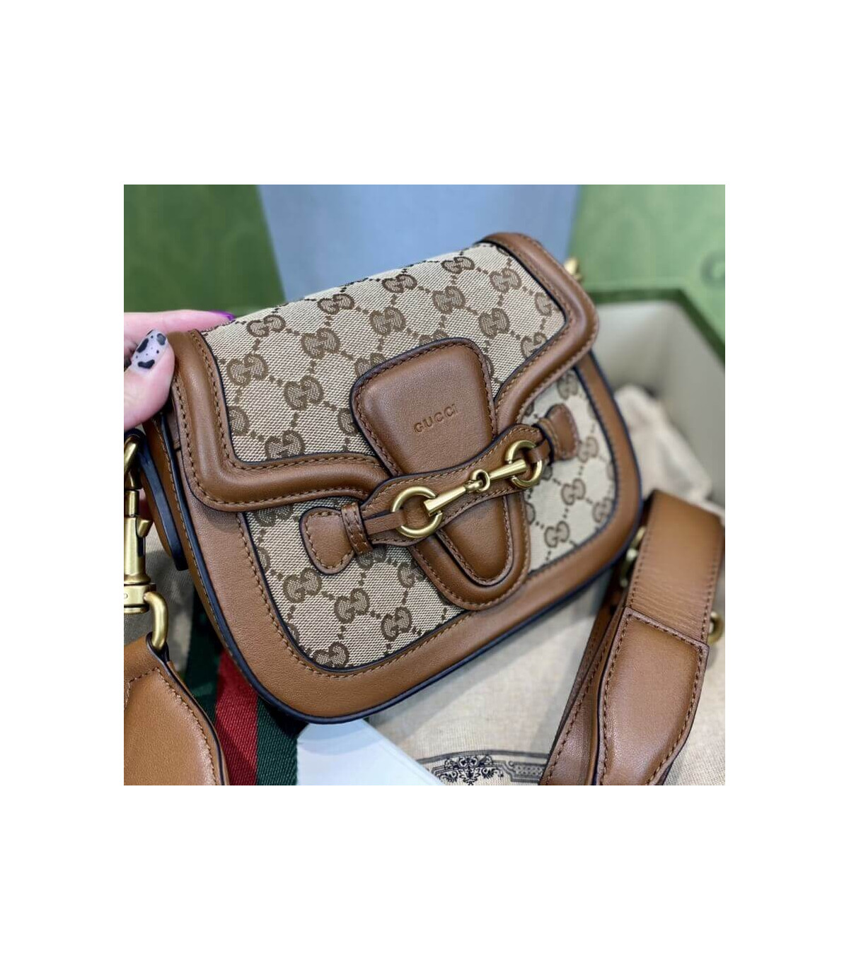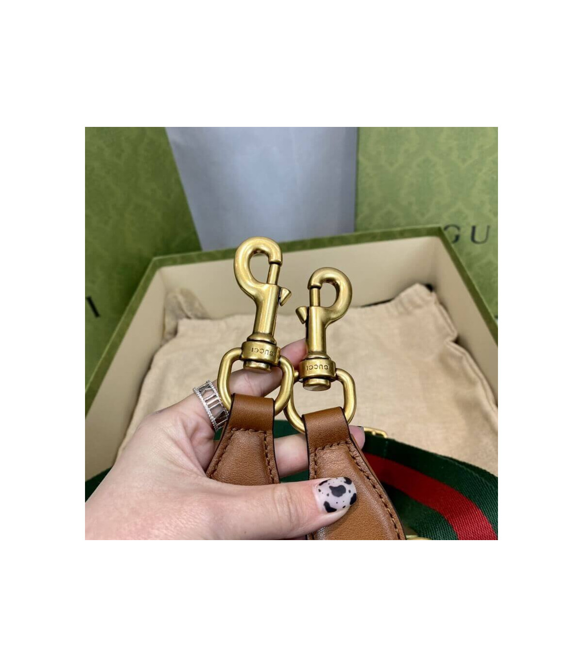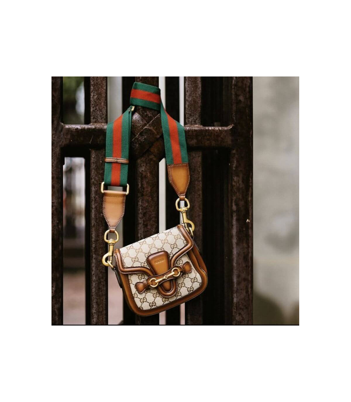 Our Lady Web shoulder bag has a wide adjustable Web nylon shoulder strap and Horsebit detail. Our Original GG canvas is beautifully presented with our brown hand-stained leather.