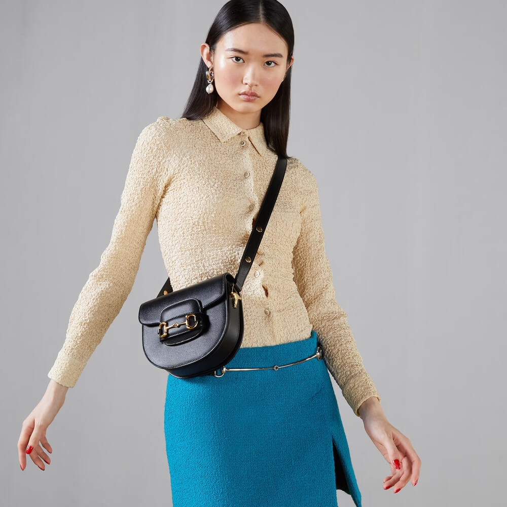 The Gucci 1955 Horsebit evolves as part of the latest collection with the addition of a mini shoulder bag variation, offering greater versatility and functionality. Presented in signature white leather with a flap closure, an adjustable shoulder strap completes the design.