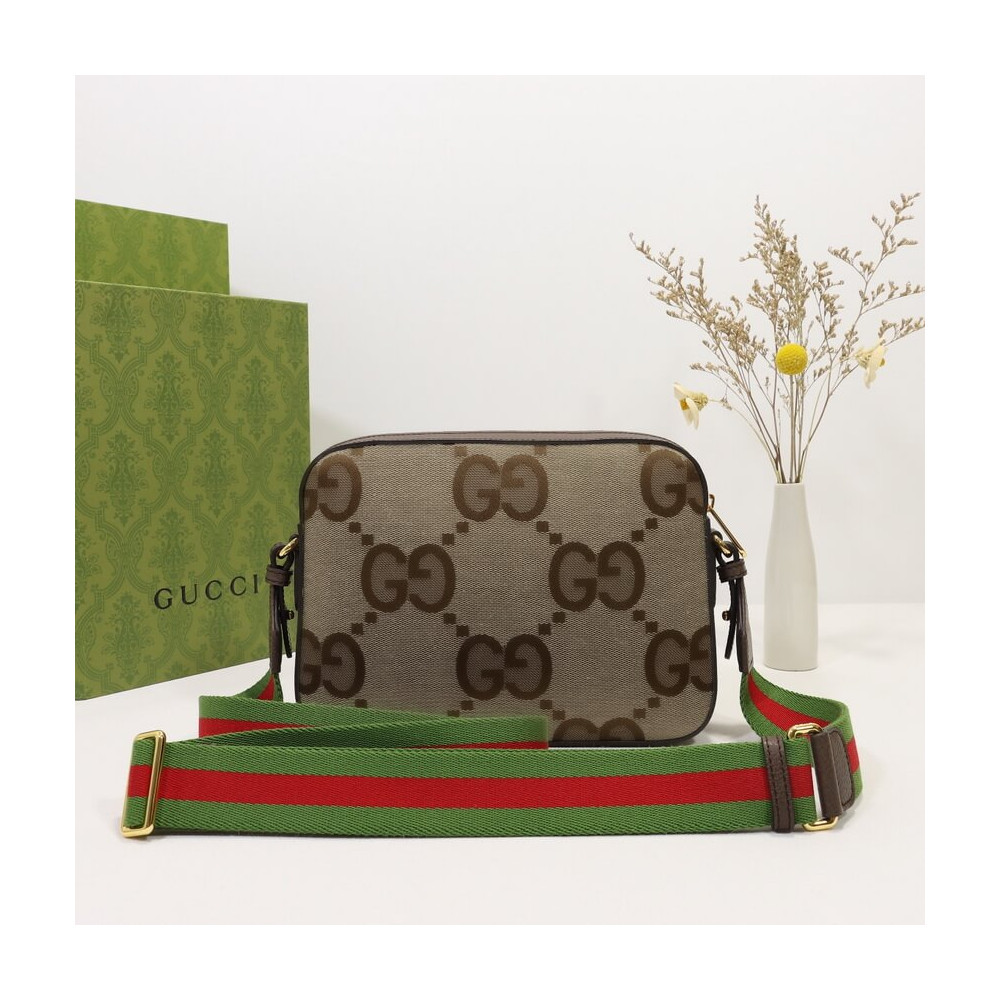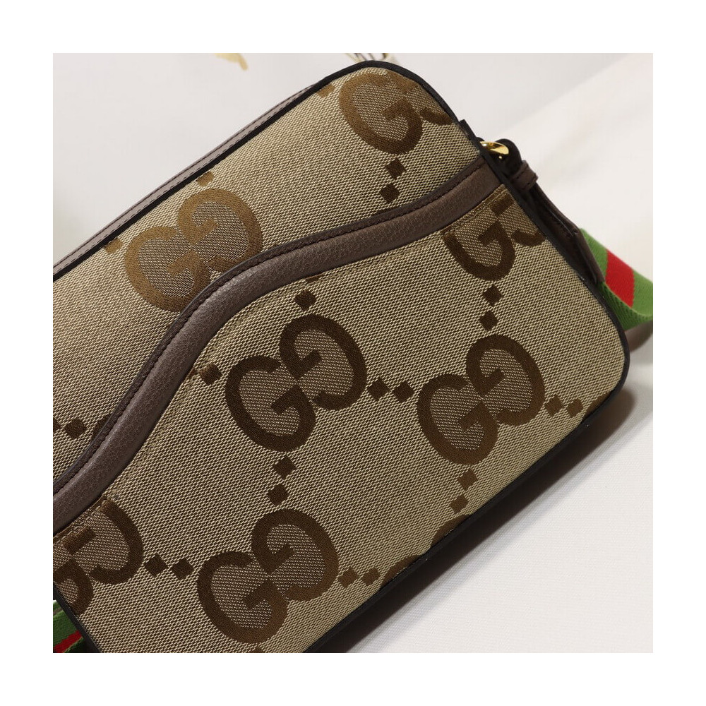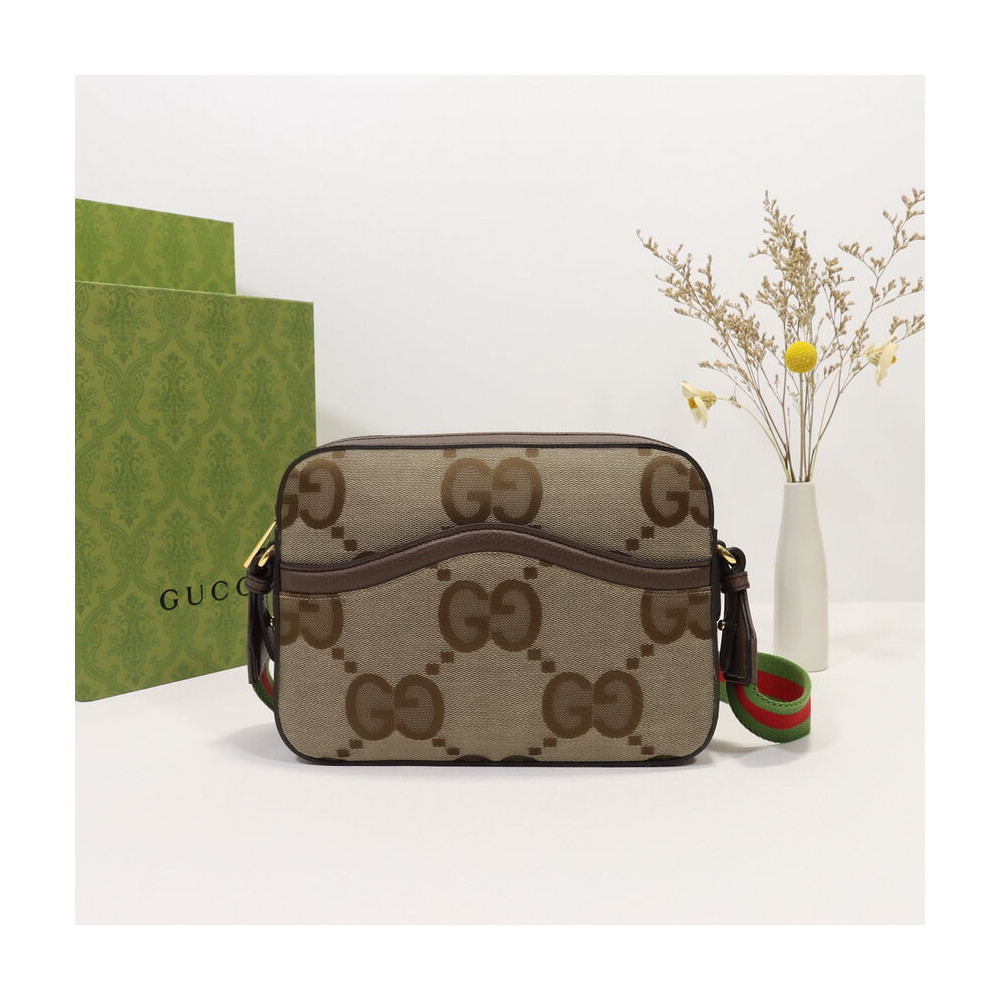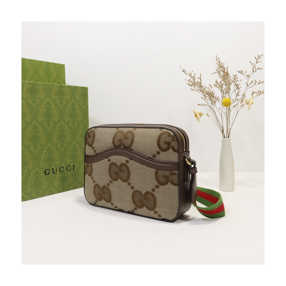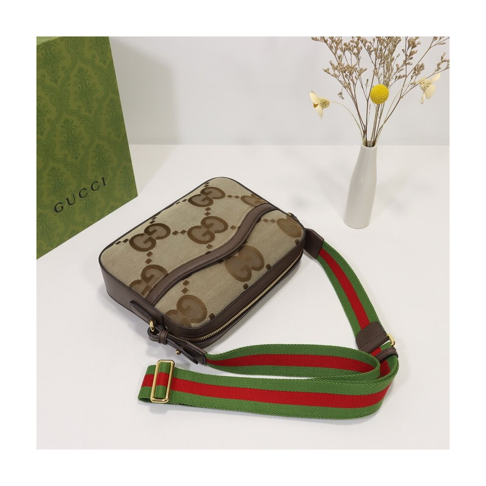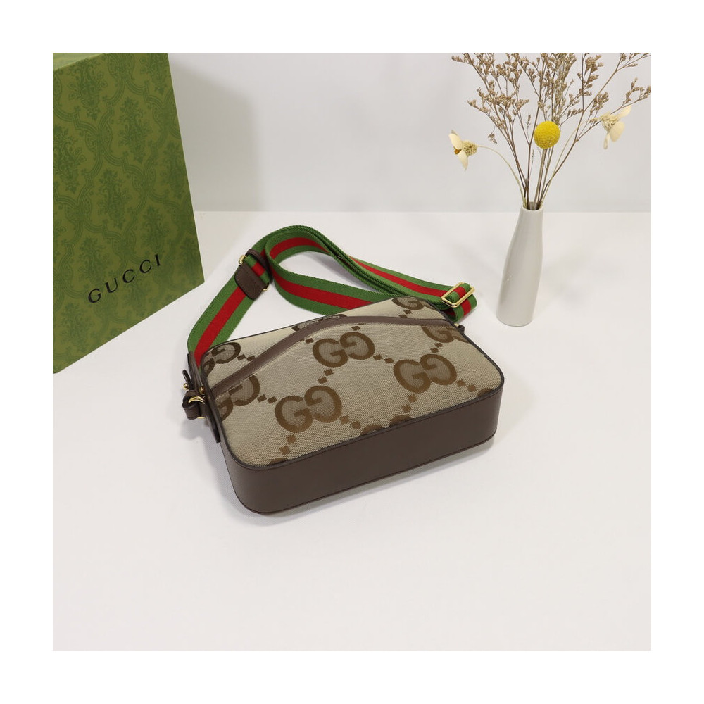 The Interlocking G has remained one of the most symbolic codes of the House since its introduction. The distinguishing emblem appears as a leather detail atop this messenger bag. Completing the design’s logo feel, the style is crafted from monogram canvas with the GG motif appearing in a maximalist, jumbo-sized version.
