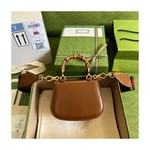 Heritage elements are reimagined with a contemporary twist throughout the Aria collection. An emblem of Gucci’s origins, bamboo has appeared throughout the House’s collections since the ’40s. After over eight decades, the material defines this mini bag in black leather. The accessory is presented with a detachable shoulder strap, adding a versatile feel.