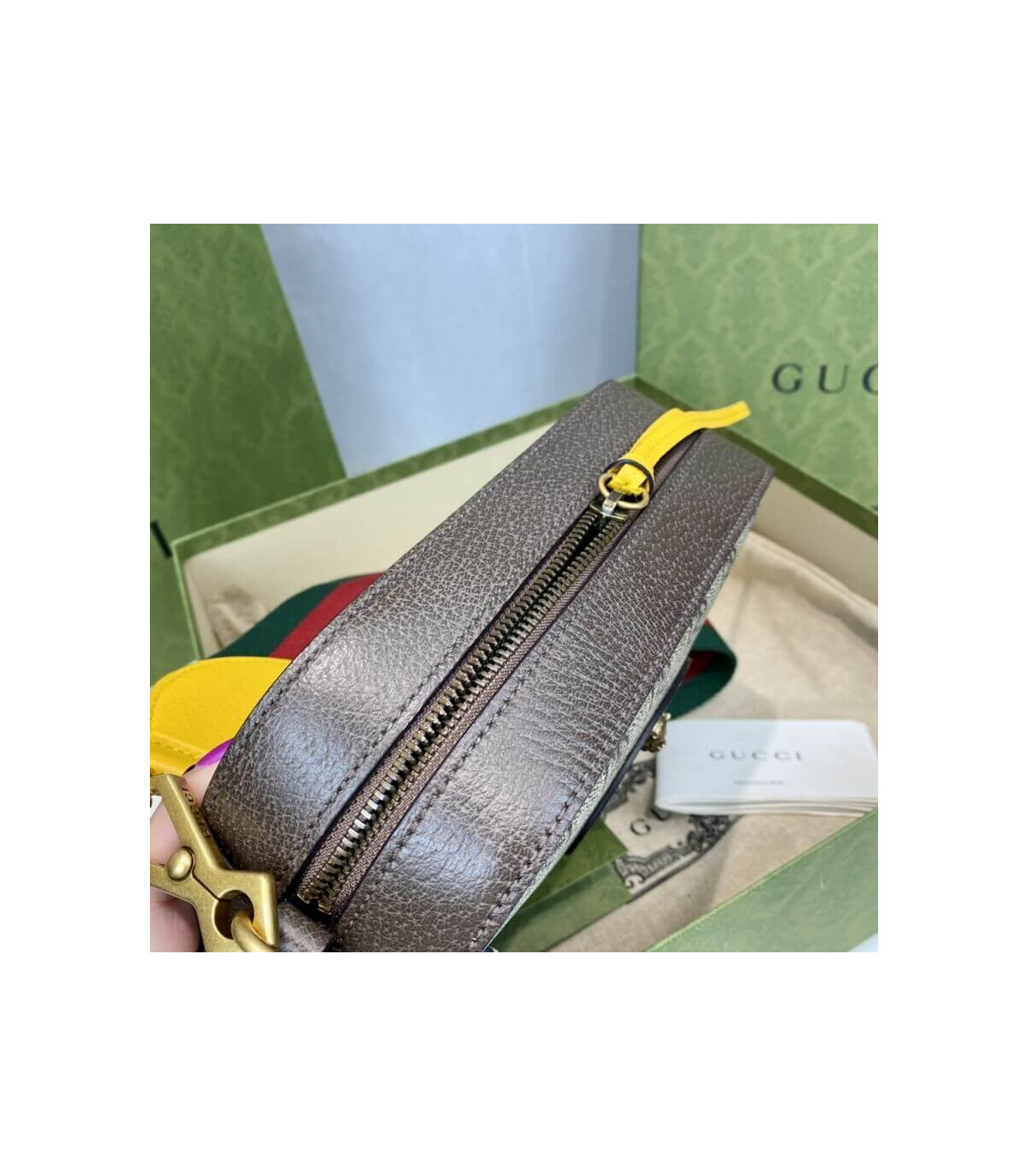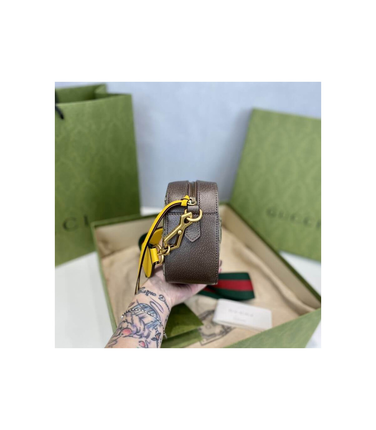 A compact, vintage-inspired messenger bag crafted from eco-friendly GG Supreme canvas with bold yellow leather accents. Finished with green-red Web strap and retro detailing.