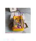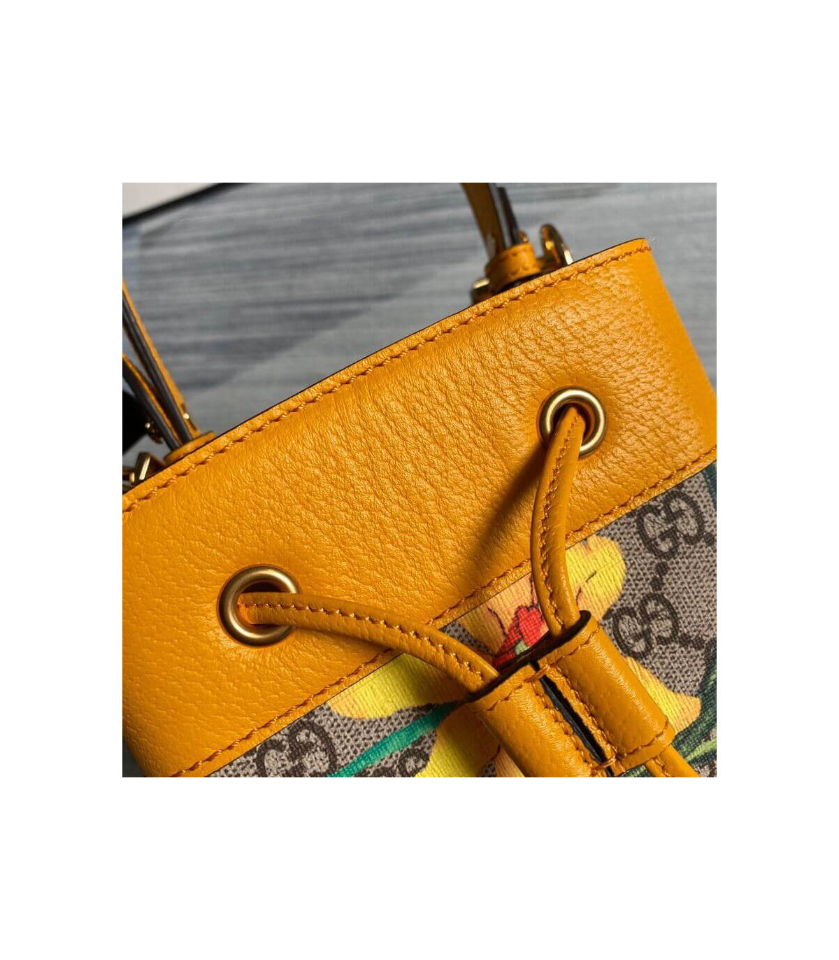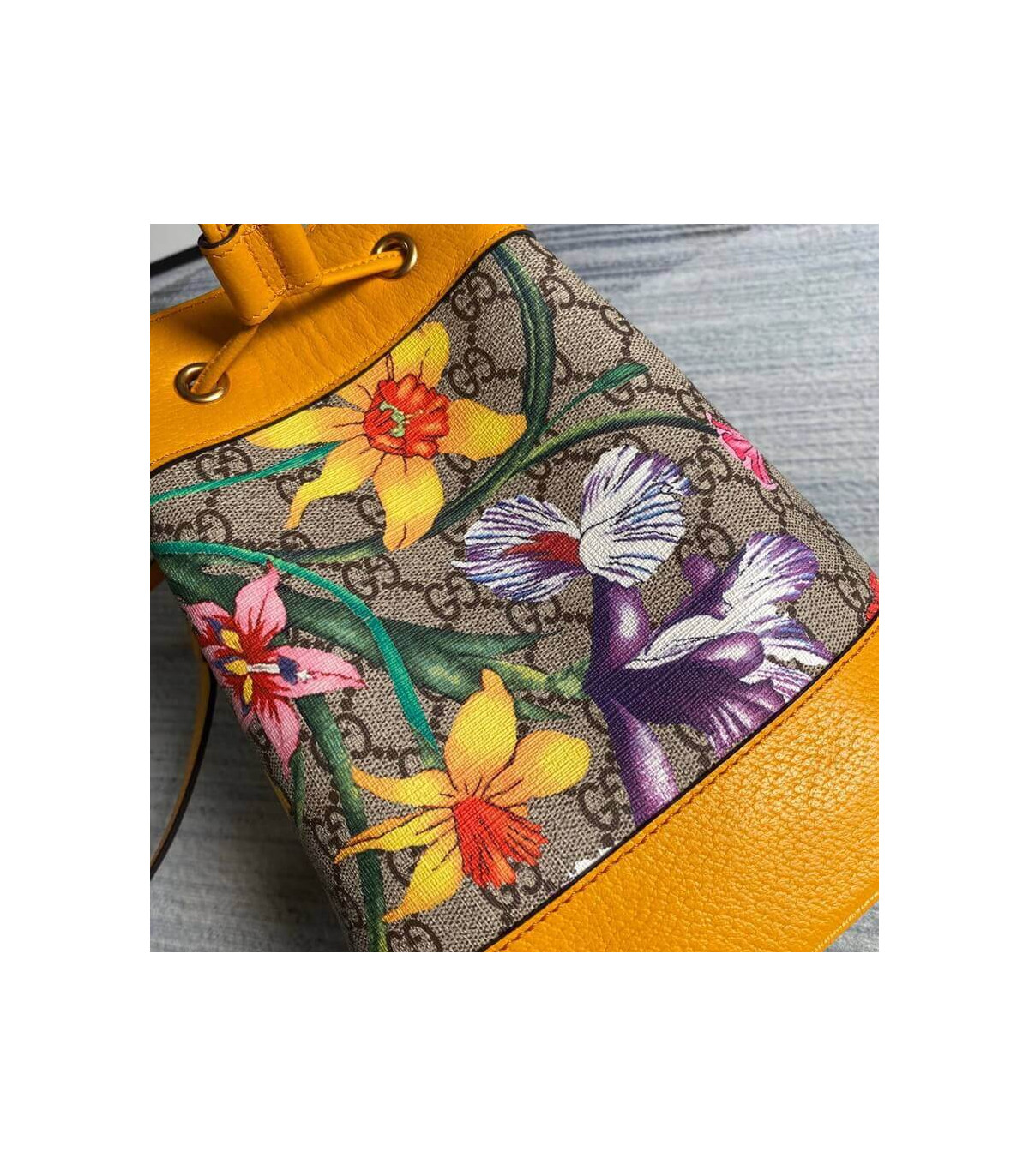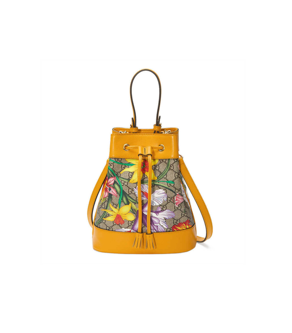 A special collection combines two of the House’s most distinctive designs into an unexpected and contemporary fabric, animating classic silhouettes like the Ophidia bucket bag. The historic Flora motif, first presented by Vittorio Accornero more than 50 years ago, is layered over the House monogram and trimmed with bright green leather—a modern take on the two archival patterns available exclusively online.