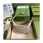 The world of Ophidia is enriched with the introduction of a crescent shaped mini bag. Crafted from the House’s monogram canvas, the half-moon silhouette is infused with a retro spirit, recalling ’90s designs.