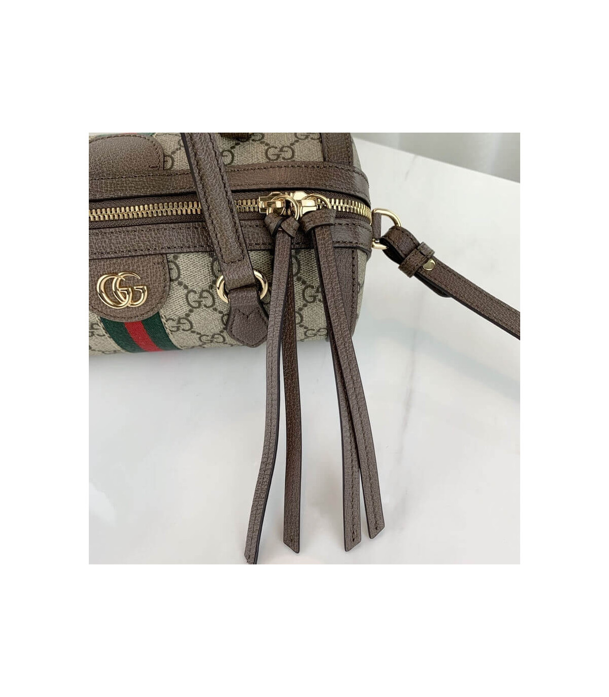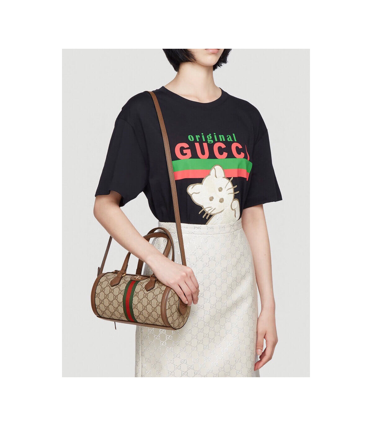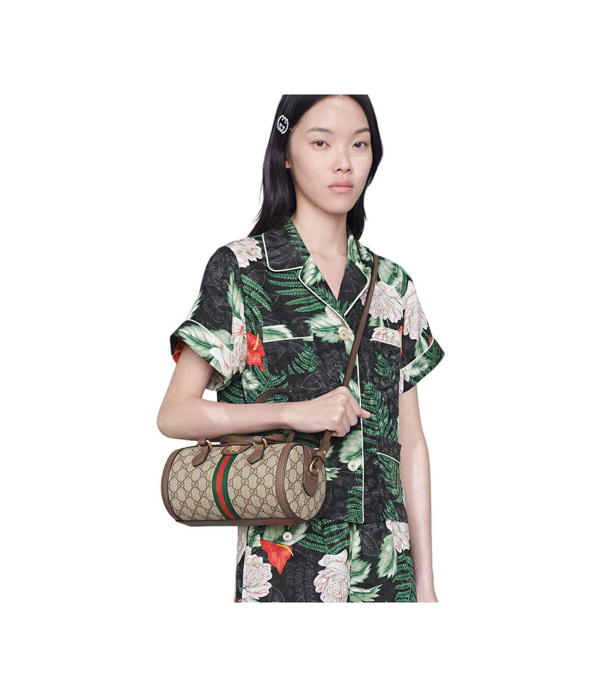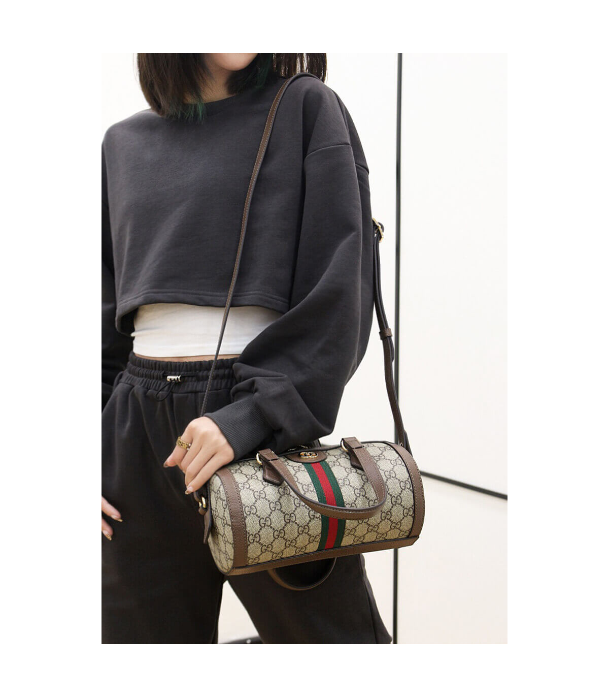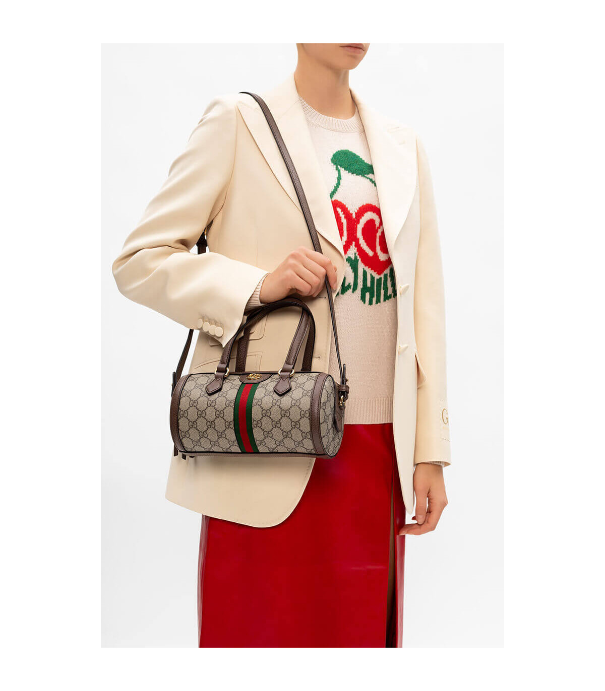 A classic combination of the House’s most defining codes—the GG motif and Web stripe—the world of Ophidia continues to evolve, incorporating new shapes and silhouettes each season. With recognizable design elements in a top handle shape, the Boston bag is trimmed with textured leather and topped with Double G hardware.