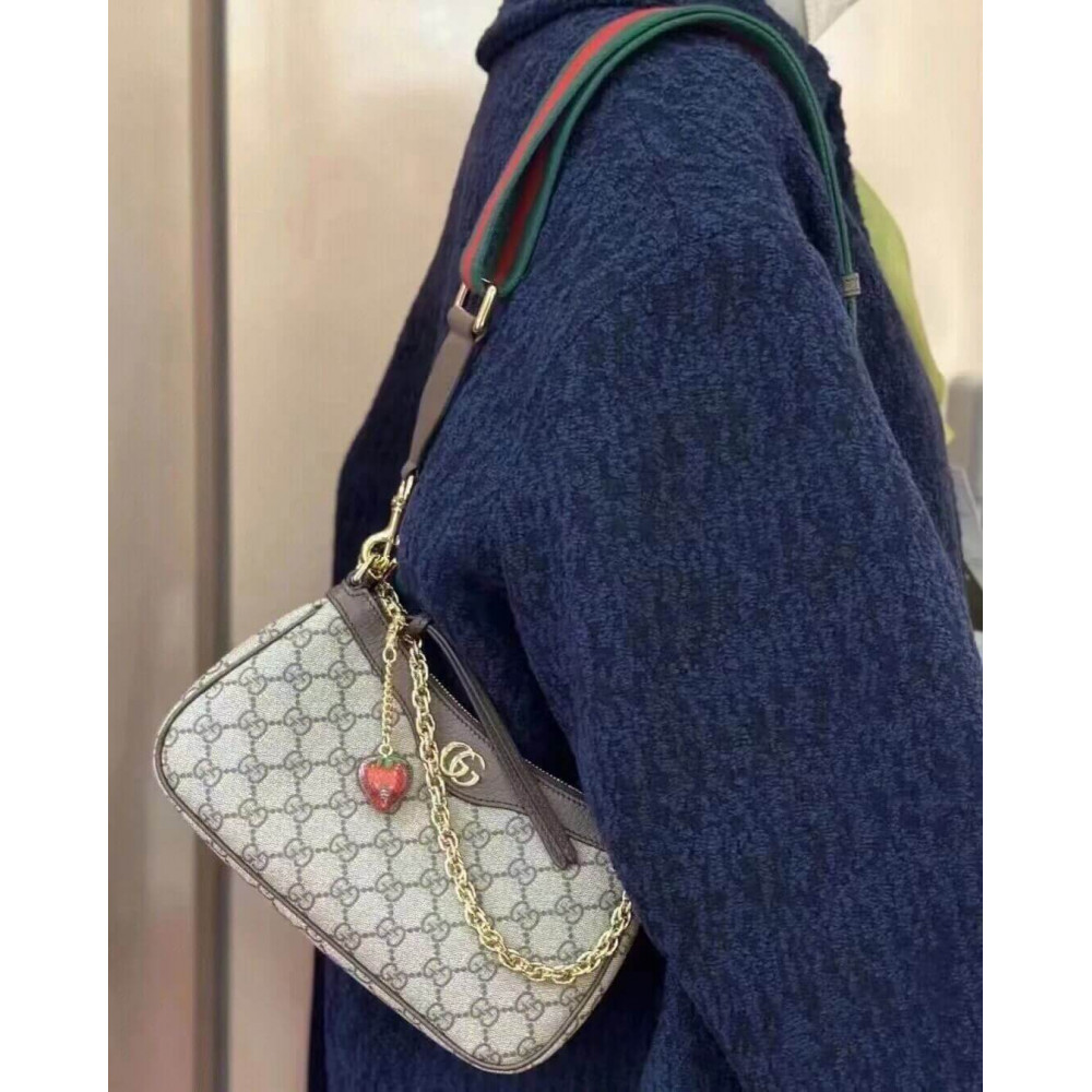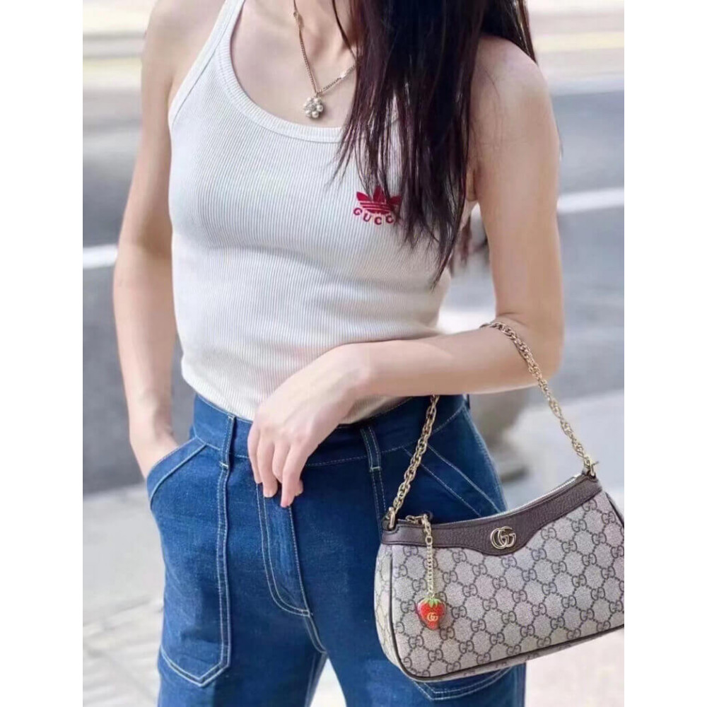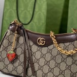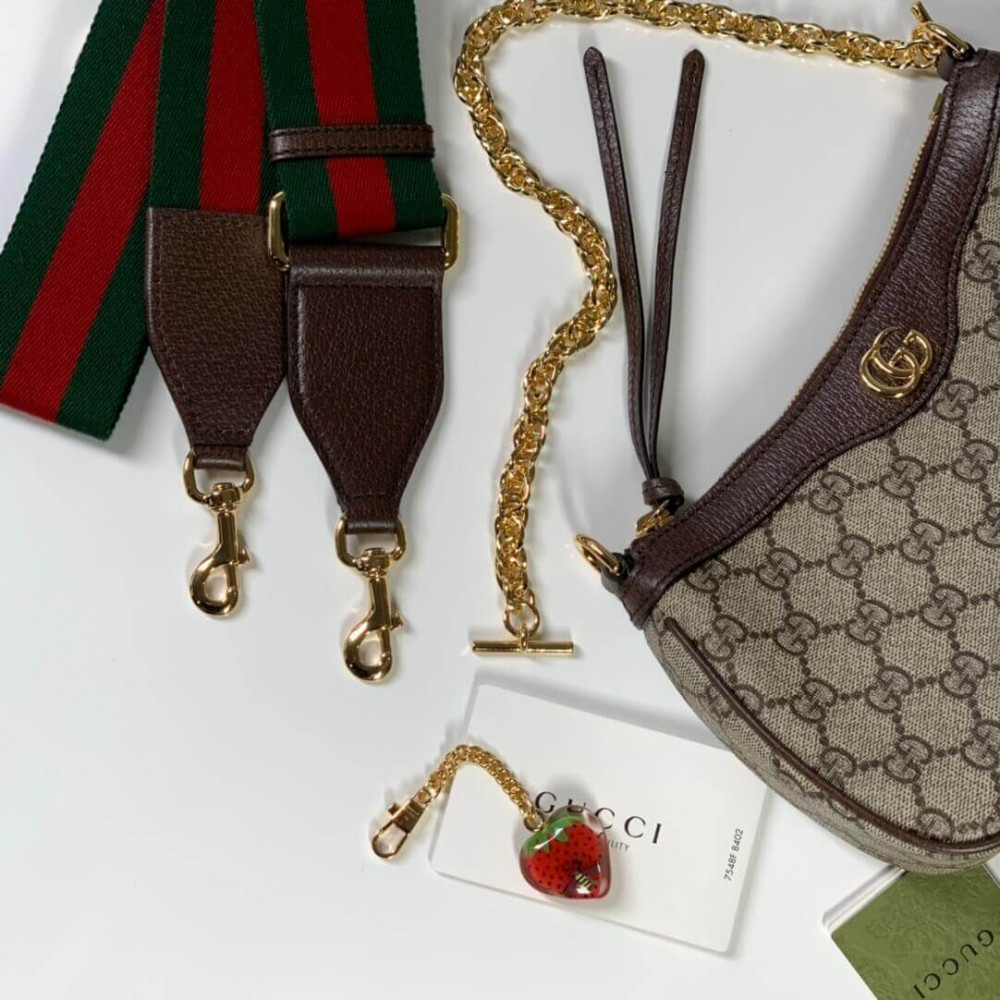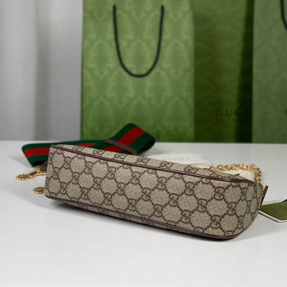 The GG logo is an evolution of the original Gucci rhombi design from the 1930s, and from then it’s been an established symbol of Gucci’s heritage. This unmistakable pattern decorates this small handbag as part of the latest Ophidia line. A Double G hardware completes the style