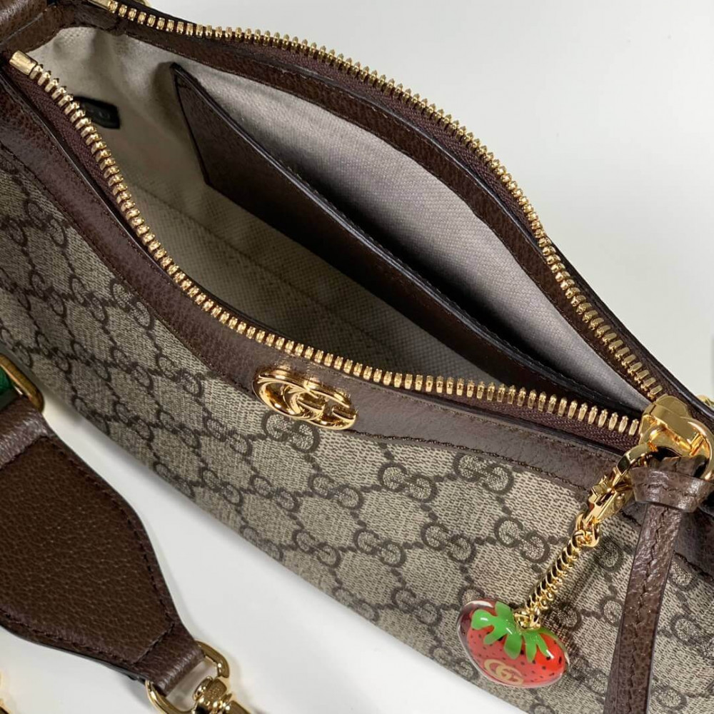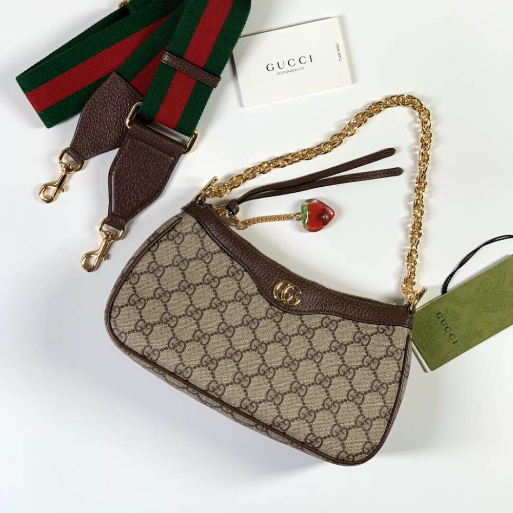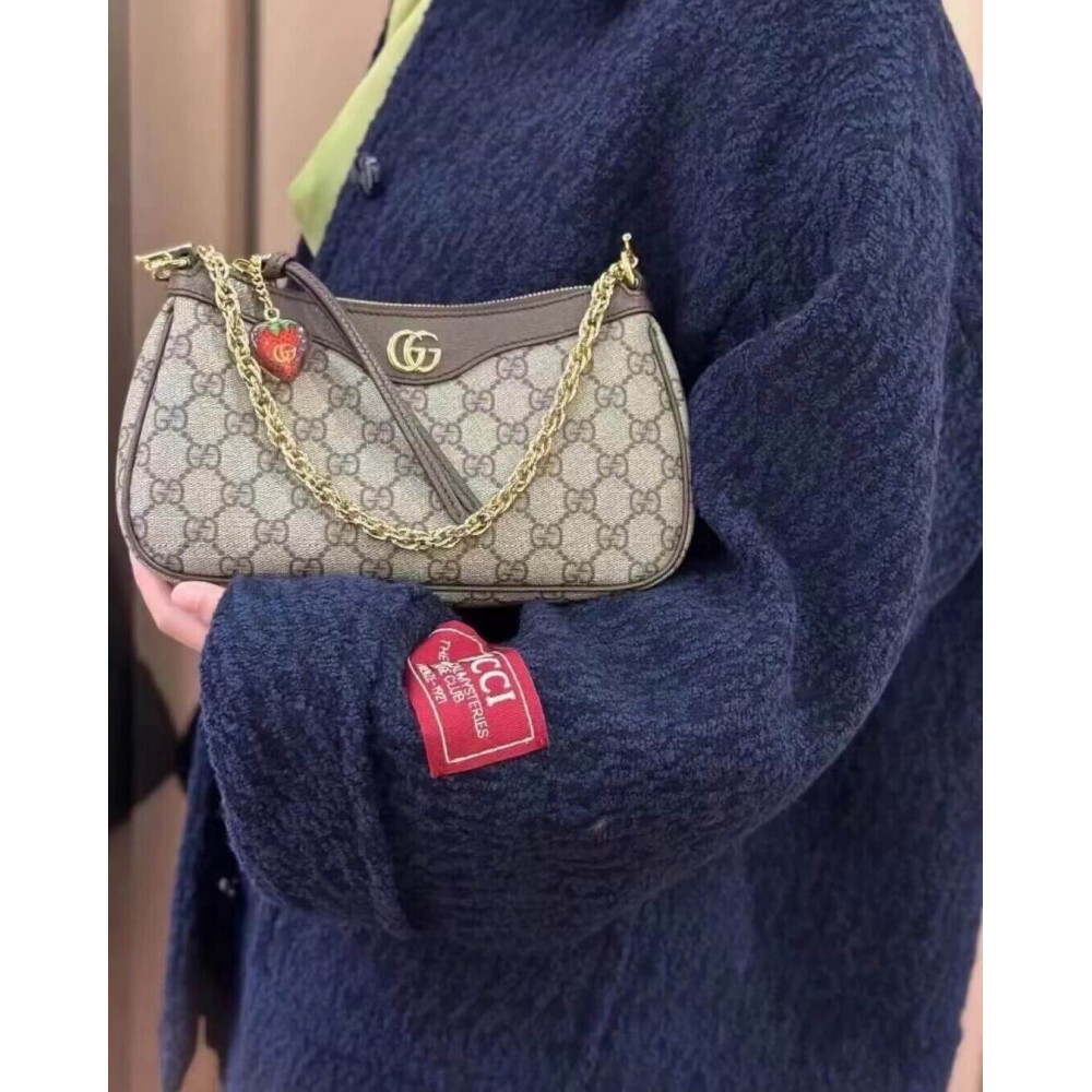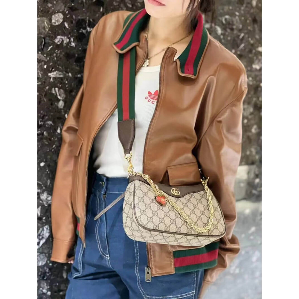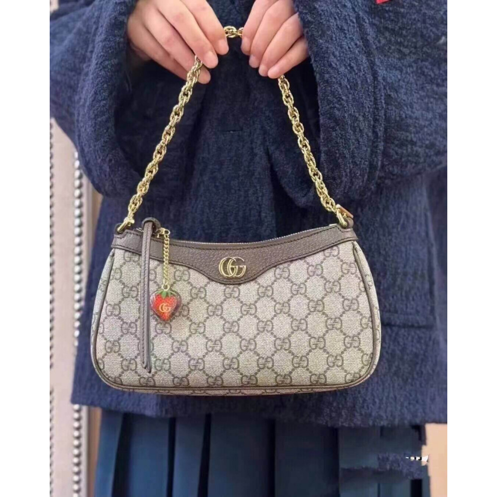 The GG logo is an evolution of the original Gucci rhombi design from the 1930s, and from then it’s been an established symbol of Gucci’s heritage. This unmistakable pattern decorates this small handbag as part of the latest Ophidia line. A Double G hardware completes the style