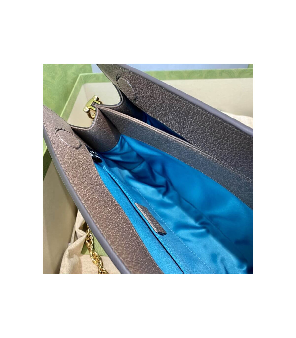 – Chain shoulder strap with 17″ drop