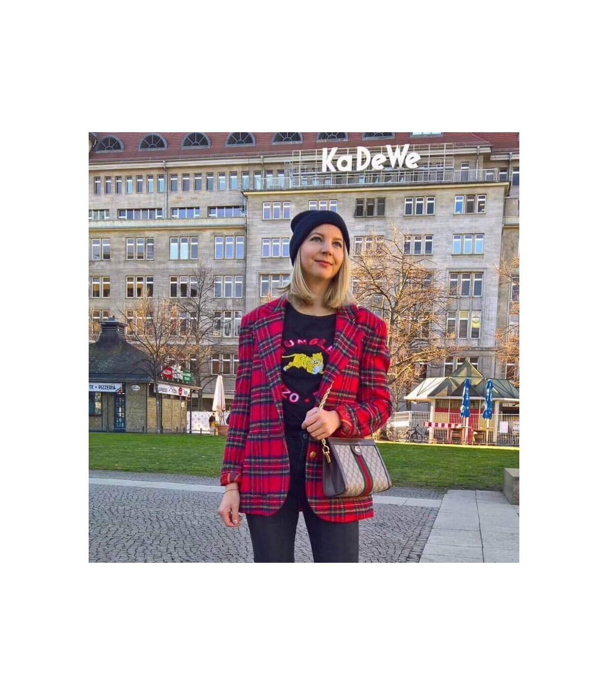 – Gold-toned hardware