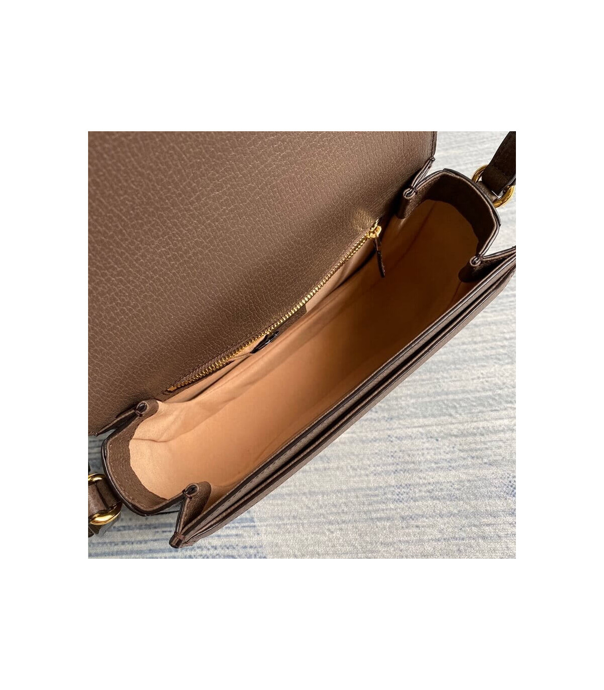 The Ophidia line continues to evolve with Cruise 2020, introducing fresh silhouettes like this elegant flap shoulder bag. Crafted in beige/ebony GG Supreme canvas—a material with low environmental impact—this piece is trimmed in brown leather and finished with the iconic green and red Web stripe. A gold-toned Double G logo adds a signature touch, celebrating Gucci’s rich heritage with timeless appeal.