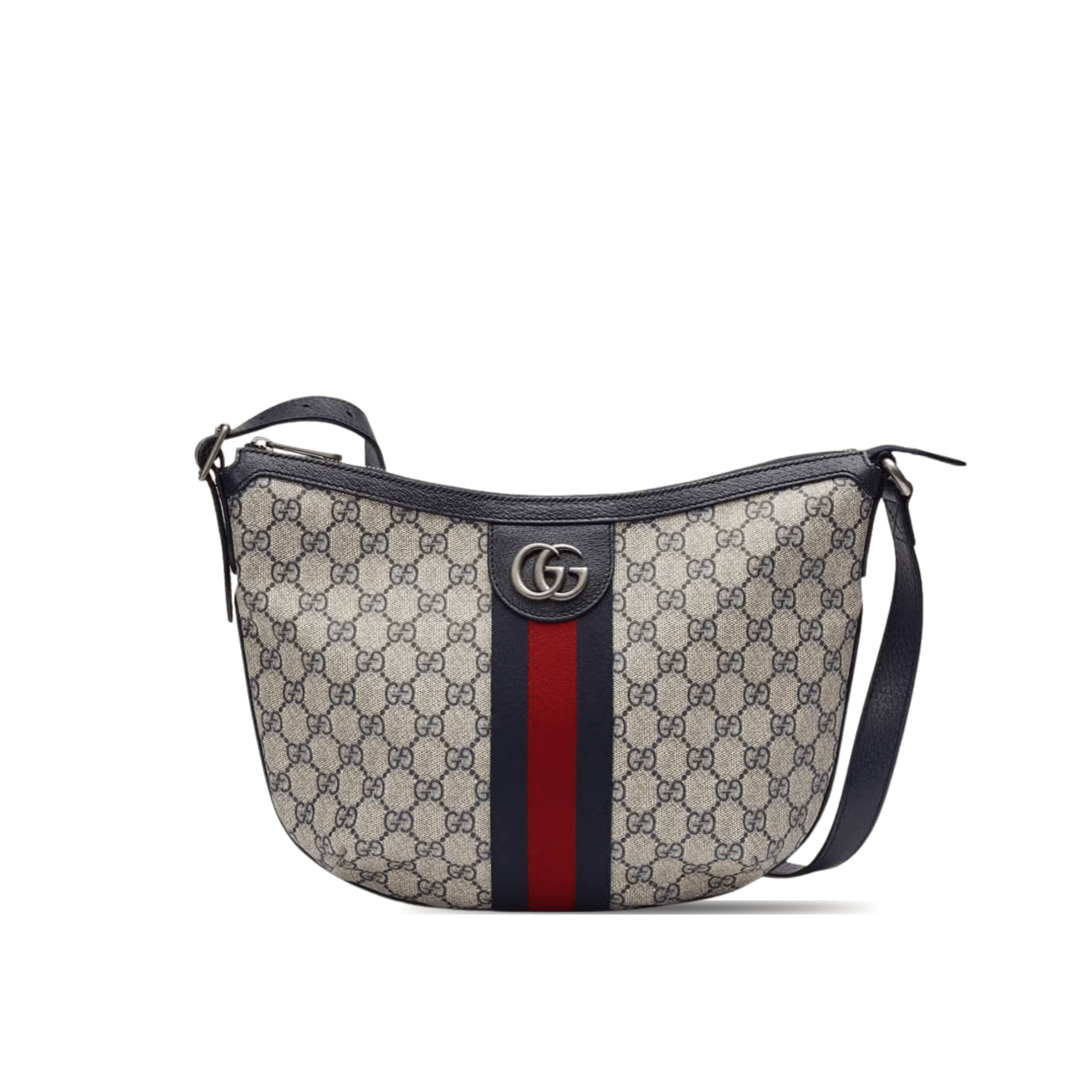 Mirroring its historic roots, the Ophidia shoulder bag returns in a timeless mix of blue and beige GG Supreme canvas—an iconic material of the House with low environmental impact. Accented with blue and red Web detail, silver-toned hardware, and blue leather trim, this piece brings a vintage feel to a modern silhouette.