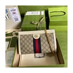 Crafted in GG Supreme canvas with inlaid Web stripe detail, the chain strap shoulder bag boasts a vintage inspired design. The structured shape secures with a magnetic closure, trimmed with leather and Double G hardware—an archival detail.