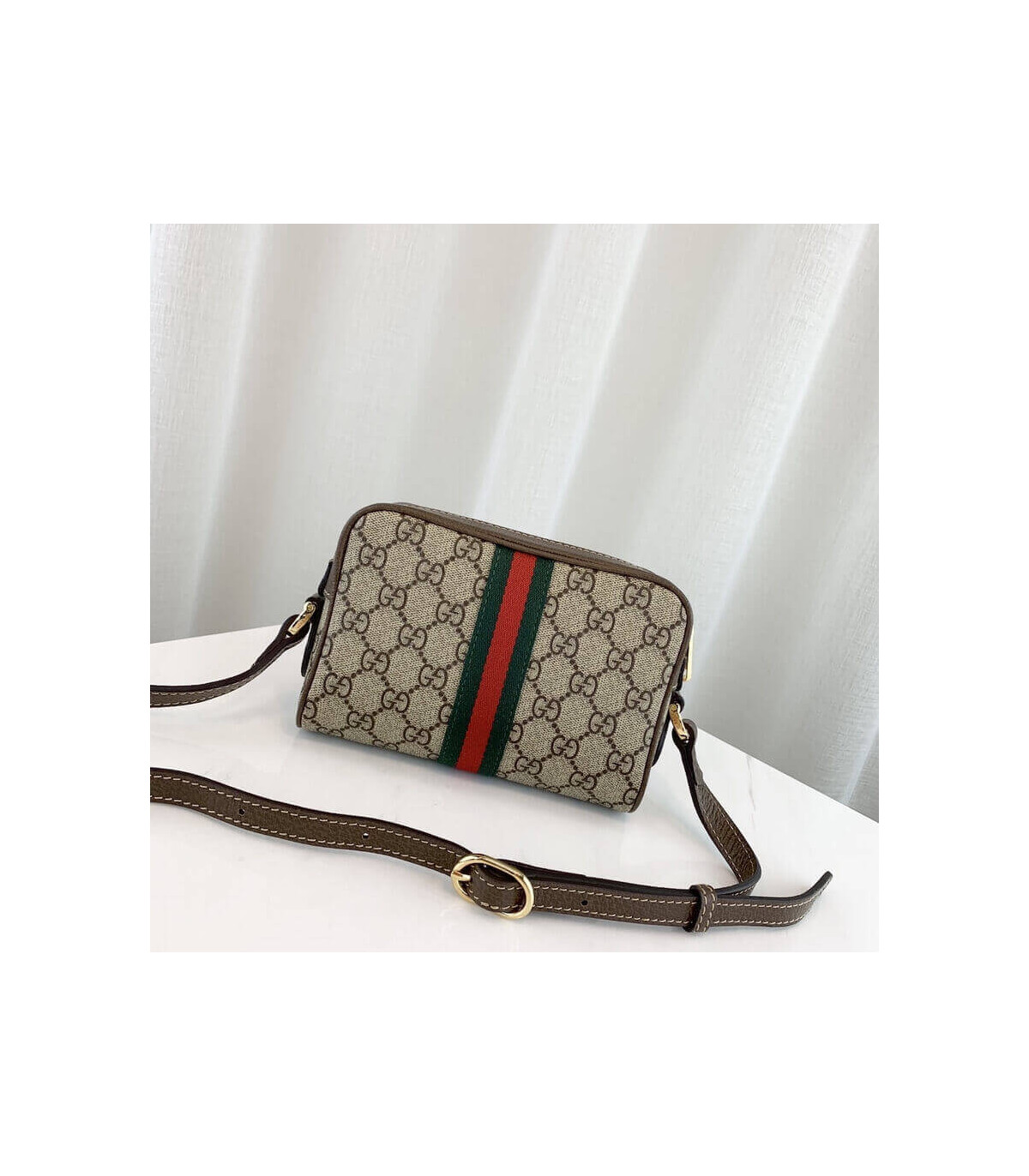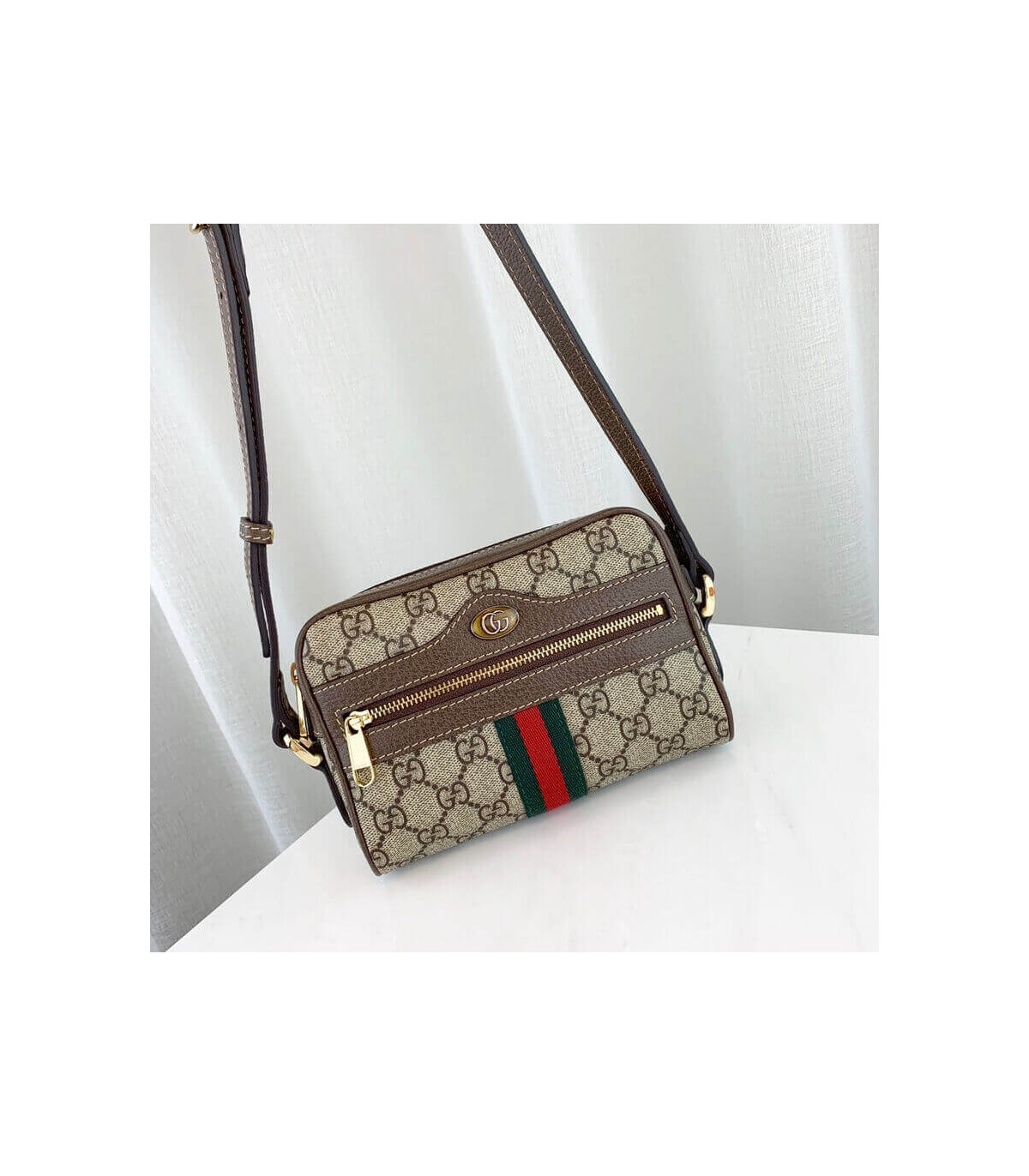 The world of Ophidia evolves with the introduction of a mini bag shape, crafted from GG Supreme canvas with Web stripe detail. First used in the 1970s, the GG logo was an evolution of the original Gucci rhombi design from the 1930s, and from then it’s been an established symbol of Gucci’s heritage.