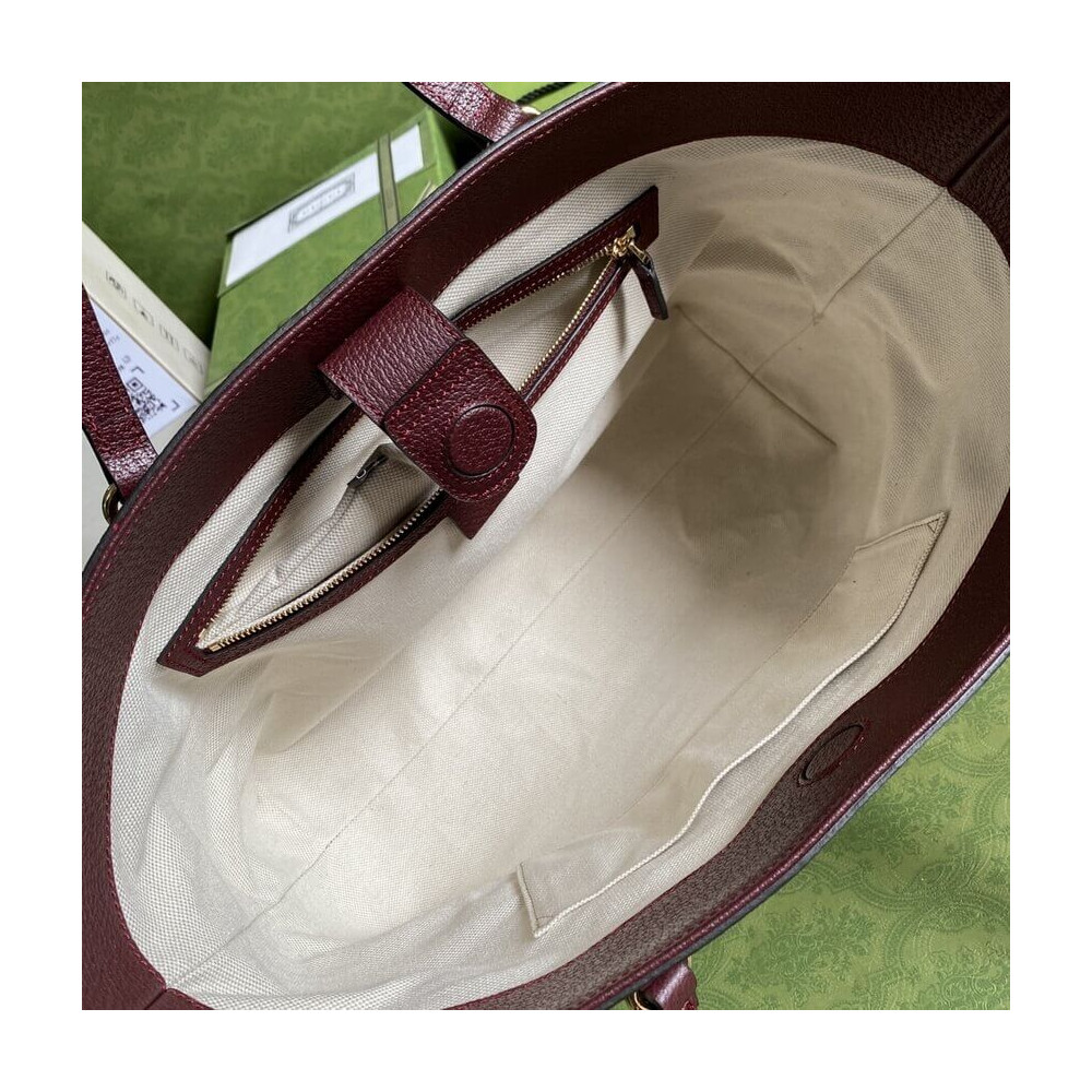 The world of Ophidia continues to evolve with new iterations each season. The medium tote is reintroduced as a part of the Aria collection in a vintage-inspired color palette of beige and burgundy. The softly structured bag is completed by Double G hardware—a contemporary take on a Gucci archival belt buckle from the ’70s.
