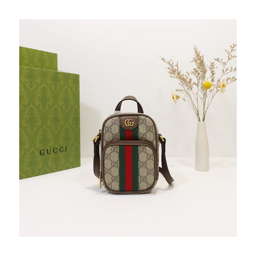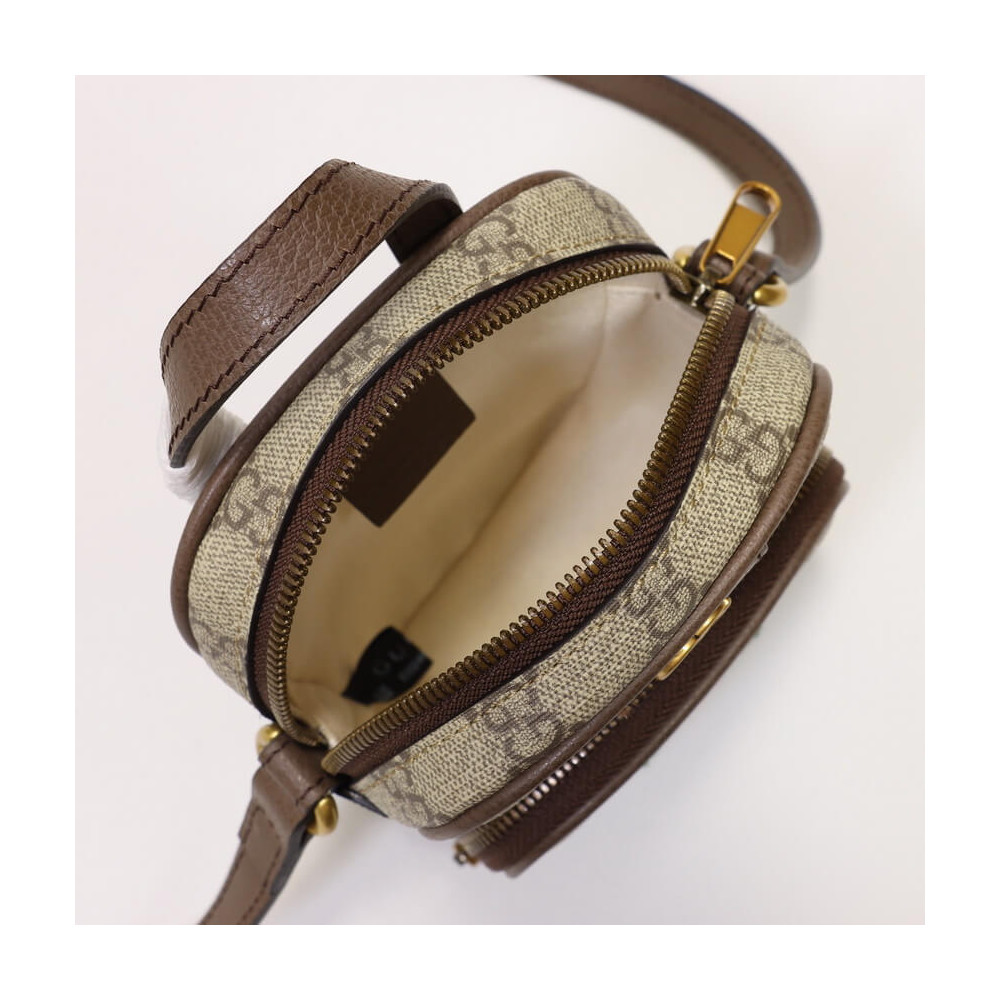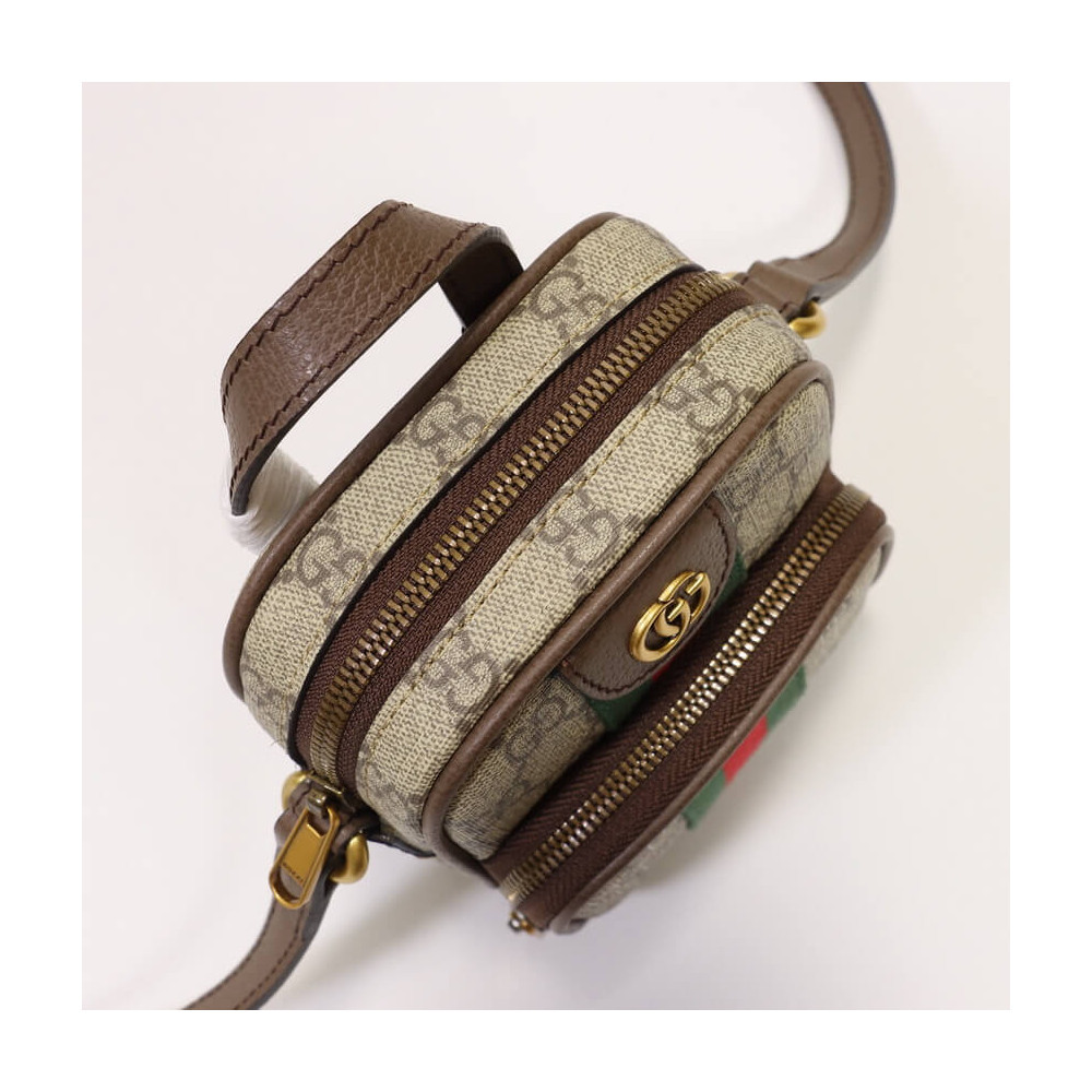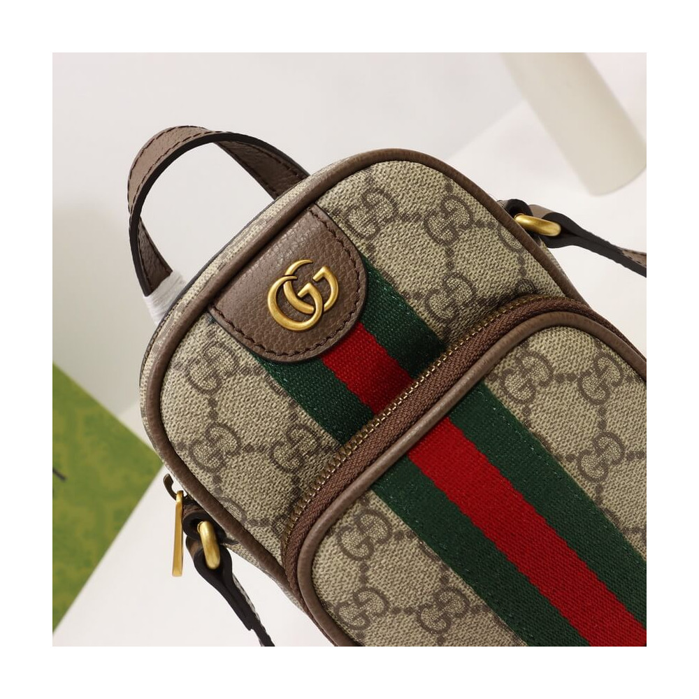 The Aria collection explores the House archives, presenting emblematic symbols in celebration of Gucci’s heritage. Here, this mini bag is presented in GG Supreme canvas with the green and red Web and Double G.