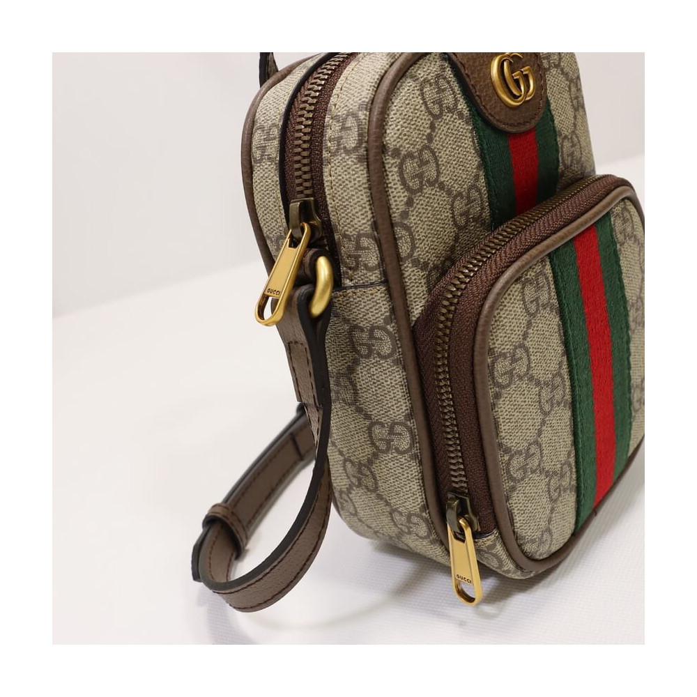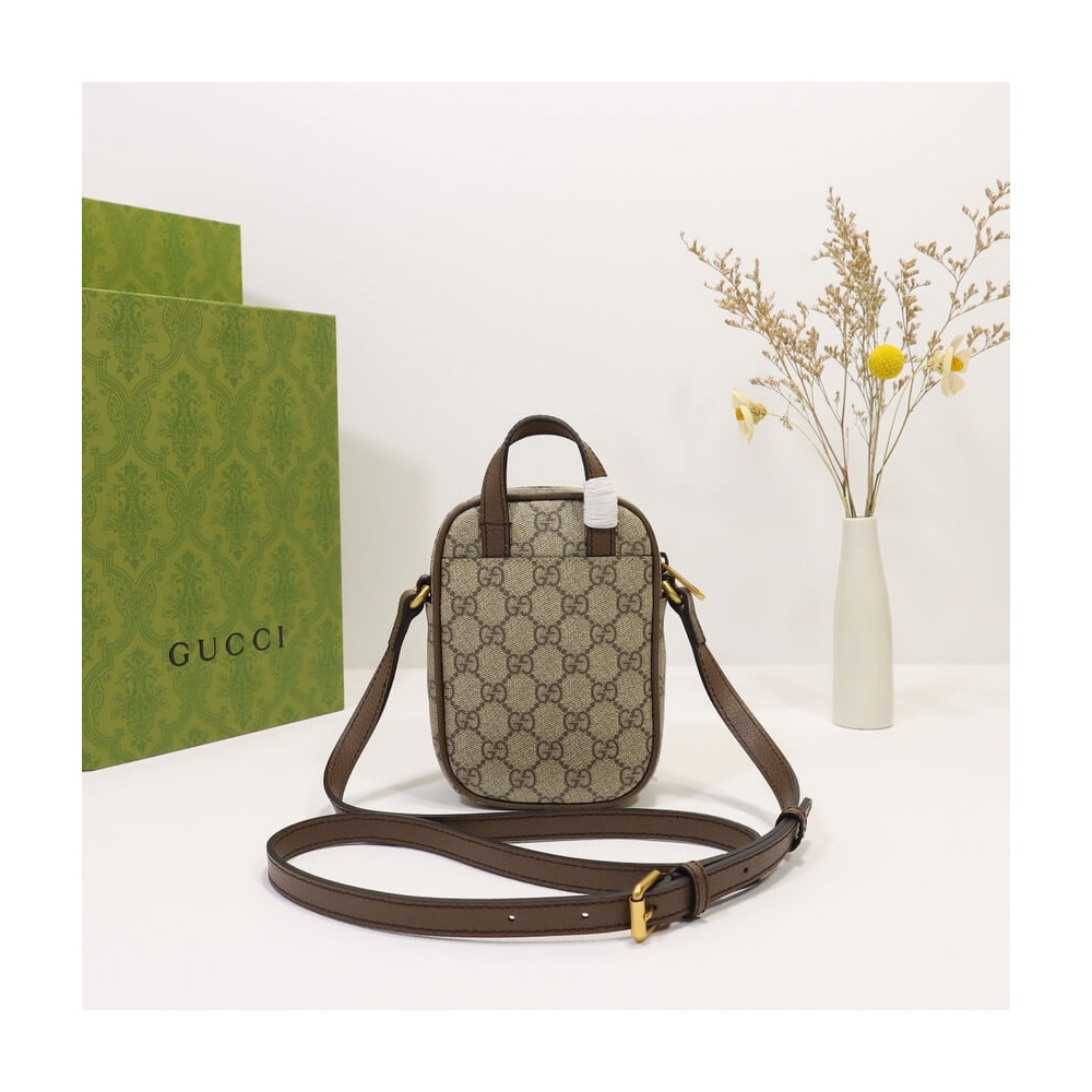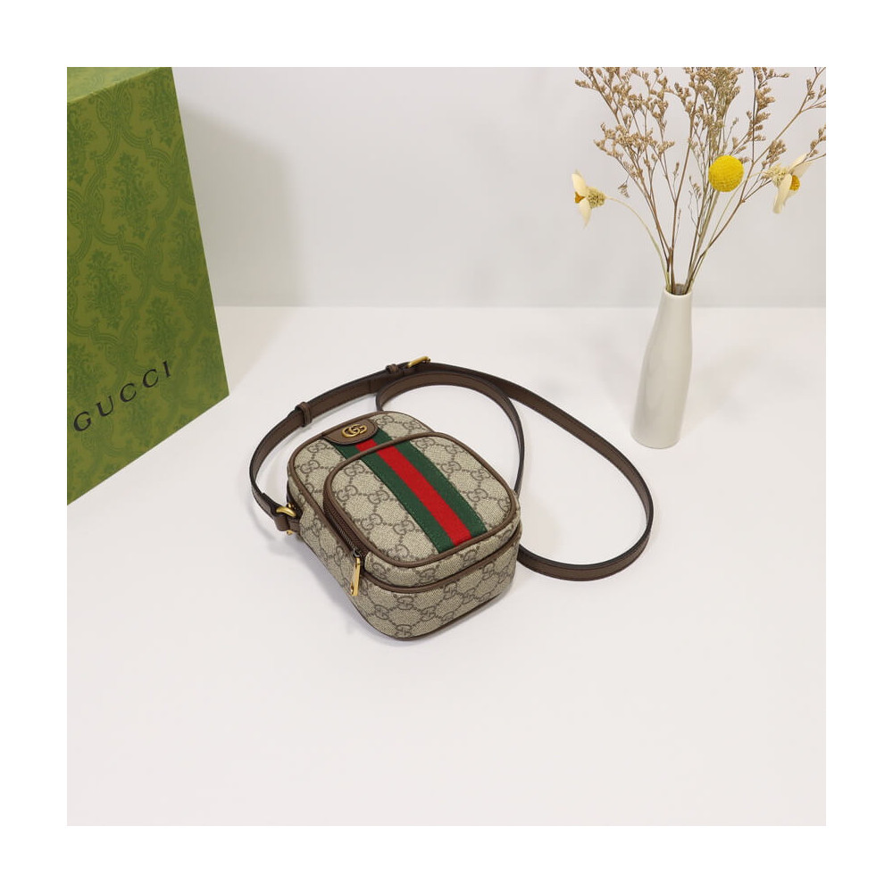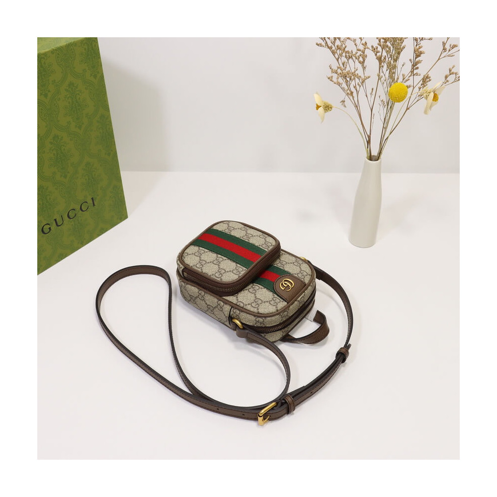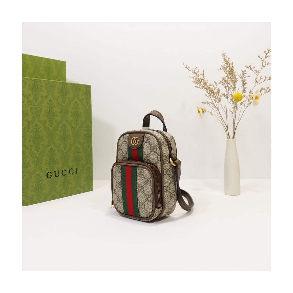 The Aria collection explores the House archives, presenting emblematic symbols in celebration of Gucci’s heritage. Here, this mini bag is presented in GG Supreme canvas with the green and red Web and Double G.
