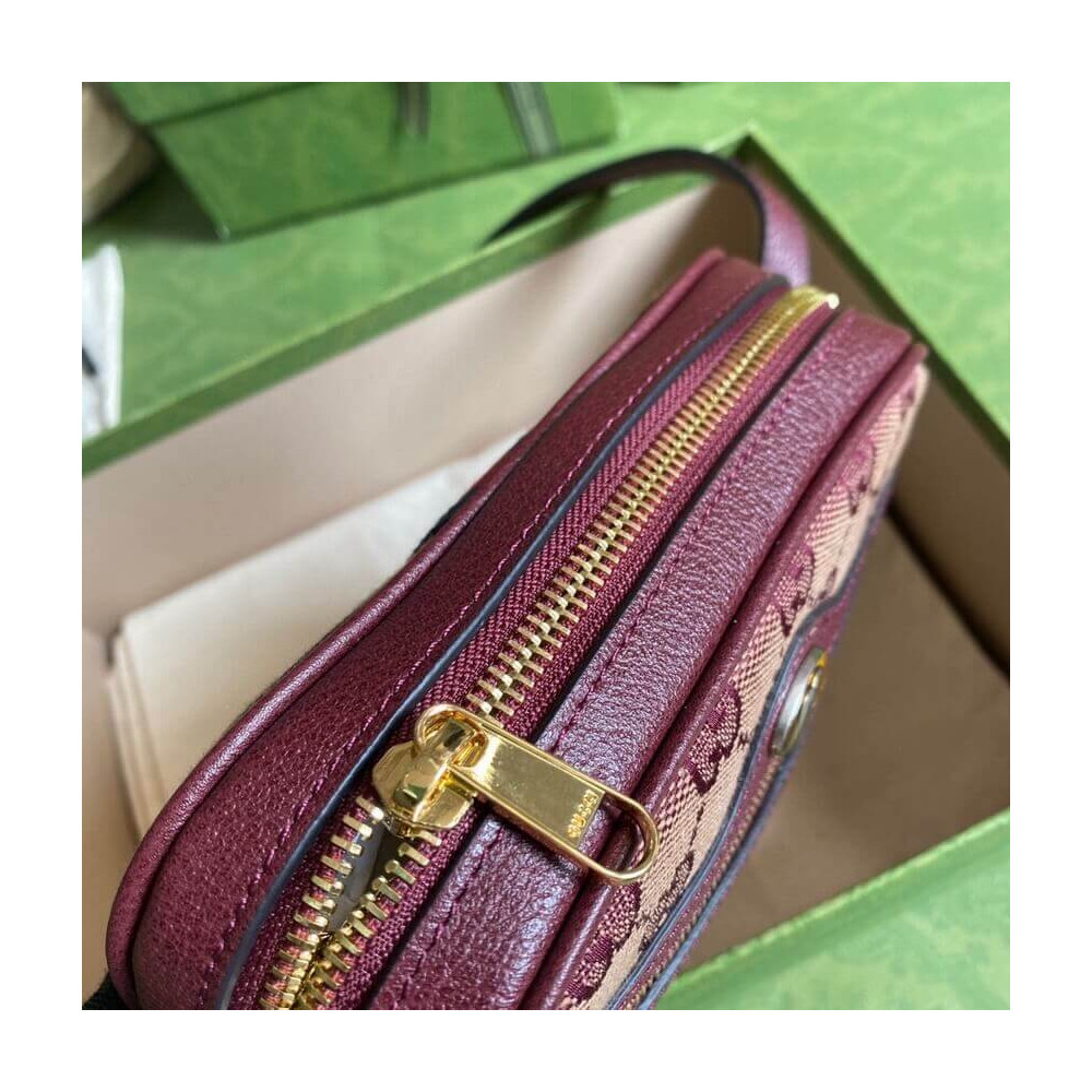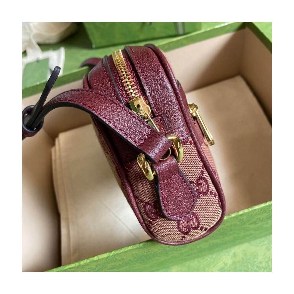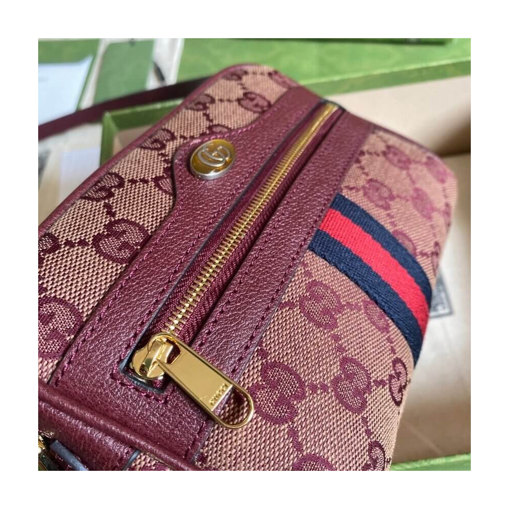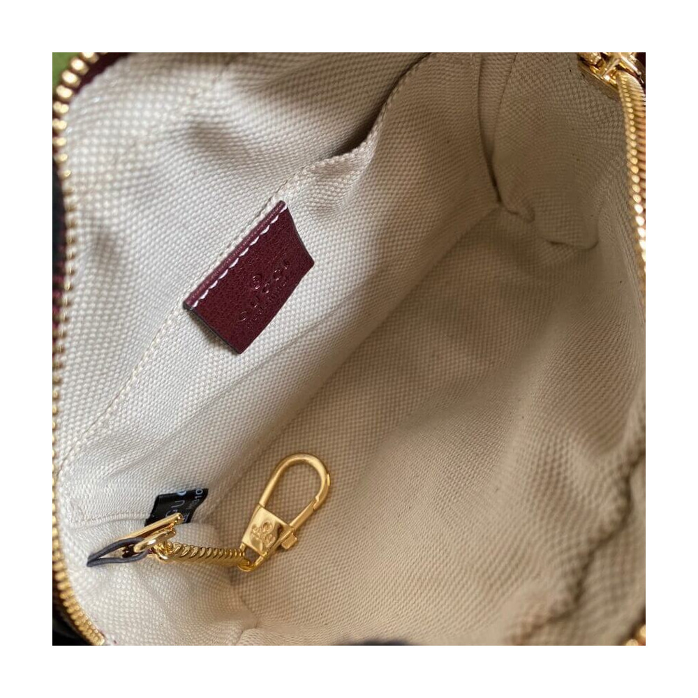 The mini Ophidia shoulder bag is introduced in a new iteration as a part of the Aria collection, crafted from Original GG canvas with inlaid blue and red Web stripe. The coveted style is defined by small Double G details at the front tab and zipper pulls—a contemporary take on a Gucci archival belt buckle from the ’70s, repurposed into a precious petite variation.