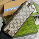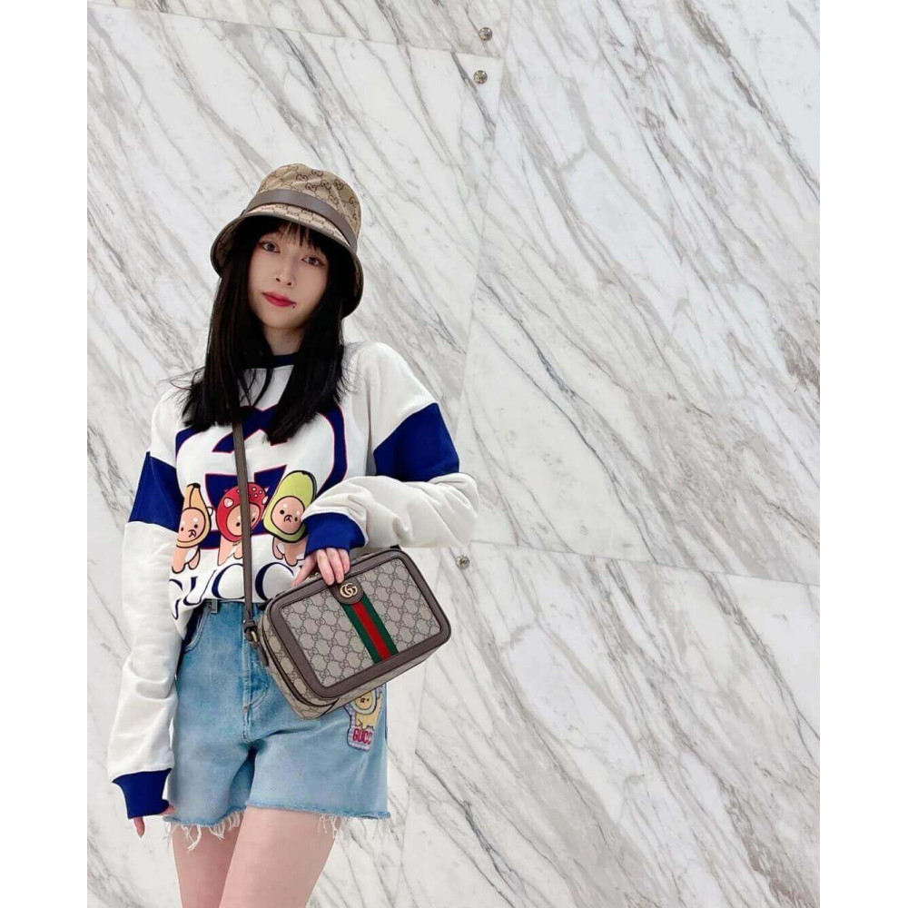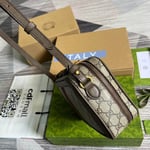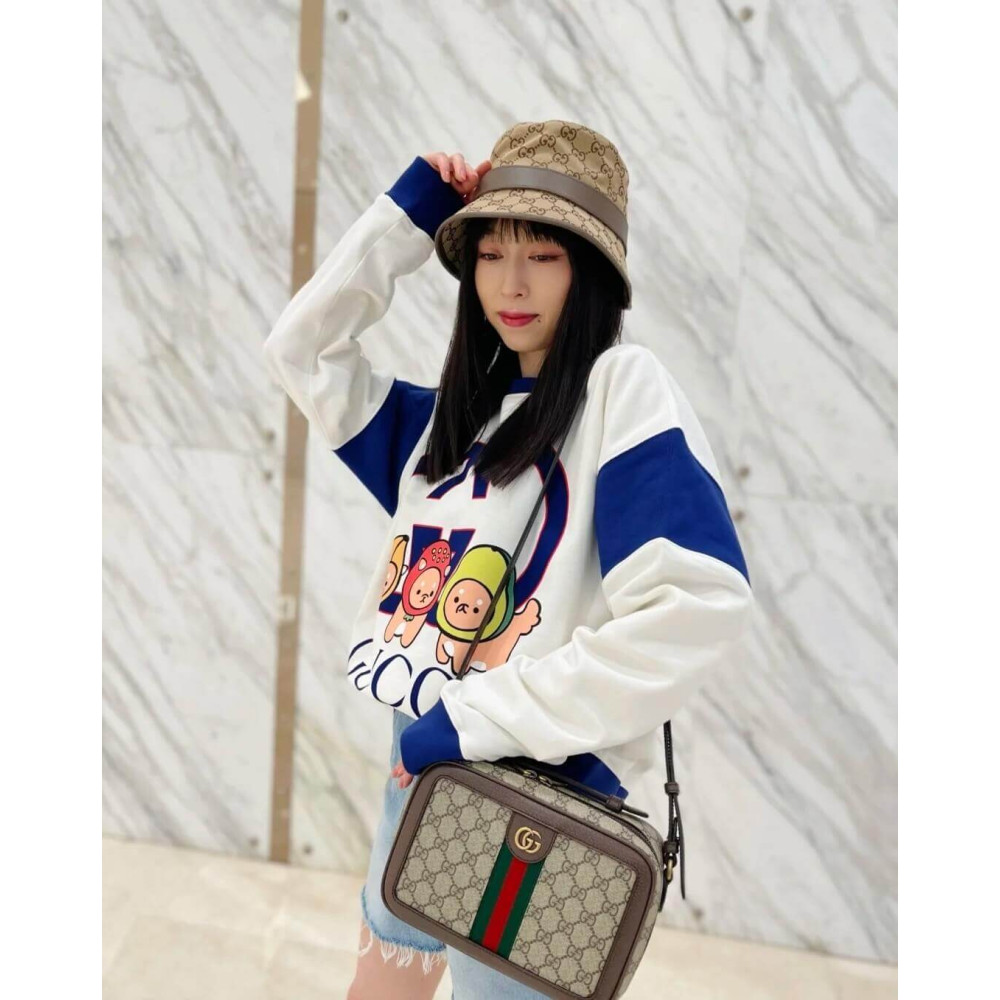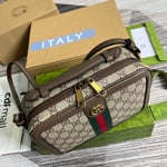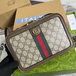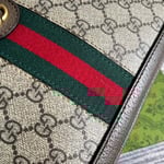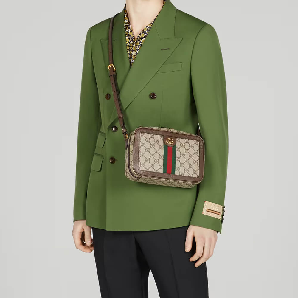 The Ophidia line continues to be one of Gucci signature handbags. New silhouettes are introduced each season, providing versatile travel accessories to suit any destination. The Double G and Web stripe remain integral to the design, presented atop this shoulder bag alongside the signature GG Supreme canvas in beige and ebony.