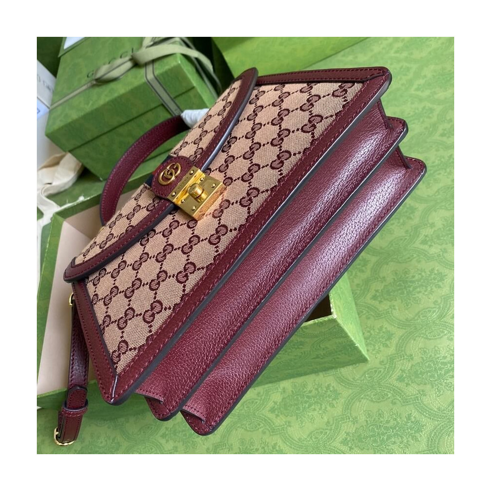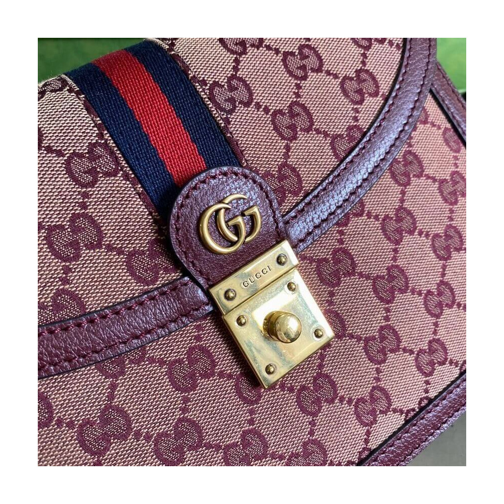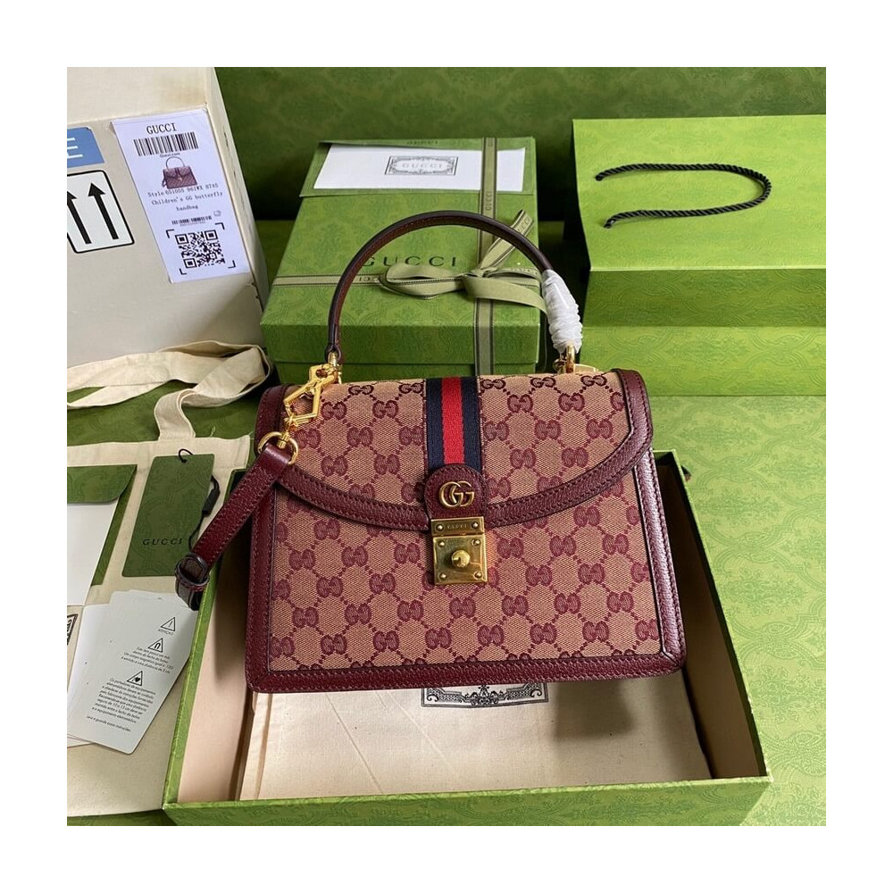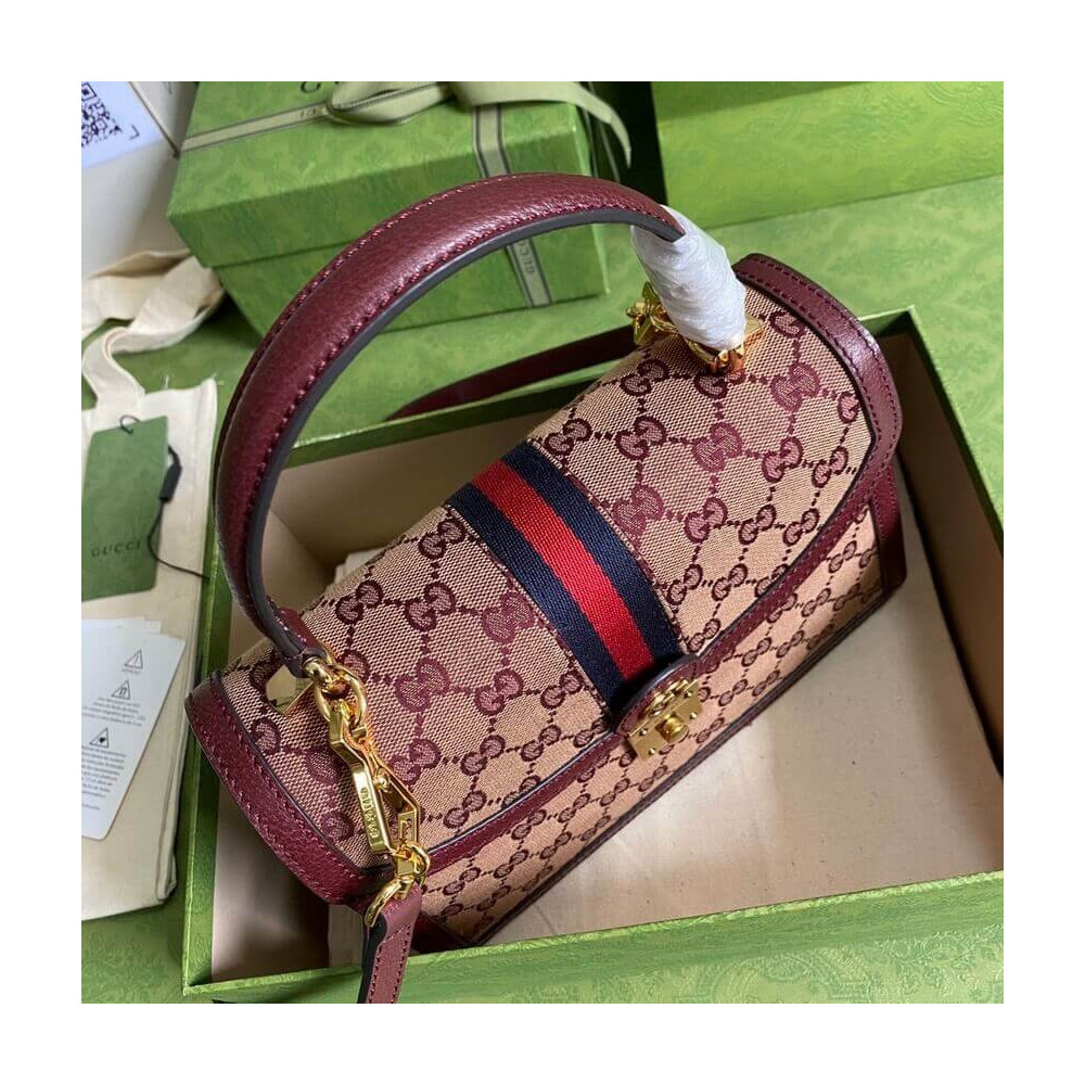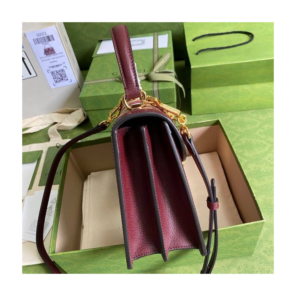 Gucci Ophidia Small Top Handle Bag With Web Burgundy